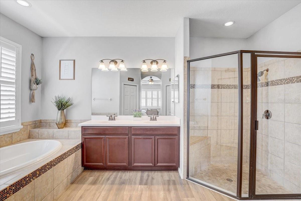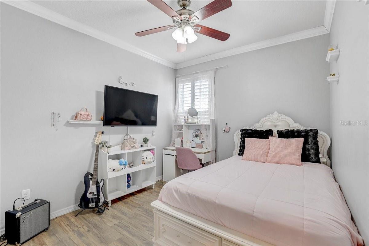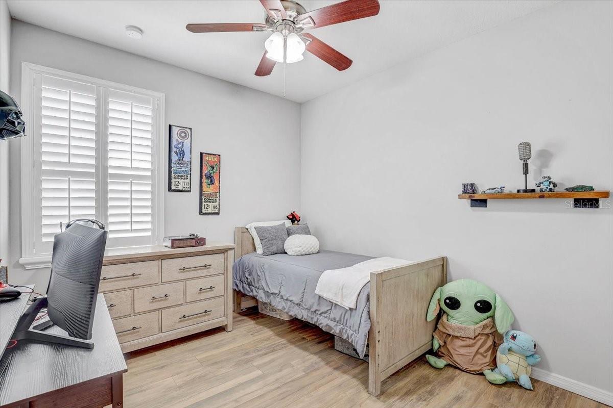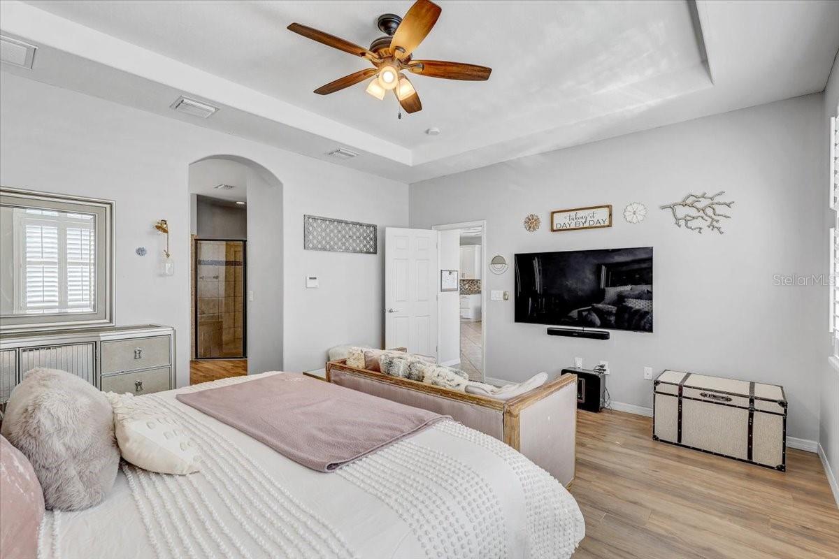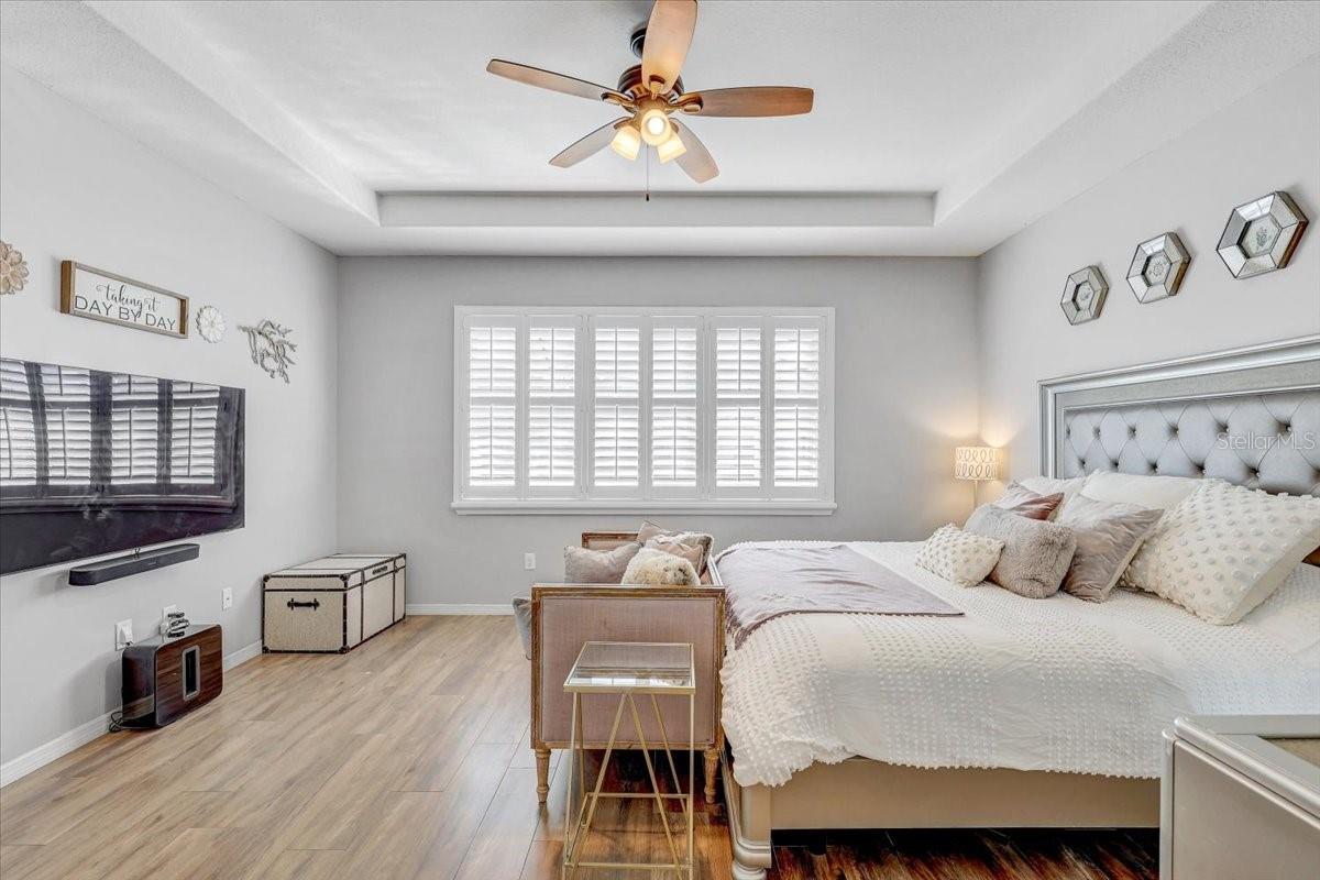 STUNNING PRIVATE POOL HOME! NEWLY INSTALLED IN 2022! Welcome to Channing Park! This desirable floorplan features 4-bedrooms, 3 full bathrooms, 3 Car Garage, and a 3-way split floor plan. Step inside, into an open foyer with a formal dining room and living room near the entryway. One of the bedrooms is privately located near the front of the home, perfect to use as a guest suite with its own full bathroom. The home has Plantation Shutters, Upgraded Tile Flooring in all the bedrooms/ensuite bathroom, and a Lighted Tray Ceiling Center Hall Rotunda! The remodeled kitchen has many appealing upgrades, with Granite Countertops, Modern glass BESPOKE appliances, Center Island, Spacious Seated Breakfast Bar, Cabinets with Crown Molding, and a Gorgeous Backsplash. The Primary suite offers a peaceful escape with Tray Ceilings and Dual Walk-in Closets, with an ensuite bath, complete with a Garden tub, Separate Tiled Walk-in Shower, and Double Sink Vanity. From your Great Room, you have sliding glass doors leading out to your Screened Lanai with Pavers and a covered porch area for grilling, outdoor dining, and lounging. Let's not forget the caged gas heater Private Pool with a Sun shelf and Waterfalls! Zoned for all A rated schools! Channing park features resort style amenities; Basketball court, two dog bark parks (One for large and one for small dogs), Soccer field, playground, clubhouse, Community Pools, Spa, Waterpark/Splashpad, fitness Center, grilling stations, skateboard park, and walking trails. Call today to schedule a private viewing!