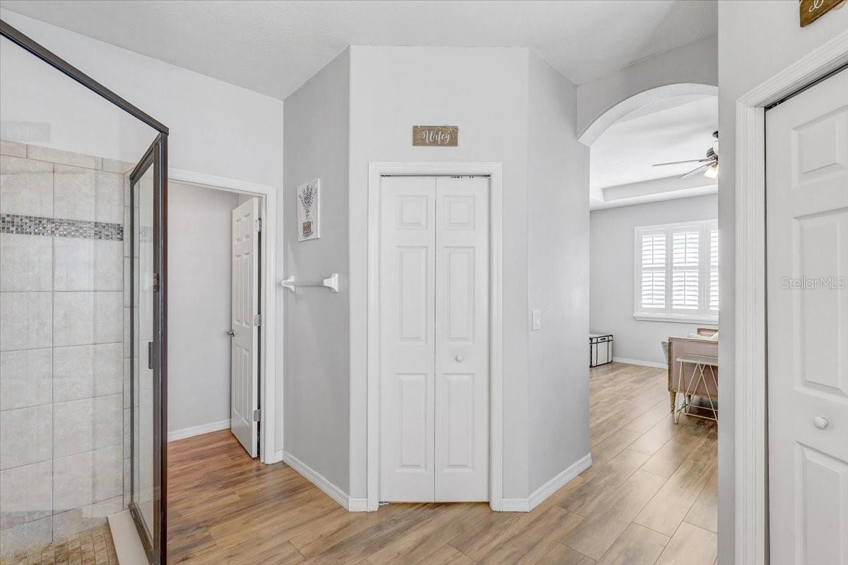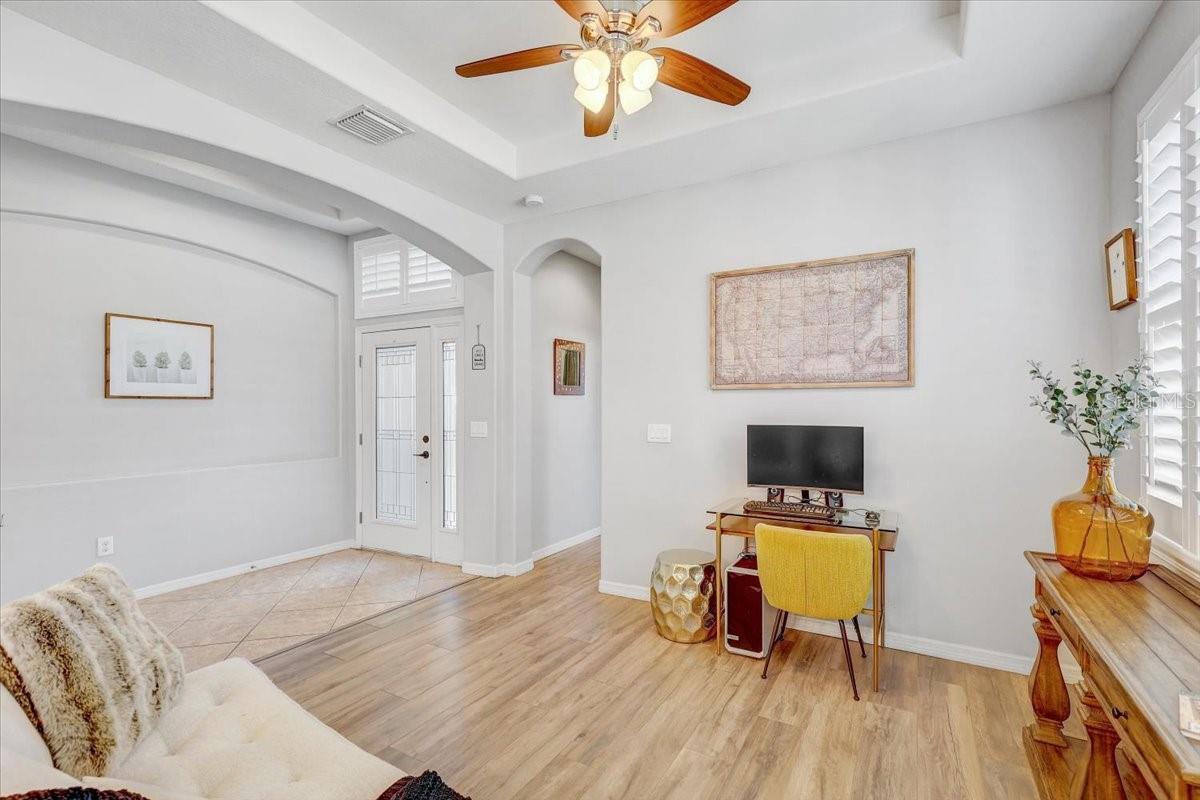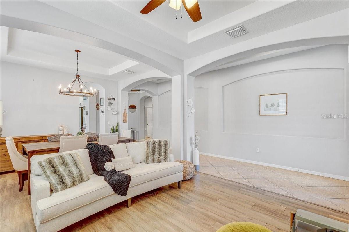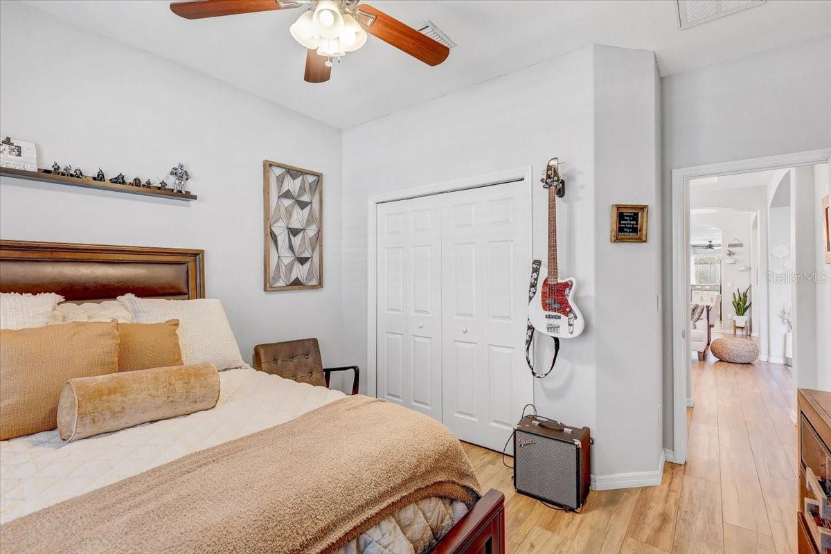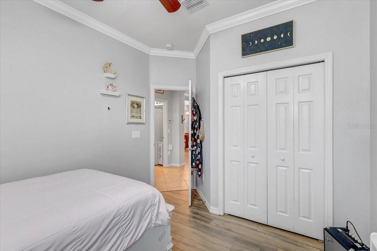 STUNNING PRIVATE POOL HOME! NEWLY INSTALLED IN 2022! Welcome to Channing Park! This desirable floorplan features 4-bedrooms, 3 full bathrooms, 3 Car Garage, and a 3-way split floor plan. Step inside, into an open foyer with a formal dining room and living room near the entryway. One of the bedrooms is privately located near the front of the home, perfect to use as a guest suite with its own full bathroom. The home has Plantation Shutters, Upgraded Tile Flooring in all the bedrooms/ensuite bathroom, and a Lighted Tray Ceiling Center Hall Rotunda! The remodeled kitchen has many appealing upgrades, with Granite Countertops, Modern glass BESPOKE appliances, Center Island, Spacious Seated Breakfast Bar, Cabinets with Crown Molding, and a Gorgeous Backsplash. The Primary suite offers a peaceful escape with Tray Ceilings and Dual Walk-in Closets, with an ensuite bath, complete with a Garden tub, Separate Tiled Walk-in Shower, and Double Sink Vanity. From your Great Room, you have sliding glass doors leading out to your Screened Lanai with Pavers and a covered porch area for grilling, outdoor dining, and lounging. Let's not forget the caged gas heater Private Pool with a Sun shelf and Waterfalls! Zoned for all A rated schools! Channing park features resort style amenities; Basketball court, two dog bark parks (One for large and one for small dogs), Soccer field, playground, clubhouse, Community Pools, Spa, Waterpark/Splashpad, fitness Center, grilling stations, skateboard park, and walking trails. Call today to schedule a private viewing!