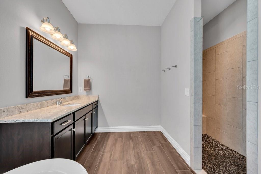 Model-perfect living awaits in the highly sought-after Preserve at FishHawk Ranch. This exceptional residence offers nearly 3,700 square feet of thoughtfully designed space, featuring 4 bedrooms, 4 bathrooms, a private home office, bonus room, and a 3-car garage—plus a true resort-style backyard. From the moment you arrive, the attention to detail is undeniable. Inside, you’ll find wood-look tile flooring, custom handcrafted barn doors, plantation shutters throughout, and a bright, airy palette enhanced by abundant natural light and desirable southern exposure. Designed for both everyday living and entertaining, the open-concept floor plan features a spacious dining area and dual living spaces anchored by a stunning double-sided gas fireplace. The chef’s kitchen is a showstopper, complete with shaker-style cabinetry, crown molding, stainless steel appliances, farmhouse sink, built-in oven, and an oversized island with a striking statement countertop. The first-floor primary suite is a private retreat, offering its own climate control zone, coffered ceilings, and a spa-inspired bath with dual vanities, a freestanding soaking tub, and a walk-in shower. A guest suite and bonus room on the main level provide flexibility for multigenerational living or hosting. Upstairs, generously sized secondary bedrooms feature French doors leading to a charming covered balcony. Step outside to your personal resort. The expansive paver lanai showcases a fully automated, Pentair saltwater heated pool and spa—controlled right from your smartphone—alongside a full outdoor kitchen, covered seating, and motorized privacy/hurricane screens for year-round enjoyment. The backyard is finished with maintenance-free artificial turf and an extended patio, creating the perfect space for entertaining, pets, and play. Recent upgrades include: • 2025: Custom Gemstone exterior lighting (fully automated) & full backyard turf installation • 2024: Custom garage storage system & industrial-grade flooring • 2023: Outdoor kitchen, hurricane screens, and designer ceiling/wood accents • 2022: Double-sided brick fireplace & fenced yard • 2021–2026: Laundry remodel, custom closets, LED lighting, upgraded fixtures, new carpeting, and pool heater This turn-key home reflects true pride of ownership and includes access to FishHawk Ranch’s premier amenities: resort-style pools, fitness center, tennis and pickleball courts, parks, trails, and top-rated schools. Schedule your private showing today and experience the lifestyle this extraordinary home offers.