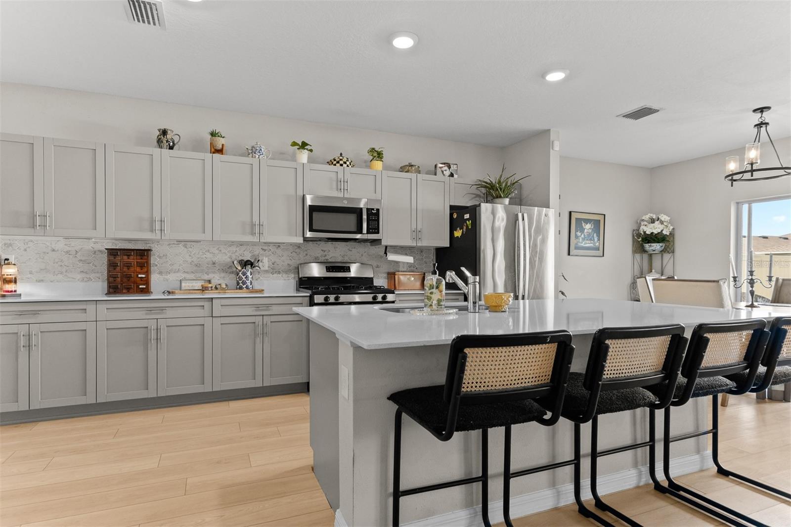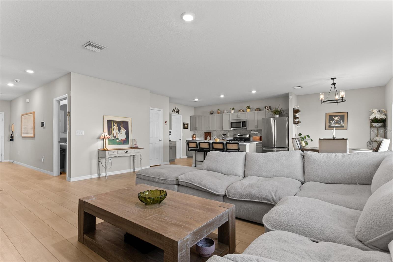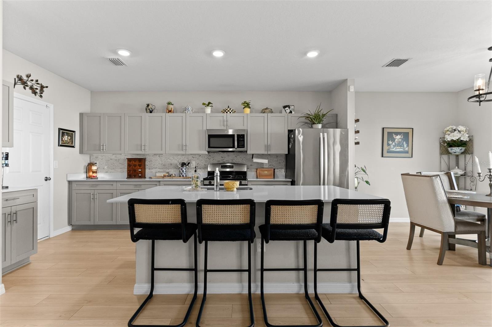 Welcome to this beautifully designed Marbella model by Casa Fresca Homes, offering the perfect blend of modern style, functionality, and comfort—nestled in the highly sought-after Hawkstone community in Lithia. The main floor features an open-concept layout ideal for both everyday living and entertaining. A spacious living and dining area flows seamlessly into the well-appointed kitchen, complete with quartz countertops, designer recessed panel cabinetry, stainless-steel microwave, dishwasher, and range, and a convenient pantry for added storage. A powder bath and additional storage space are thoughtfully tucked away, while the two-car garage provides ample room for vehicles and belongings. Upstairs, you’ll find a versatile recreation/loft space—perfect for a media room, playroom, or home office—along with four generously sized bedrooms. The private primary suite offers a relaxing retreat with a walk-in closet and en suite bath featuring quartz countertops and modern finishes. The additional bedrooms are well-positioned with easy access to a full bath, and the upstairs laundry room adds everyday convenience. Throughout the home, luxury vinyl plank flooring enhances durability and style, while energy-efficient double-pane Low-E windows and engineered hurricane structural hardware provide peace of mind. A Carrier® smart thermostat helps maintain comfort and efficiency year-round. Located just south of FishHawk Boulevard, Hawkstone is a master-planned community surrounded by scenic ponds, wetlands, and natural landscapes. Residents enjoy access to resort-style amenities including a community pool and playground, all while being just minutes from US-301, I-75, top-rated schools, shopping, dining, and everyday conveniences. This home offers the ideal combination of modern living and natural beauty—don’t miss your opportunity to own a Casa Fresca Homes Marbella in one of Lithia’s most desirable communities.
