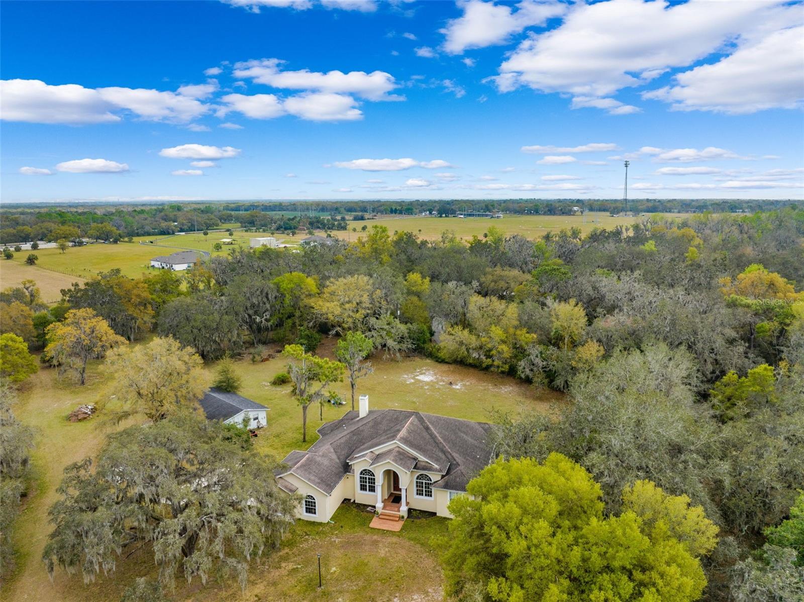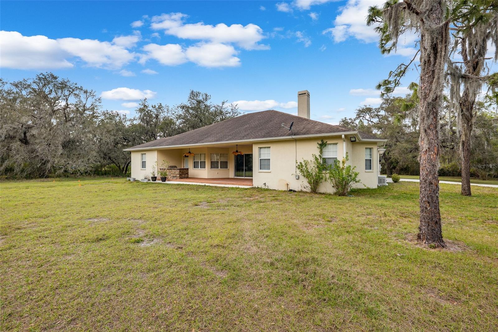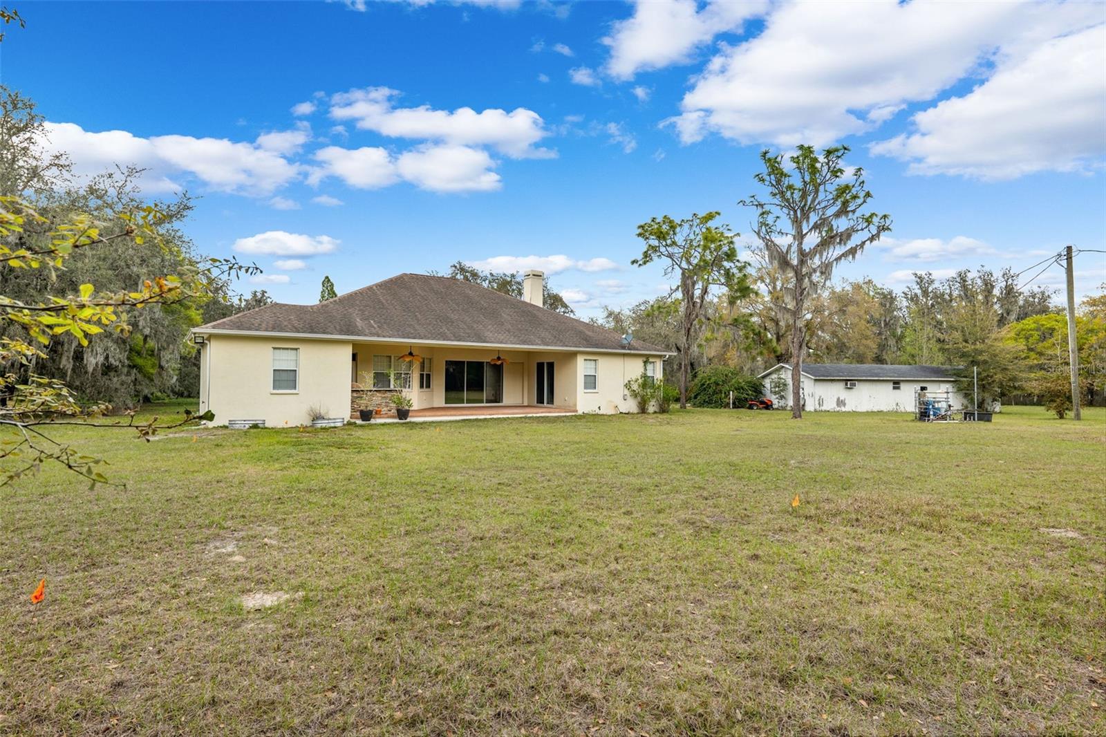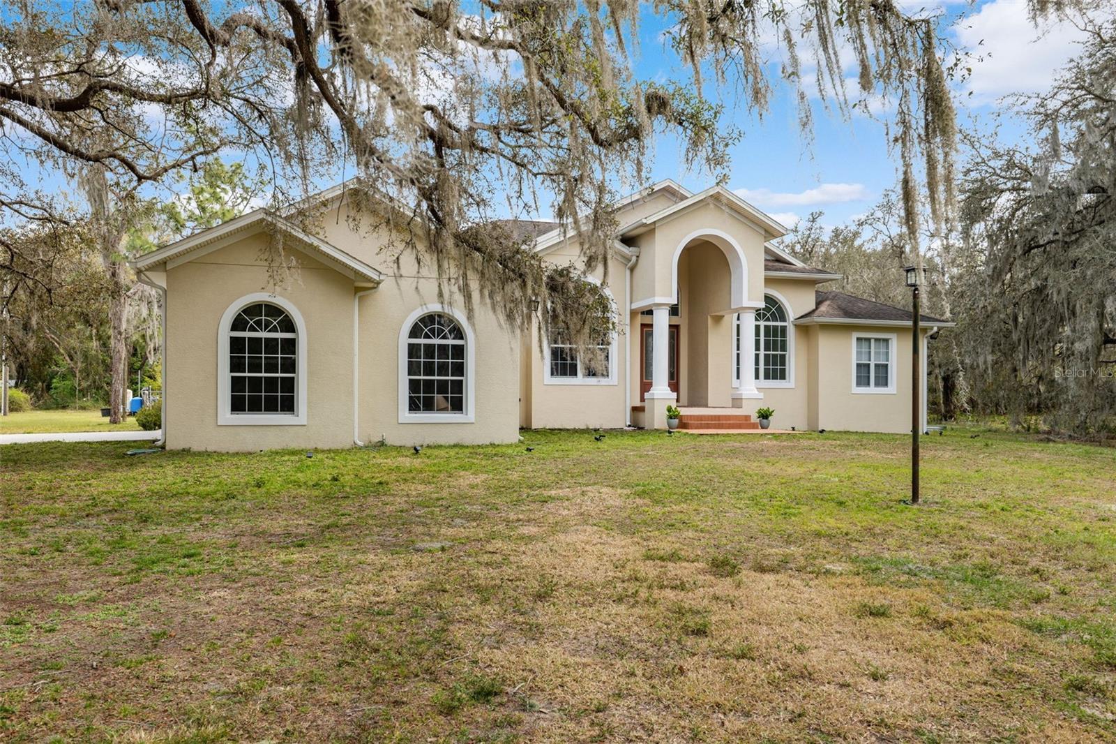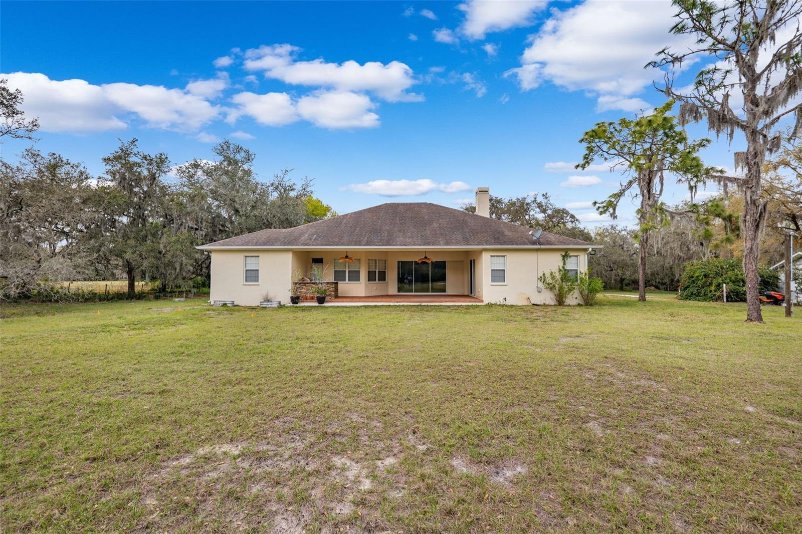 One or more photo(s) has been virtually staged.PRICE IMPROVEMENT!! Seller is also offering $10,000 toward buyer's closing costs! Welcome to your private COUNTRY LIVING dream home! This stunning 4-bedroom, 3-bathroom residence is situated on a sprawling 5.29 acres, offering the perfect blend of luxury and tranquility with plenty of space to create your own oasis. With no HOA or CDD fees, you have the freedom to enjoy your space without restrictions. Step inside and experience the grandeur of vaulted ceilings and an open concept floor plan. The heart of the home boasts a deluxe chef's kitchen with granite countertops, 42" solid wood cabinets, a separate island with a cooktop, and state-of-the-art VIKING stainless steel appliances. The kitchen seamlessly flows into both a formal dining room and a cozy breakfast nook with a beautiful view of the back yard. The open floor plan is ideal for entertaining, featuring a grand fireplace with a custom stone wall and custom lighting creating a warm and inviting atmosphere. The spacious living room is bathed in natural light, thanks to a 3-panel cascading sliding door. The primary bedroom retreat features a huge walk-in closet with built-in shelving, double vanity counters, a separate shower and a relaxing garden tub. A sliding glass door leads from the primary bedroom to your own private patio. Step outside to the covered patio, complete with an outdoor kitchen and grill – perfect for family gatherings, dining and entertaining. The remaining three bedrooms are situated on the other side of the home for ultimate privacy. Off the main living space sits an in-home office/den space. The property also includes a two-car attached garage as well as a separate, detached work shed with a three stall garage. Zoned agriculture-residential, this property includes a tranquil creek along the rear of the property. The property is completely fenced-in pasture land, surrounded by mature trees and lots of wildlife. For peace of mind, your new home includes a backup generator to power the entire home and two propane tanks. Enjoy the best of both worlds with the peaceful country surroundings while still being in close proximity to Tampa and award-winning local beaches. Don't miss out on the opportunity to call this exceptional property home!