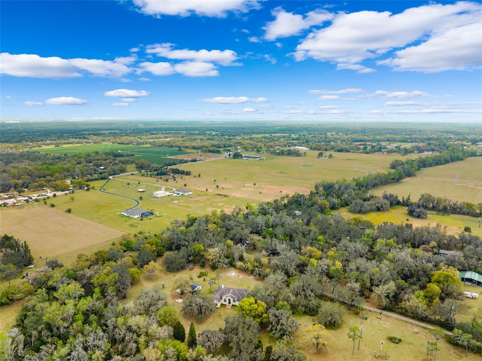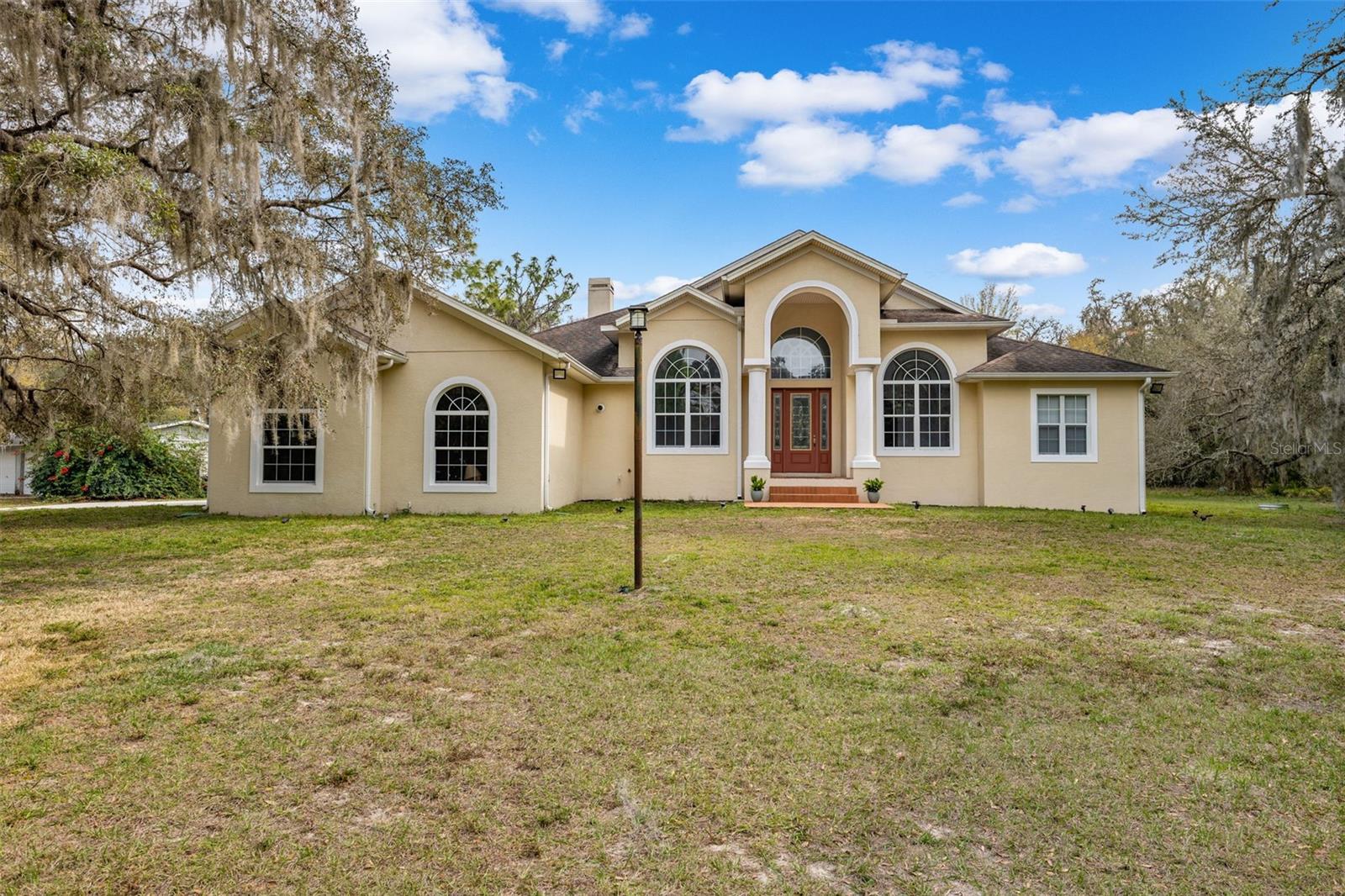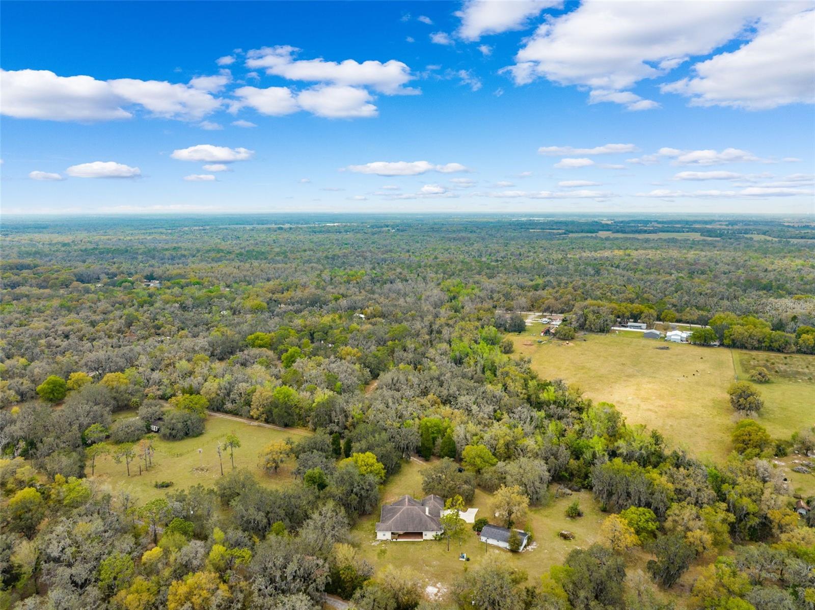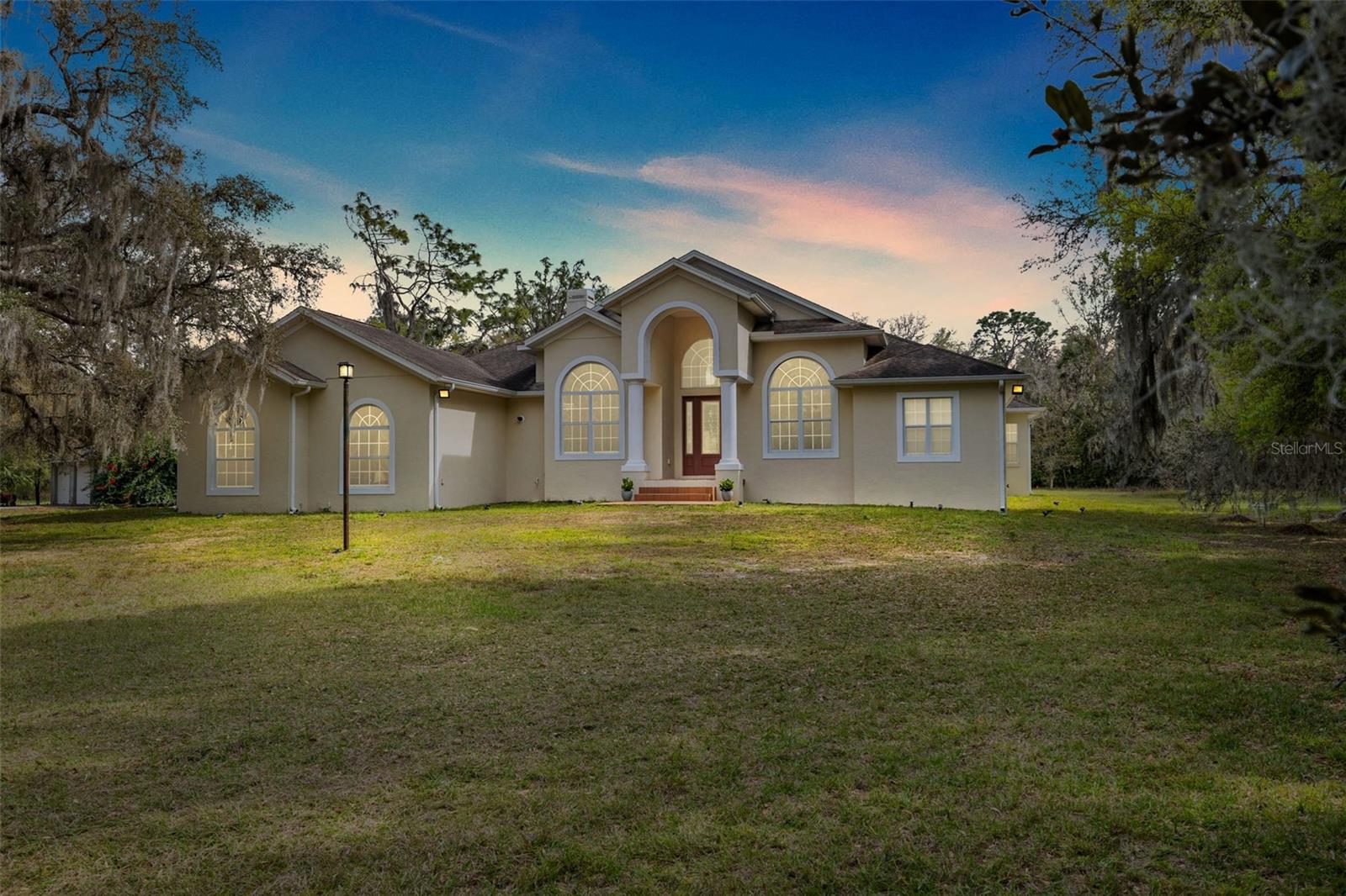 One or more photo(s) has been virtually staged.PRICE IMPROVEMENT!! Seller is also offering $10,000 toward buyer's closing costs! Welcome to your private COUNTRY LIVING dream home! This stunning 4-bedroom, 3-bathroom residence is situated on a sprawling 5.29 acres, offering the perfect blend of luxury and tranquility with plenty of space to create your own oasis. With no HOA or CDD fees, you have the freedom to enjoy your space without restrictions. Step inside and experience the grandeur of vaulted ceilings and an open concept floor plan. The heart of the home boasts a deluxe chef's kitchen with granite countertops, 42" solid wood cabinets, a separate island with a cooktop, and state-of-the-art VIKING stainless steel appliances. The kitchen seamlessly flows into both a formal dining room and a cozy breakfast nook with a beautiful view of the back yard. The open floor plan is ideal for entertaining, featuring a grand fireplace with a custom stone wall and custom lighting creating a warm and inviting atmosphere. The spacious living room is bathed in natural light, thanks to a 3-panel cascading sliding door. The primary bedroom retreat features a huge walk-in closet with built-in shelving, double vanity counters, a separate shower and a relaxing garden tub. A sliding glass door leads from the primary bedroom to your own private patio. Step outside to the covered patio, complete with an outdoor kitchen and grill – perfect for family gatherings, dining and entertaining. The remaining three bedrooms are situated on the other side of the home for ultimate privacy. Off the main living space sits an in-home office/den space. The property also includes a two-car attached garage as well as a separate, detached work shed with a three stall garage. Zoned agriculture-residential, this property includes a tranquil creek along the rear of the property. The property is completely fenced-in pasture land, surrounded by mature trees and lots of wildlife. For peace of mind, your new home includes a backup generator to power the entire home and two propane tanks. Enjoy the best of both worlds with the peaceful country surroundings while still being in close proximity to Tampa and award-winning local beaches. Don't miss out on the opportunity to call this exceptional property home!