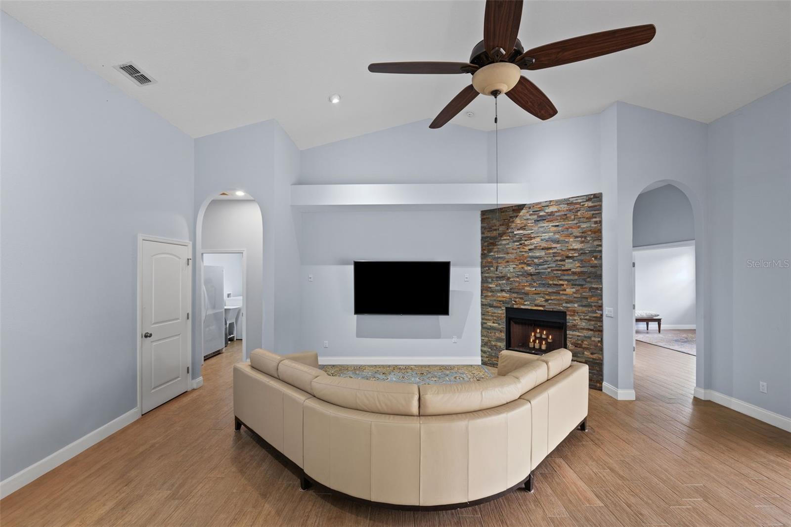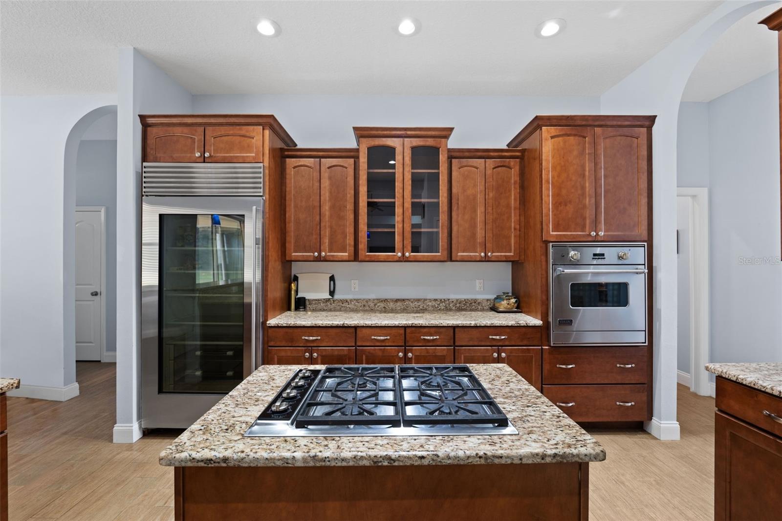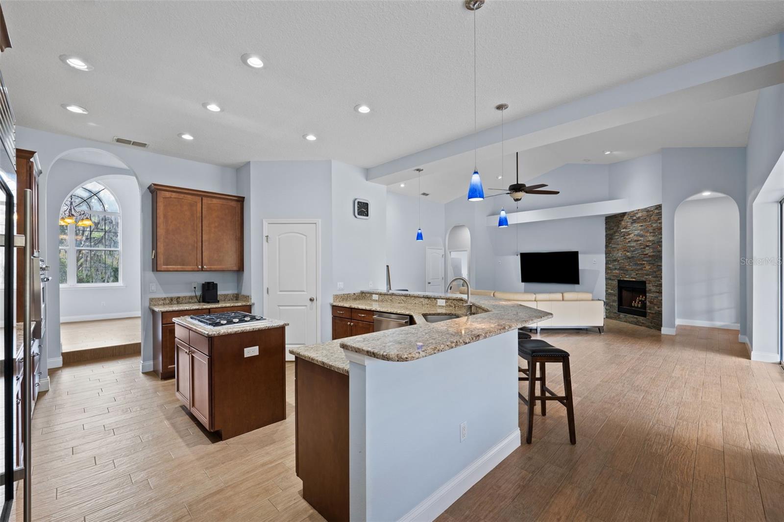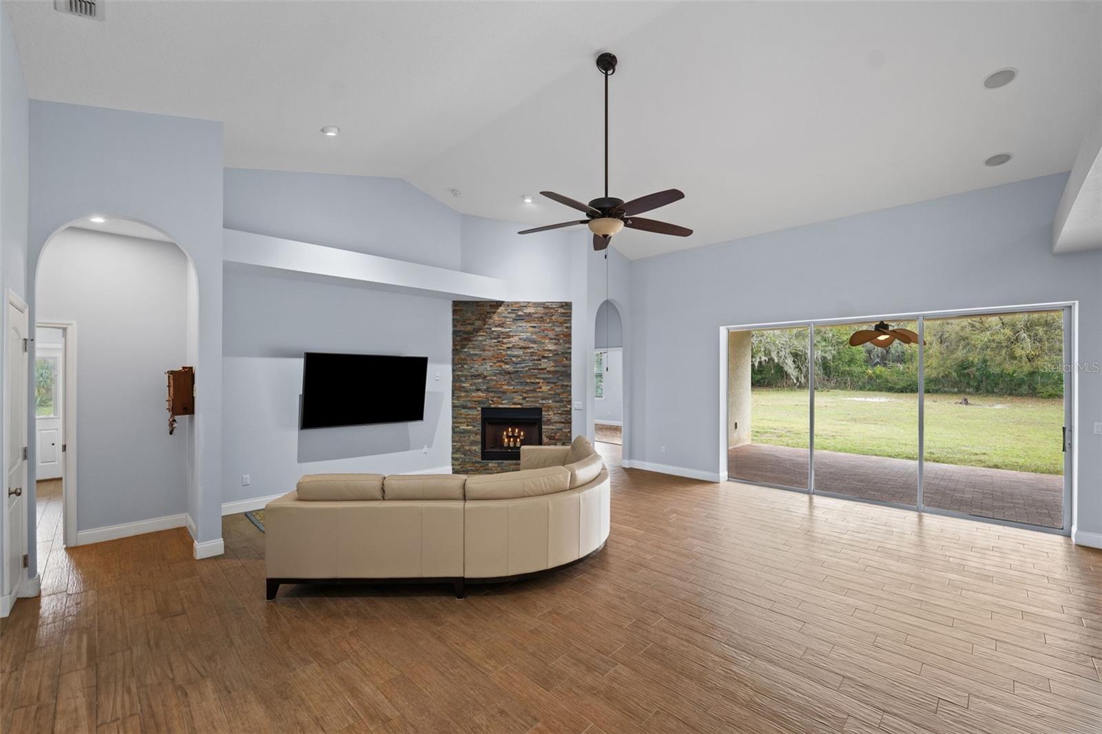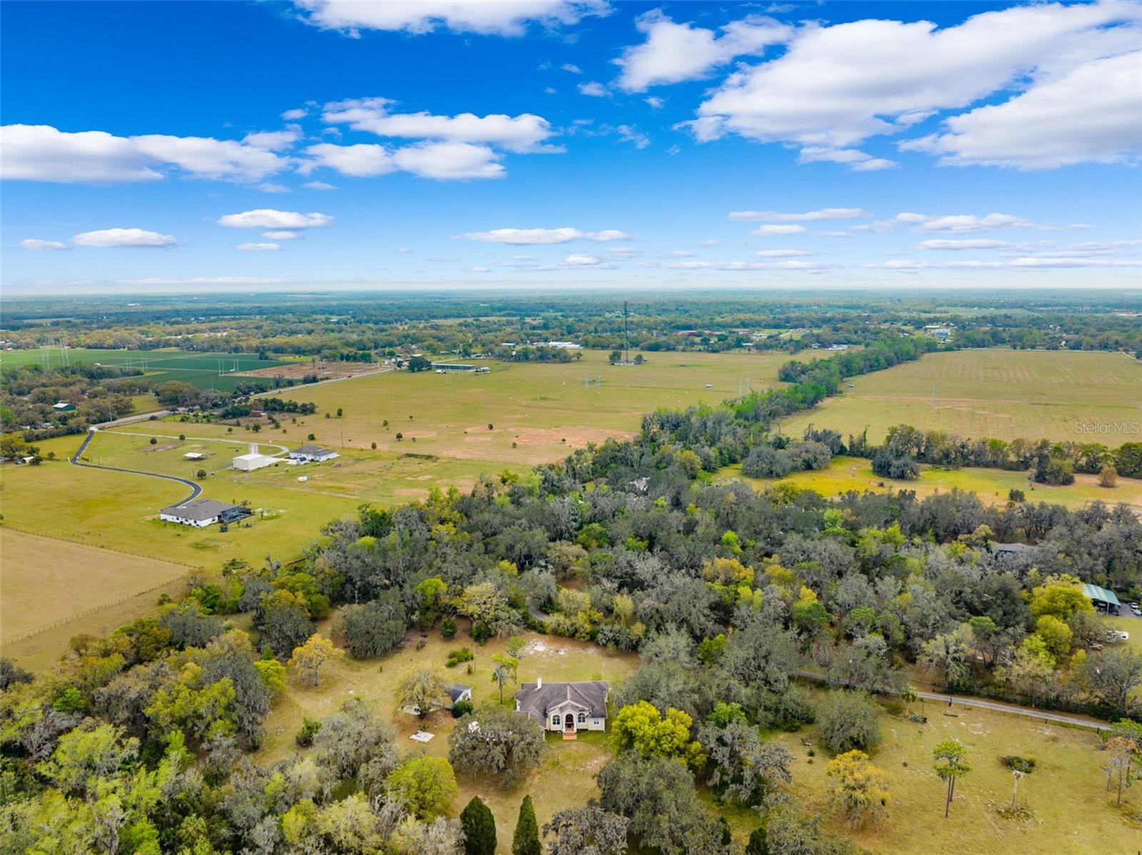 One or more photo(s) has been virtually staged.PRICE IMPROVEMENT!! Seller is also offering $10,000 toward buyer's closing costs! Welcome to your private COUNTRY LIVING dream home! This stunning 4-bedroom, 3-bathroom residence is situated on a sprawling 5.29 acres, offering the perfect blend of luxury and tranquility with plenty of space to create your own oasis. With no HOA or CDD fees, you have the freedom to enjoy your space without restrictions. Step inside and experience the grandeur of vaulted ceilings and an open concept floor plan. The heart of the home boasts a deluxe chef's kitchen with granite countertops, 42" solid wood cabinets, a separate island with a cooktop, and state-of-the-art VIKING stainless steel appliances. The kitchen seamlessly flows into both a formal dining room and a cozy breakfast nook with a beautiful view of the back yard. The open floor plan is ideal for entertaining, featuring a grand fireplace with a custom stone wall and custom lighting creating a warm and inviting atmosphere. The spacious living room is bathed in natural light, thanks to a 3-panel cascading sliding door. The primary bedroom retreat features a huge walk-in closet with built-in shelving, double vanity counters, a separate shower and a relaxing garden tub. A sliding glass door leads from the primary bedroom to your own private patio. Step outside to the covered patio, complete with an outdoor kitchen and grill – perfect for family gatherings, dining and entertaining. The remaining three bedrooms are situated on the other side of the home for ultimate privacy. Off the main living space sits an in-home office/den space. The property also includes a two-car attached garage as well as a separate, detached work shed with a three stall garage. Zoned agriculture-residential, this property includes a tranquil creek along the rear of the property. The property is completely fenced-in pasture land, surrounded by mature trees and lots of wildlife. For peace of mind, your new home includes a backup generator to power the entire home and two propane tanks. Enjoy the best of both worlds with the peaceful country surroundings while still being in close proximity to Tampa and award-winning local beaches. Don't miss out on the opportunity to call this exceptional property home!