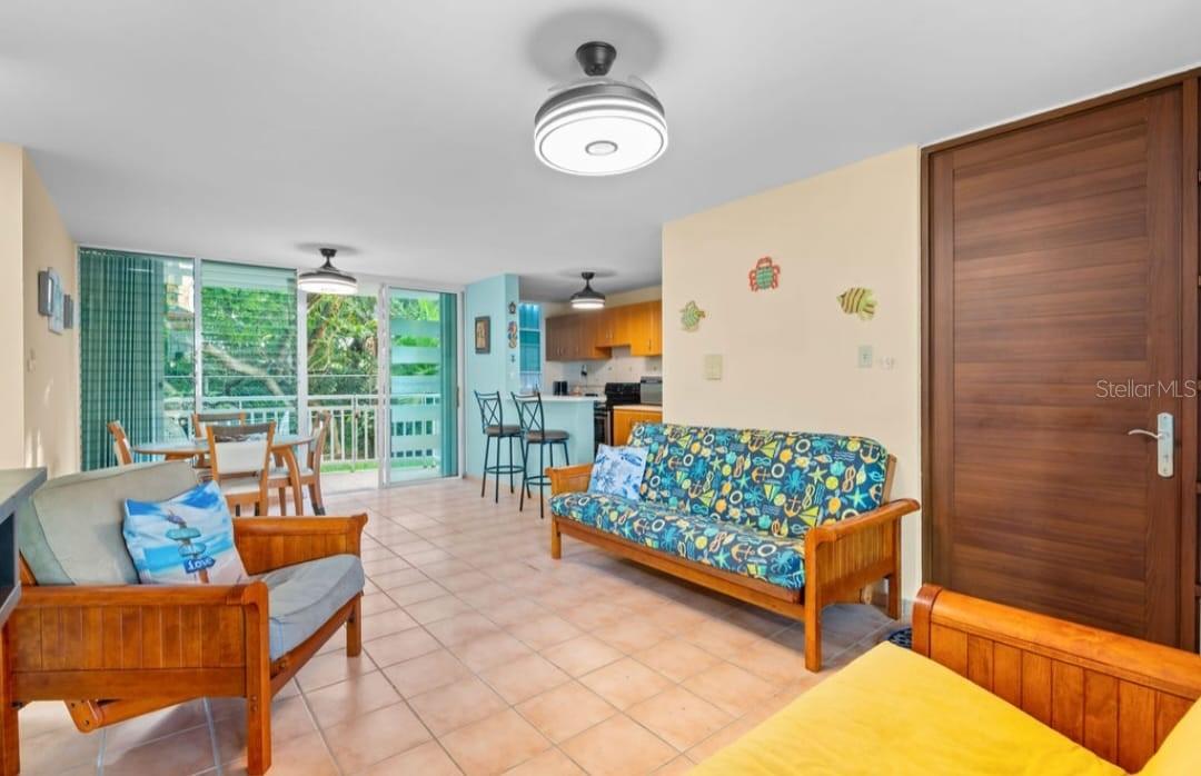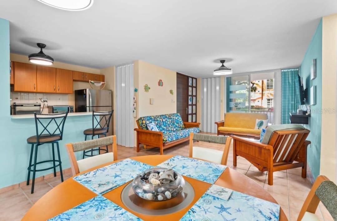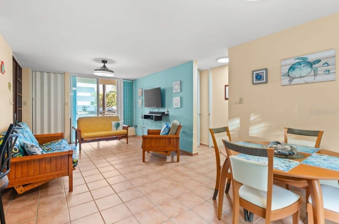 Garden apartment with two (2) bedrooms and 2 baths. The selling prince included all furniture and appliances. Two parkings spaces. Community allows short term rentals. Two swimming pools, gym, tennis court, gated community with 24 hrs security. Direct access to the beach. Visitors parking.