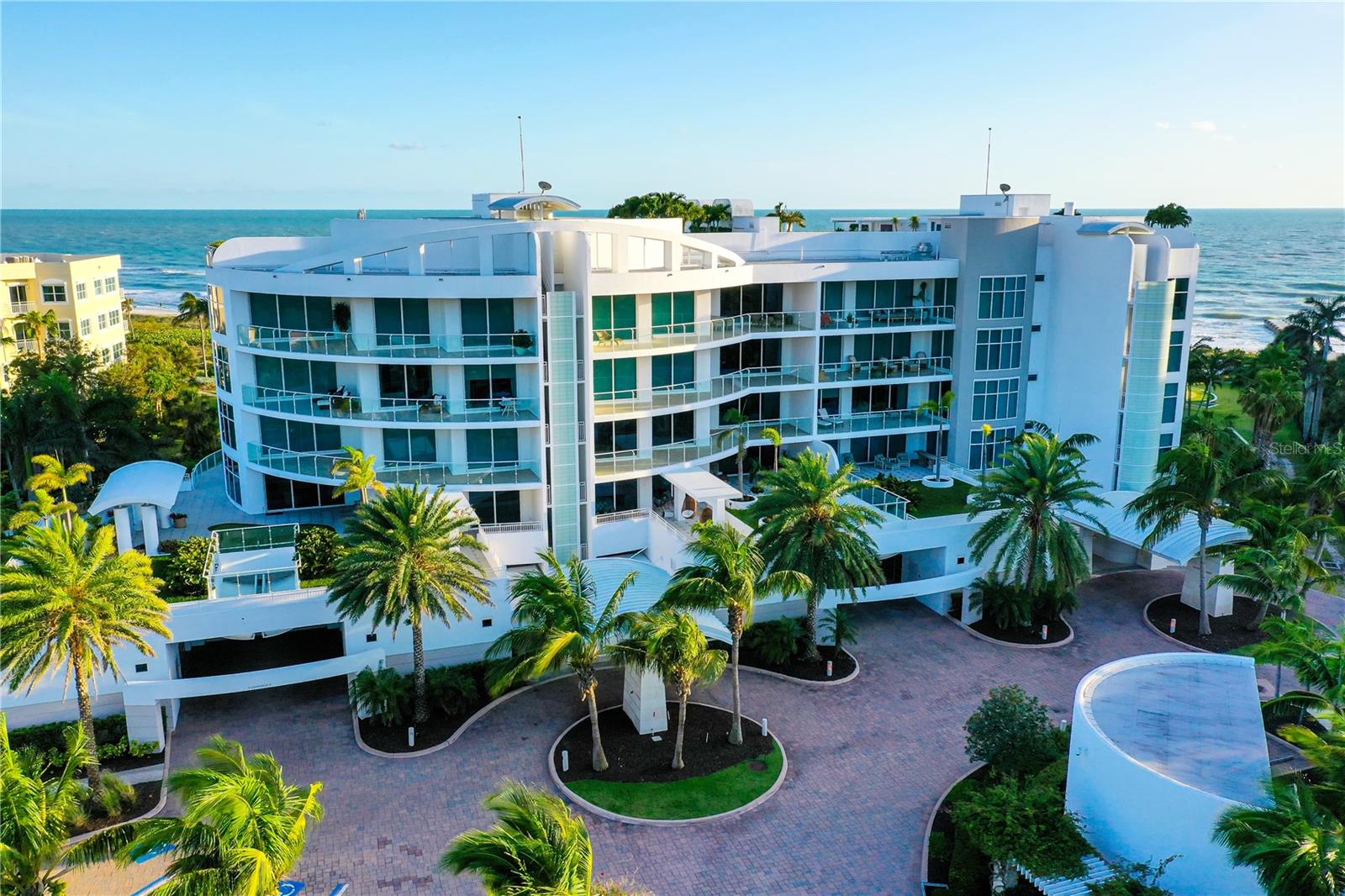 Exquisite home on the beach. Welcome to ARIA, a modern coastal sanctuary on the Gulf of Mexico, where luxury meets tranquility in a spectacular 3-bedroom plus office (or 4-bedroom) gulf-front residence. This architectural gem features expansive glass walls, clean lines, and angular details, seamlessly merging indoor elegance with the natural beauty of its beachfront setting. Enjoy the ultimate in modern living with a private pool and direct beach access via private walk-down stairs. Located on the serene, coveted south end of Longboat Key, ARIA offers stunning Gulf views from nearly every room. This exclusive enclave is built to the highest coastal construction standards and is secured within a gated community. The property features a scenic half-mile path perfect for walking, running, or simply enjoying the fresh sea air. The residence boasts floor-to-ceiling impact glass that invites natural light and connects the indoor spaces to expansive sunset terraces with breathtaking Gulf and garden views. The open floor plan provides residents a harmonious blend of privacy and ample space for entertaining guests. The outdoor summer kitchen, complete with a grilling station, enhances the home’s appeal, offering comfort and convenience for alfresco dining. Step into the chef’s kitchen, a culinary masterpiece outfitted with top-of-the-line Miele appliances, custom cabinetry, and sleek stone countertops. The walk-in pantry ensures ample storage for all culinary needs, making this kitchen a delight for both everyday meals and grand gatherings. Modern amenities include advanced telecommunications wiring with high-speed cabling and a “home run” configuration, ensuring seamless communication throughout the residence. Outside, a private infinity-edge lap pool awaits, surrounded by expanded terraces with planters and a fire pit table. Direct access to an oversized, humidity-controlled garage, accommodating 3 to 5 cars, and a separate storage room offers added convenience. The community amenities are equally impressive. An expansive paver terrace features a beautifully designed 67 ft x 42 ft community pool with a sculptural rain curtain. The elevated terrace and pool area provide picturesque views of the beach and Gulf, creating an ideal setting for relaxation and social gatherings. At the heart of ARIA is the Wellness Center, a serene space overlooking a tranquil lagoon. It includes the latest fitness equipment, a Pilates and yoga studio, and a private massage salon, complemented by comfortable men’s and women’s locker rooms. Adding to ARIA’s allure is the historic Villa Am Meer, a 1935 Mediterranean estate meticulously restored to serve as the Aria Residents’ Social Room/Clubhouse and resort-style guest suites. This 5,000-square-foot villa, originally built by German immigrant Dr. Hermann Kohl and his wife Hertha, retains its original charm with hand-painted ceramic tiles, stained glass windows, a fireplace, cypress ceilings, stone floors, and arched doorways. The villa features a living room, private dining room, catering kitchen, climate-controlled wine cellar, card room, and sunset terrace with a fire pit, offering a timeless blend of old-world elegance and contemporary luxury. Experience unparalleled coastal living at ARIA, where every detail is designed for comfort, sophistication, and a seamless connection to the beauty of the Gulf of Mexico.