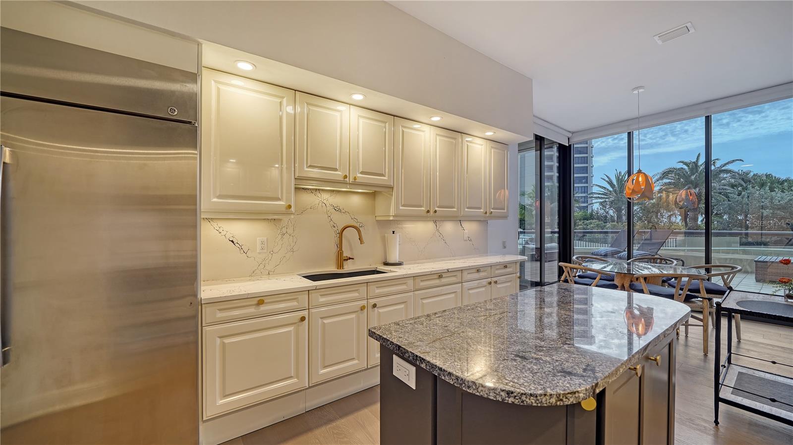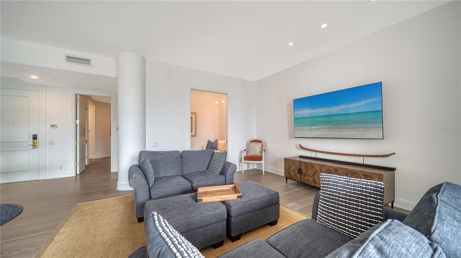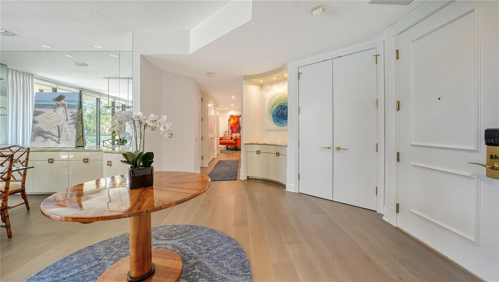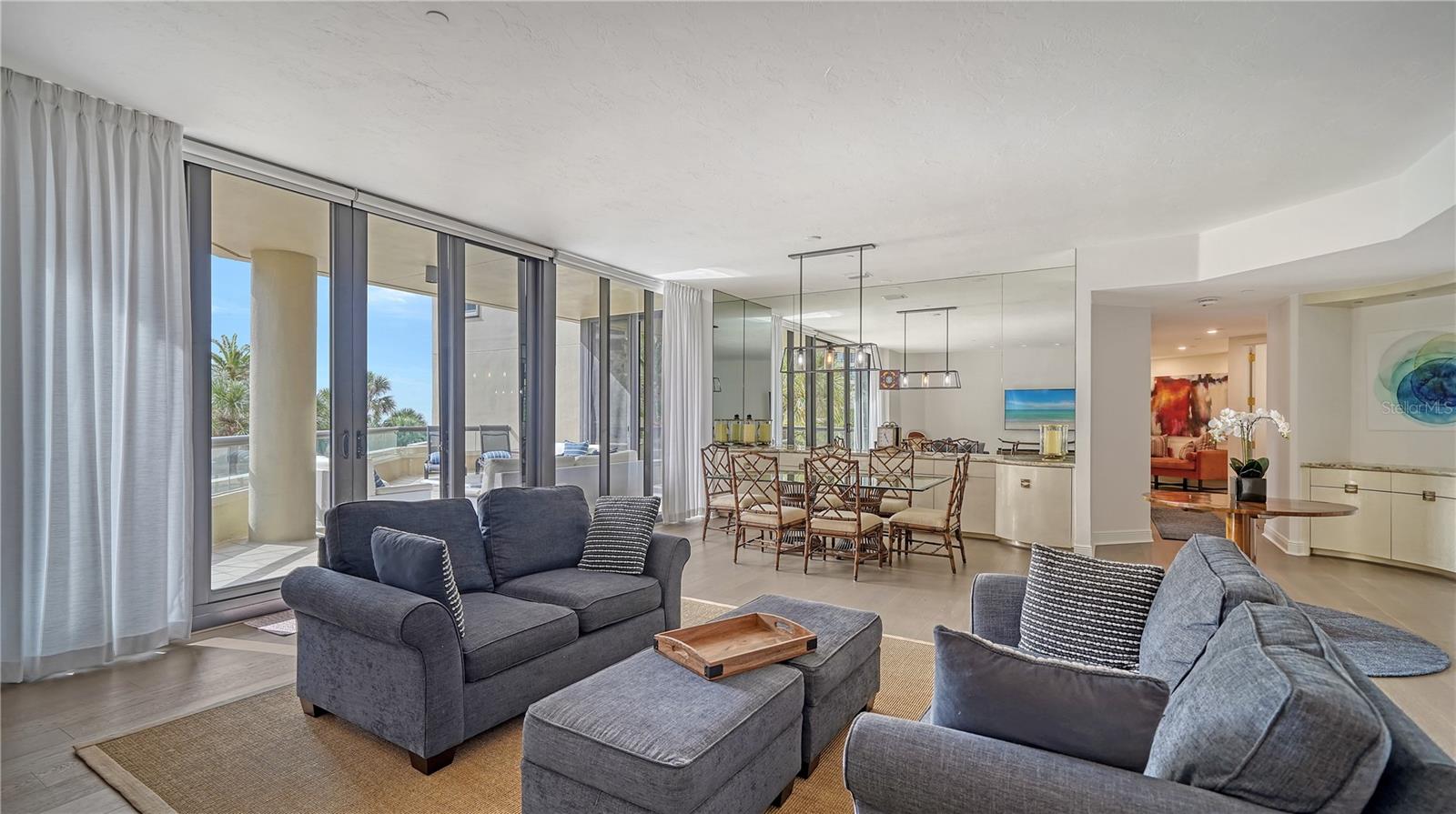 One or more photo(s) has been virtually staged. Welcome to Water Club! Escape to Paradise in this Beautifully furnished Beachfront Oasis on the South end of Longboat Key. Residence 105 is almost new, with Southern exposure and natural light filling most rooms. Expansive floor-to-ceiling windows and sliding glass doors invite the gentle sea breeze. The residence has extraordinary craftsmanship and design with premium finishes, and the generous living area is thoughtfully designed for intimate gatherings or grand entertaining—Living here in Paradise, you can have instant enjoyment to create new memories that last a lifetime. The lavish primary suite pampers owners with its private terrace, updated bathroom, and a walk-in closet. The guest suite has a walk-in closet and a classic en-suite bathroom with stone floors at the opposite end of the residence. The kitchen offers a granite countertop for the chefs to create culinary delights. It has a center island and a generous breakfast area with views of the lushly landscaped garden. Features include Duchateau Vernal Como 7 " wide European oak flooring throughout, a spacious & open plan 2,600 sq. ft. under air, with 10 ft. ceilings, and an oversized terrace with partial Gulf views. It has an extended 1,000 sq. ft. terrace, 3 bedrooms and 2.5 baths on the Plaza Level. Enjoy the miles of pristine beaches and resort-style living! The Water Club is an exceptionally well-run community with a substantial reserve fund. It has a magnificent clubhouse, the social hub with a European-style spa and fitness center. The Club Room has a billiard table, a library with a fireplace, and a ballroom that can accommodate at least 100 guests for a wedding with a sunset lounge and private beverage lockers. Amenities include impeccable concierge services, a guard gate, an Olympic-sized heated pool, and Har-Tru tennis courts. This sought-after community is centrally located minutes from St. Armand’s Circle and downtown Sarasota. Also, minutes to Publix, CVS, phenomenal restaurants, opera, theaters, 45 holes of golf, and the 2nd largest marina on the West Coast. Bonus: the Water Club is pet-friendly; 2 small pets up to 35 lbs. are welcome. Escape to Paradise in this beachfront oasis. Enjoy and experience the epitome of coastal luxury living on Longboat Key.