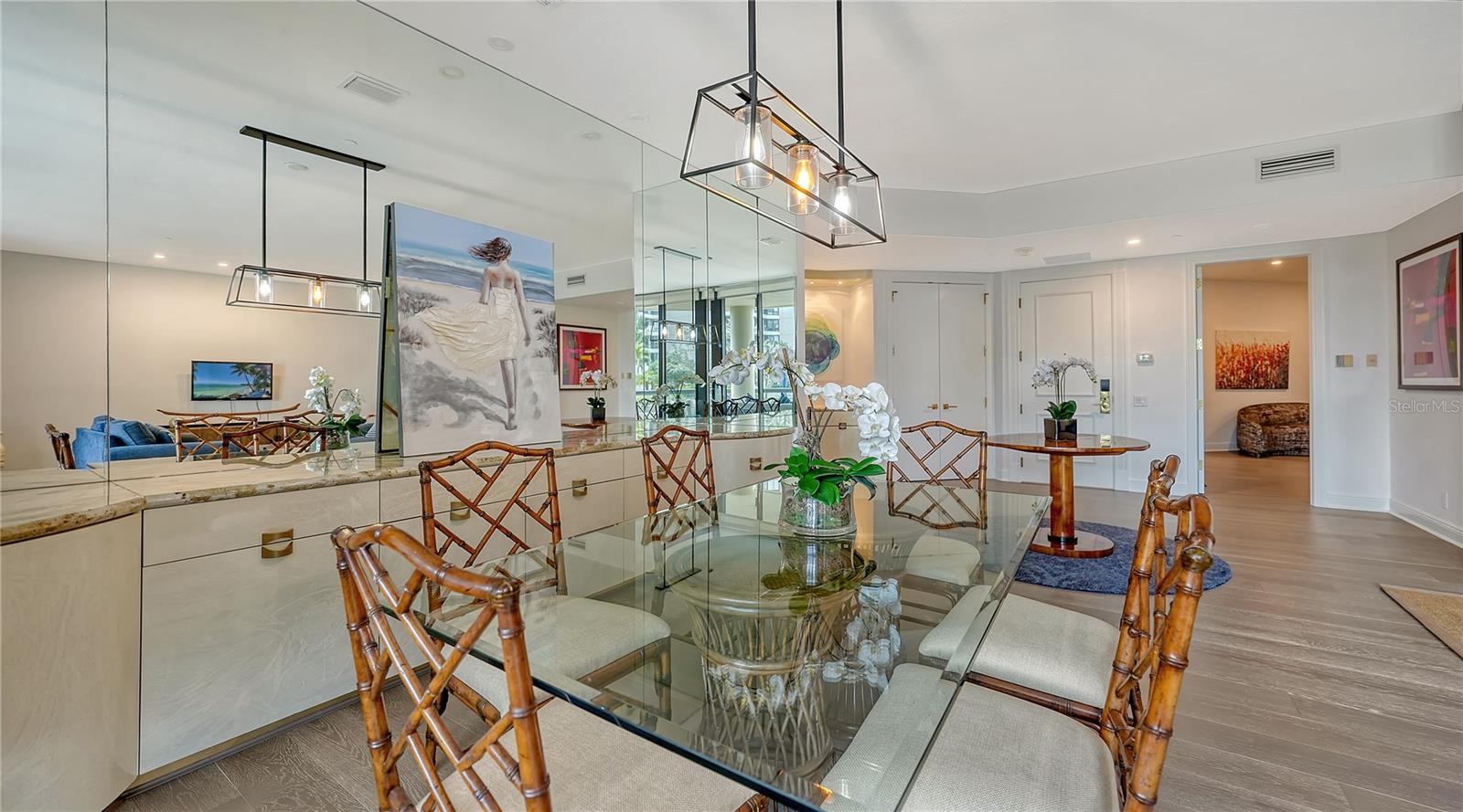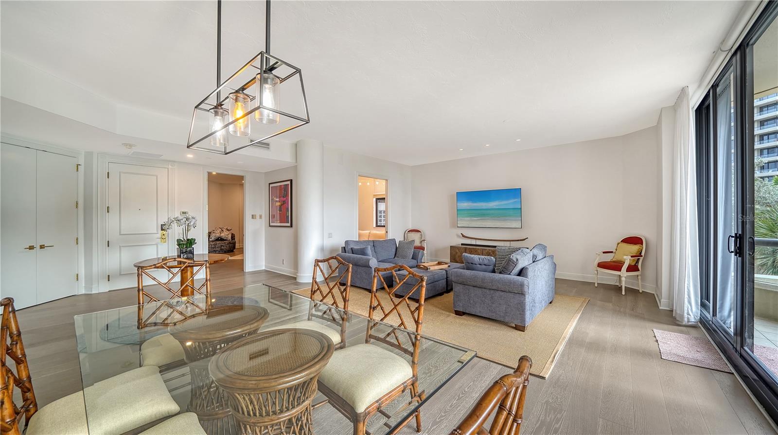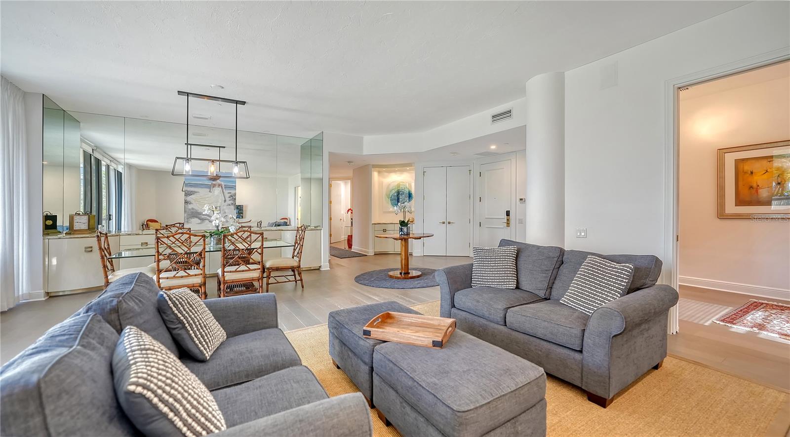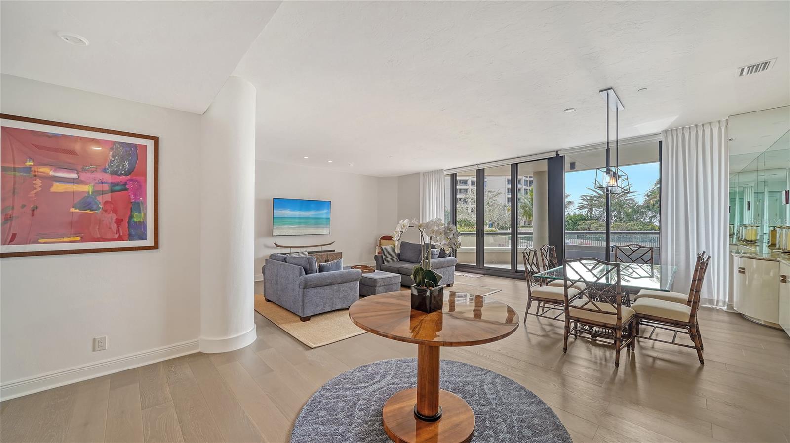 One or more photo(s) has been virtually staged. Welcome to Water Club! Escape to Paradise in this Beautifully furnished Beachfront Oasis on the South end of Longboat Key. Residence 105 is almost new, with Southern exposure and natural light filling most rooms. Expansive floor-to-ceiling windows and sliding glass doors invite the gentle sea breeze. The residence has extraordinary craftsmanship and design with premium finishes, and the generous living area is thoughtfully designed for intimate gatherings or grand entertaining—Living here in Paradise, you can have instant enjoyment to create new memories that last a lifetime. The lavish primary suite pampers owners with its private terrace, updated bathroom, and a walk-in closet. The guest suite has a walk-in closet and a classic en-suite bathroom with stone floors at the opposite end of the residence. The kitchen offers a granite countertop for the chefs to create culinary delights. It has a center island and a generous breakfast area with views of the lushly landscaped garden. Features include Duchateau Vernal Como 7 " wide European oak flooring throughout, a spacious & open plan 2,600 sq. ft. under air, with 10 ft. ceilings, and an oversized terrace with partial Gulf views. It has an extended 1,000 sq. ft. terrace, 3 bedrooms and 2.5 baths on the Plaza Level. Enjoy the miles of pristine beaches and resort-style living! The Water Club is an exceptionally well-run community with a substantial reserve fund. It has a magnificent clubhouse, the social hub with a European-style spa and fitness center. The Club Room has a billiard table, a library with a fireplace, and a ballroom that can accommodate at least 100 guests for a wedding with a sunset lounge and private beverage lockers. Amenities include impeccable concierge services, a guard gate, an Olympic-sized heated pool, and Har-Tru tennis courts. This sought-after community is centrally located minutes from St. Armand’s Circle and downtown Sarasota. Also, minutes to Publix, CVS, phenomenal restaurants, opera, theaters, 45 holes of golf, and the 2nd largest marina on the West Coast. Bonus: the Water Club is pet-friendly; 2 small pets up to 35 lbs. are welcome. Escape to Paradise in this beachfront oasis. Enjoy and experience the epitome of coastal luxury living on Longboat Key.
