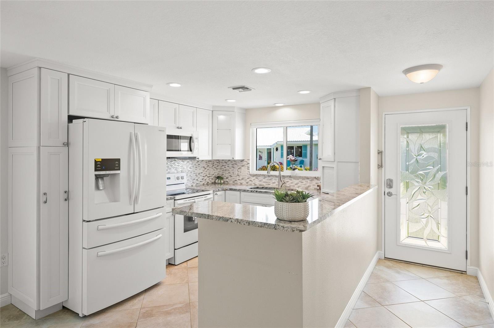 Fantastic value! Water and kayak owners will love the preferred location of this two-bedroom, two-bath standalone villa adjacent to the bay water with lovely partial bay views. This beautiful neighborhood of Spanish Main welcomes you home. Villa living at its best since mostly all the renovations were completed in 2017. New roof 2024 and A/C 2019 Tasteful appointments from this home add to the incredible features of this villa. This villa has numerous upgrades throughout. Large dining/great room combo opens onto an expansive lanai that overlooks a private, peaceful and tranquil setting of tropical lush foliage. Large neutral tile throughout. The primary bathroom has been upgraded with new cabinets, countertop, lighting fixtures, an oversized large, frosted window for extra light and a step-in shower. Upgrades continue with a hidden shoe caddy in primary bedroom closet. Guest bath upgraded with soaker tub, new cabinets and lighting fixtures. The kitchen updates include new kitchen cabinets, a slide out kitchen pantry and new dishwasher, and more. Hurricane-grade windows and doors. Inside the villa, washer and dryer. Hurricane shutters on the large rear windows and door. Inside air ducts were completely replaced. A four-point inspection was completed in 2024. Decorative hurricane glass front door retractable screen, outdoor shower plus an electric awning installed on oversized brick paver patio. Sewer lines relined. Feature list available as with all this, there is more. This neighborhood-like community is pet friendly and has a 40-slip deepwater marina with electric and water, deeded beach access, fishing, boating, kayaking, heated pool, clubhouse with activities. Nominal fee for rental of the boat slips. St. Armands is just down the road with amazing restaurants, fabulous shopping and 20 minutes to downtown Sarasota. This is a 55-plus community, but you can purchase at any age and live here full-time at 50. An incredibly affordable lifestyle that gives you million-dollar moments every day. A deal on Longboat Key complete with evening sunsets on beautiful beaches and entertaining bird life, manatees and dolphins. This is a must-see.