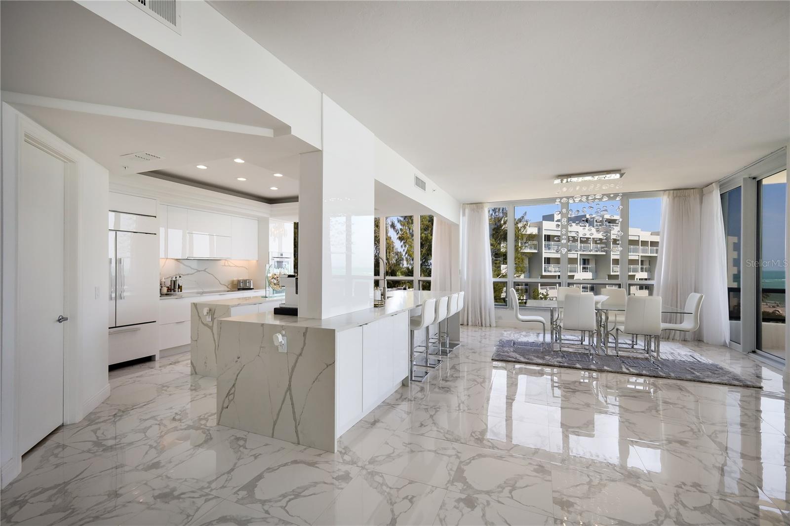 Price Improvement! Experience luxury living at its finest with this breathtaking Royal floorplan within L'Ambiance at Longboat Key Club. Boasting a coveted southern exposure and direct beachfront access, this rarely available expansive corner residence features wraparound terraces that offer unparalleled vistas of the majestic Gulf of Mexico waters and pristine white sandy beaches. L’Ambiance seamlessly blends casual elegance with upscale amenities. Step off the elevator into your private lobby and delight in the impeccable design details, including soaring 10 ft. ceilings, Porcelain Tile throughout, and a state-of-the-art gourmet kitchen perfect for culinary enthusiasts. The Gulf-front master suite showcases panoramic views and opens onto the expansive terrace, offering a serene retreat complete with a walk-in closet and private bath. This remarkable residence has been completely remastered with bespoke finishes. The exceptional and highly sought-after Royal floorplan features three true bedrooms, each with its own private ensuite, as well as an additional bonus room, ideal for versatile living spaces. Residents of L'Ambiance enjoy an array of exclusive amenities, including a dedicated concierge in the lobby, 24-hour guard gate security, and a lavish Olympic-size pool overlooking the Gulf, surrounded by lush landscaping. Further enhancing the lifestyle at L'Ambiance are two Har-Tru tennis courts, a state-of-the-art fitness center with his and her locker rooms, game and billiard rooms, a library, wine room, and three private guest suites. In addition, this residence provides the convenience of one underground parking spot, with the potential for a second spot available upon a full-price or near-full-price offer. Situated just minutes from the renowned shopping and dining destinations of St. Armands Circle, L'Ambiance offers unparalleled luxury living in an unrivaled beachfront setting.