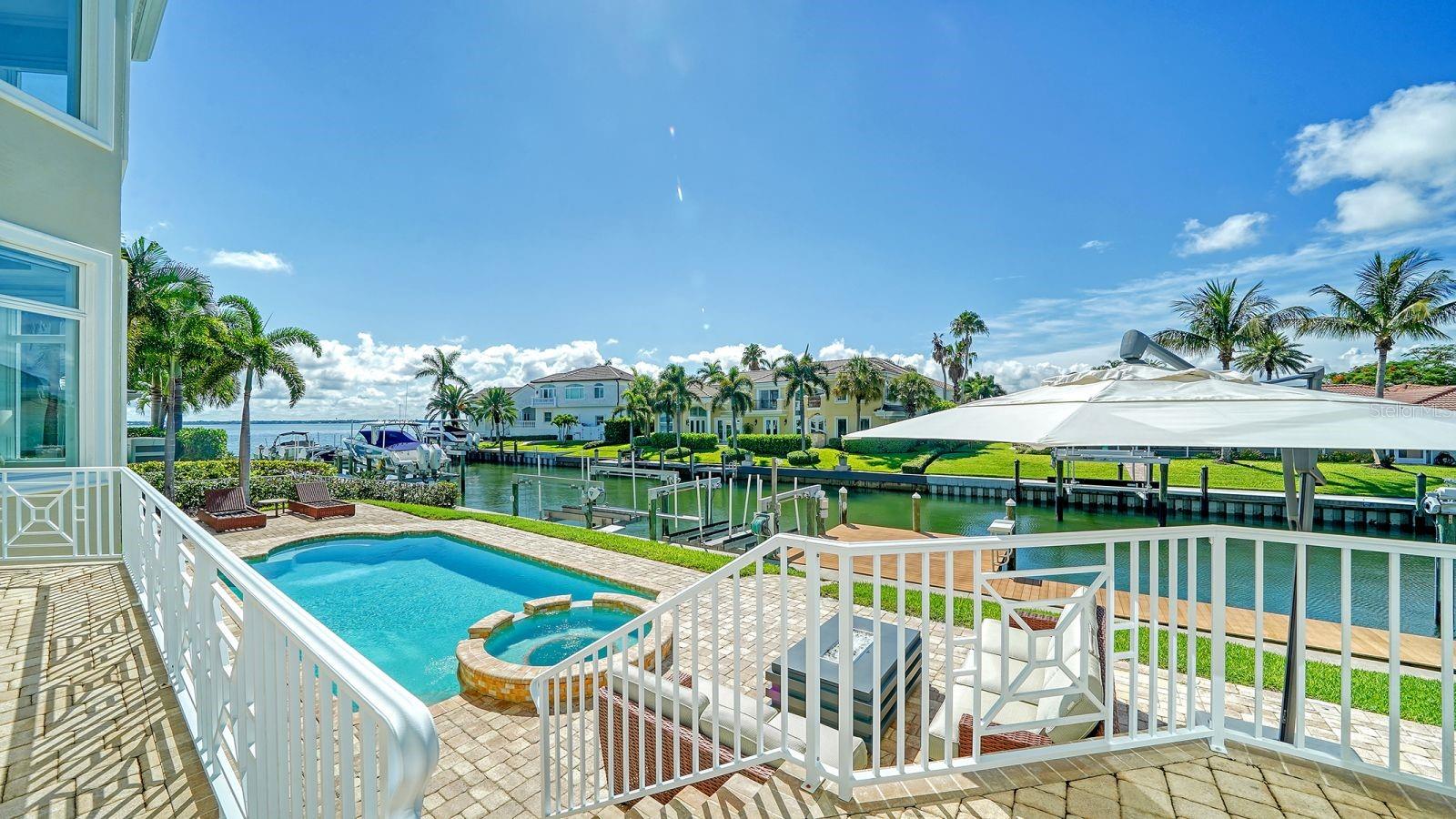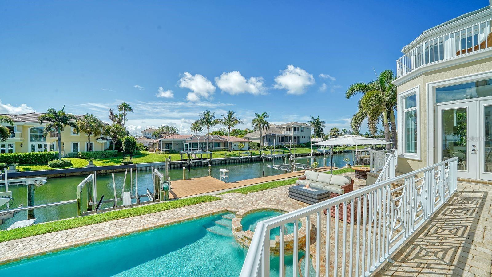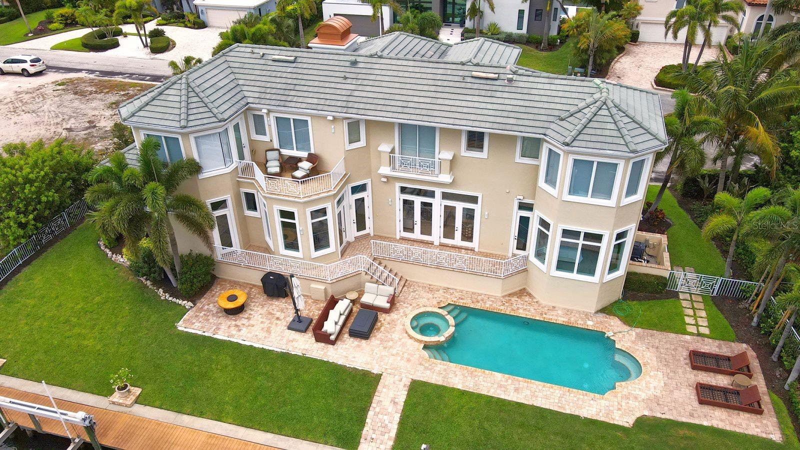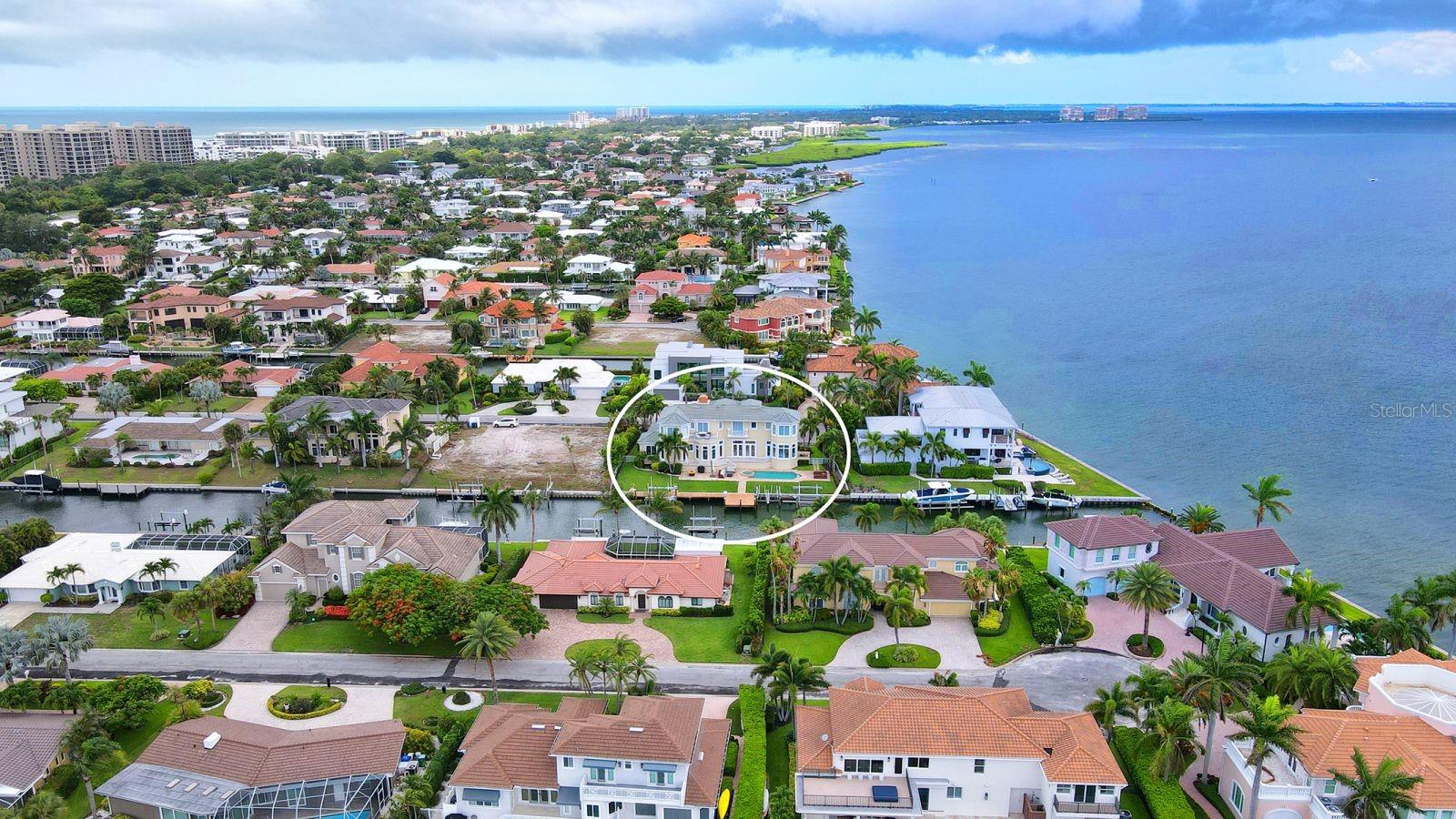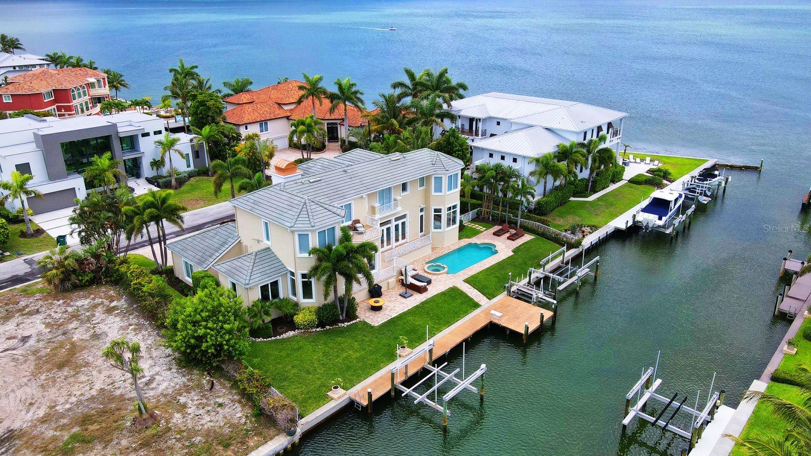 Welcome to paradise! This sun filled coastal home is situated in one of the most coveted locations on the prestigious barrier island of Longboat Key. Spanning 4.138 square feet, the 5 bedroom /5 bathroom house was built in 2003 and has an elevator from garage to first and second floors. Brimming with special details throughout, you will be impressed with the care and quality displayed. The interior is crisp and clean while offering sparkling water views of bay and saltwater canal from most rooms. Here you can enjoy the peaceful wildlife of birds, fish, manatees, and more. Upon entering, you will be welcomed by soaring ceilings and exquisite trim featuring custom tray lighted ceilings creating an atmosphere of luxury and elegance. The first floor features primary master suite, formal living room w/fireplace, and dining room with tray ceiling. The renovated chef’s kitchen offers Viking appliances, wine chiller, walk in pantry, island, breakfast bar and an eat in area that opens to the family room with wet bar and gym. Here you can enjoy bay views with access to backyard pool/spa area. Upstairs is the second primary suite with private balcony where you can watch the sunrise while overlooking the bay and canal. The oversized walk in closet has island, built ins, mini fridge, and plenty of storage. This suite comes with a grand primary bath with double vanities, separate water closet, make up area, tiled shower and soaking tub. Additionally there are 2 bedroom suites with water views, and a den/office. Positioned just one house from the bay, this property provides ample boating space with 2 lifts and separate jet ski lifts. A heated pool, spa, patio, dock, and exterior entertaining area add to the home’s allure, making it a must see on your list. Residents enjoy deeded beach access to one of the best white sandy beaches in Florida. This southern island location is close to many amenities such as the Longboat Key Club offering golf, tennis, beach, dining, and more. Easy access to shopping and St Armand’s Circle, downtown Sarasota, and a quick drive to SRQ International airport.