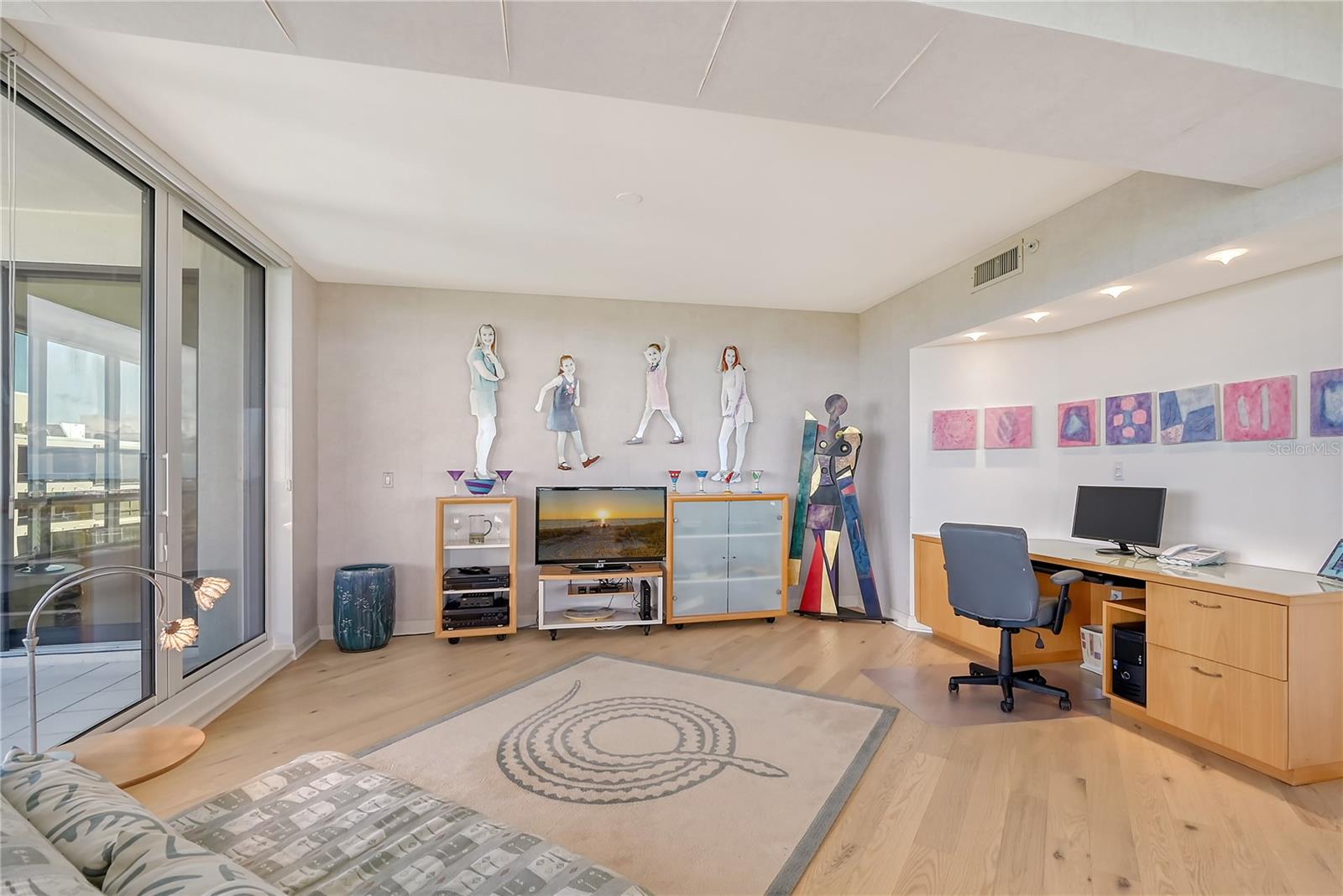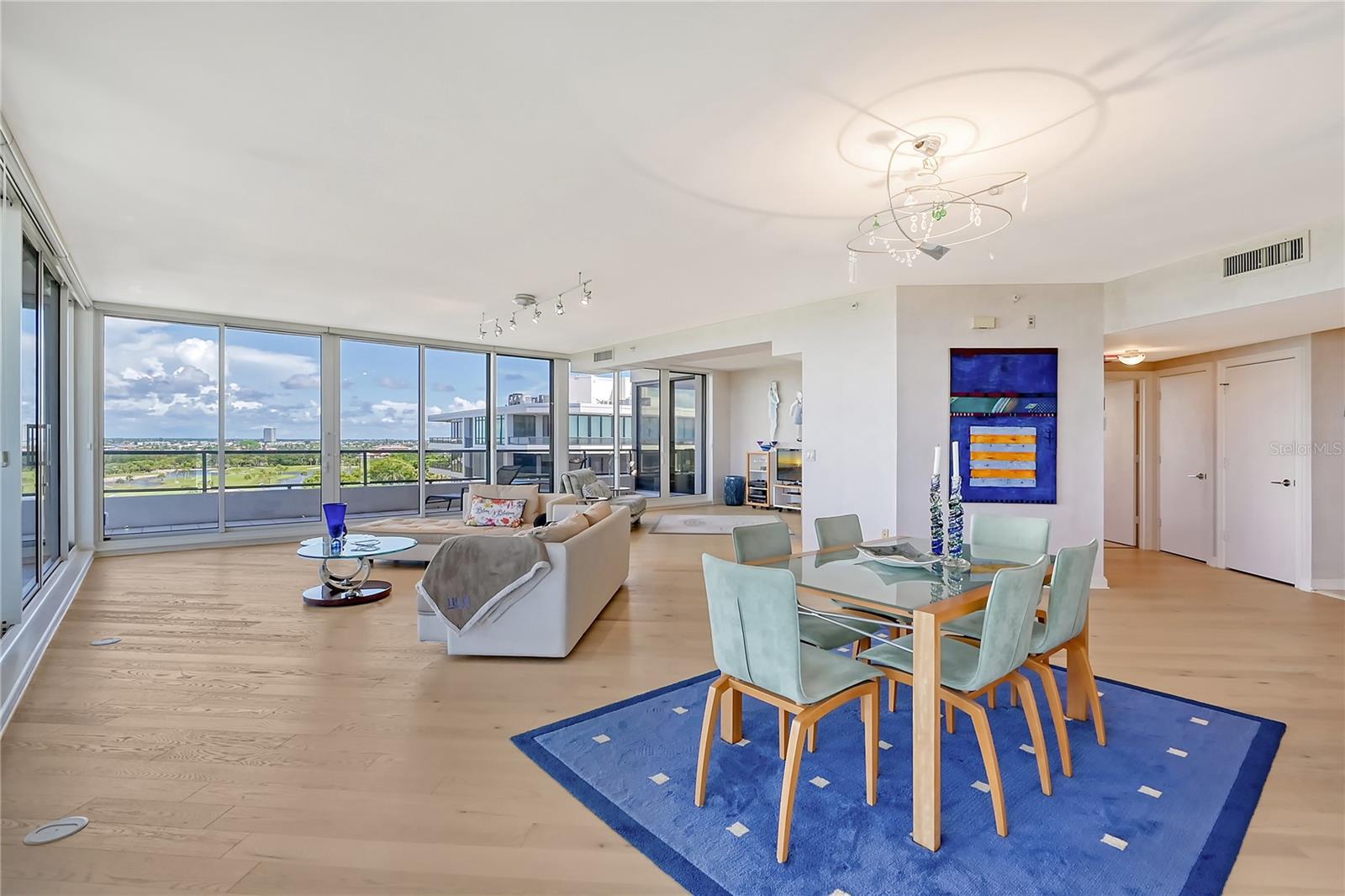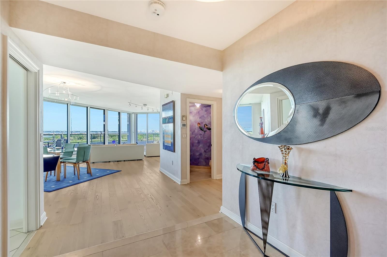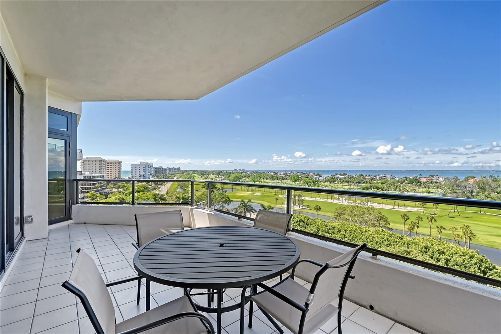 Perched on the eighth floor of Building III in a tranquil south corner location, this sun-drenched Sanctuary residence offers breathtaking panoramic views of Sarasota Bay and downtown’s skyline through newly installed (2023) impact glass sliders and windows with Hunter Douglas window treatments. Spanning nearly 2,400 square feet, the open concept interior awaits your personal touch to transform it into your ideal island retreat. Enjoy morning sunrises from the wraparound east terrace accessed through walls of impact glass sliders. Enter through double doors into a spacious foyer leading to a 30’ living/dining room with expansive floor-to-ceiling glass walls, beautiful wood flooring, and panoramic views that add to its sunny ambiance. The light-filled eat-in kitchen boasts an island, built-in ovens, pantry, and a charming dining nook surrounded by bay windows with terrace access. The secluded master retreat features its own bay terrace access, his/her walk-in closet with plenty of built-ins, and an en-suite marble bathroom with a water closet. A guest suite and den, easily convertible into a third bedroom, complete the split plan layout for optimal privacy. Included with this special residence is one under-building parking space and additional owner’s storage. Life at The Sanctuary, within the gated Longboat Key Club community, offers a resort-style lifestyle. Residents enjoy amenities such as a Gulfside swimming pool with cabanas, extensive sundeck, outdoor bar, heated pool and spa, tennis courts, fitness center, clubhouse activities, and a boardwalk to deeded beach access. The community also features a 24-hour manned guard gate and on-site management, ensuring security and convenience. For an even greater level of indulgence and relaxation, consider becoming a member of the renowned Longboat Key Club, available for purchase separately. This prestigious club offers access to world-class amenities, including immaculate golf courses, top-notch tennis facilities, a resort-style pool deck, a fully equipped fitness center, rejuvenating spa services, an array of exquisite dining options, and first-rate marina facilities. Live surrounded by luxury and natural beauty at The Sanctuary.