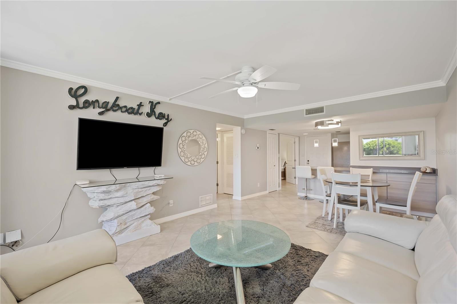 This beautifully updated two bedroom, two bath condo located at the gated community of Seaplace in Longboat Key offers partial Gulf views from the patio and master bedroom, creating a serene and picturesque living experience. The condo features new impact windows and sliders, providing added security and energy efficiency. Seaplace is a gated and guarded community, ensuring privacy and peace of mind. This vibrant community offers an array of amenities including two heated swimming pools, a spa, three Har-Tru tennis courts, a fitness center, and a clubhouse with a library. The lush, landscaped grounds are perfect for leisurely strolls, and the direct beach access allows residents to enjoy the pristine sands and sparkling waters of the Gulf of Mexico. Additionally, residents will soon enjoy the luxury of the new St. Regis hotel and dining, just a short stroll down the beach. Experience the finest in coastal living with world-class amenities and a prime location. Don't miss this opportunity to own a piece of paradise in one of Longboat Key's most sought-after communities! Being sold turn-key furnished.