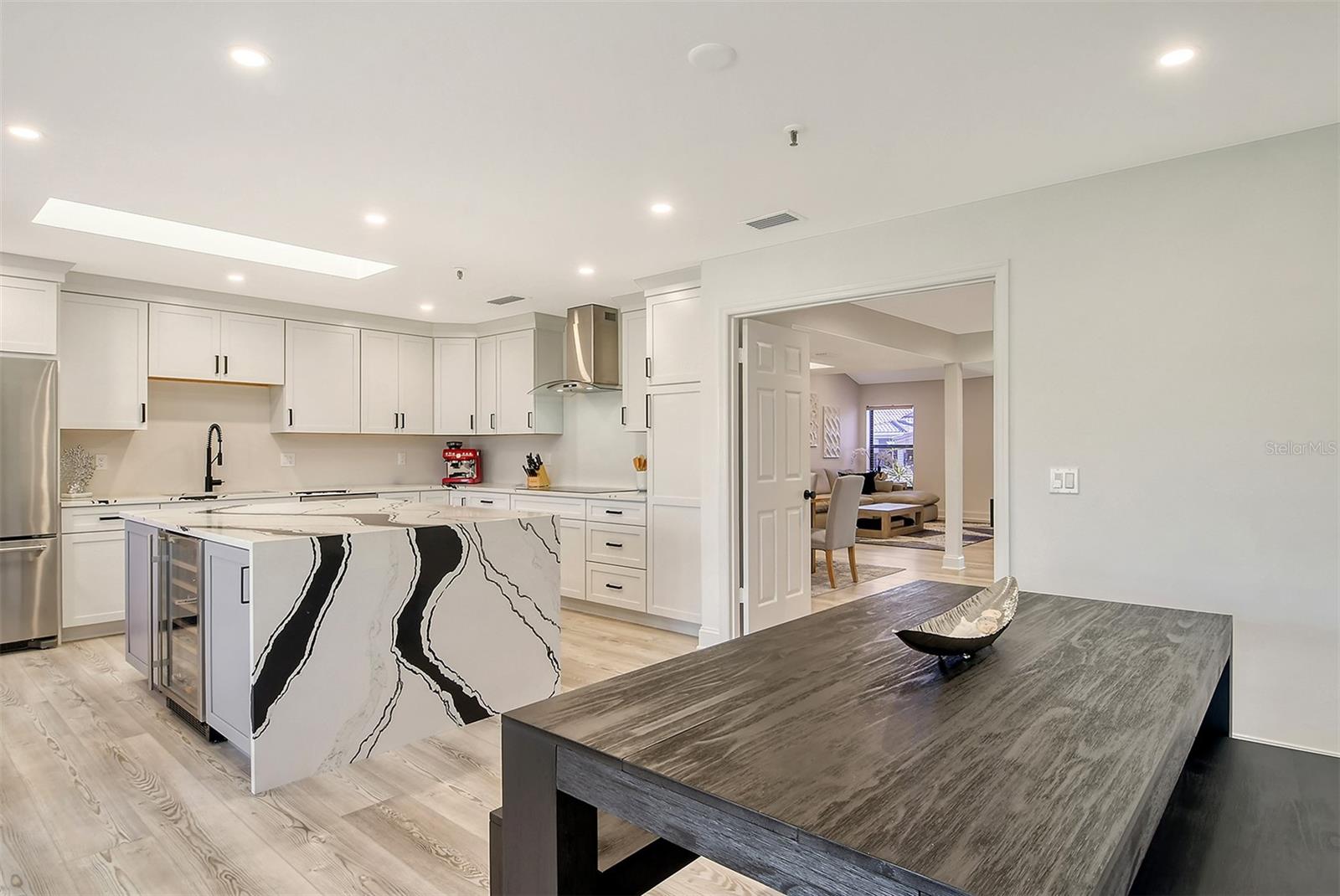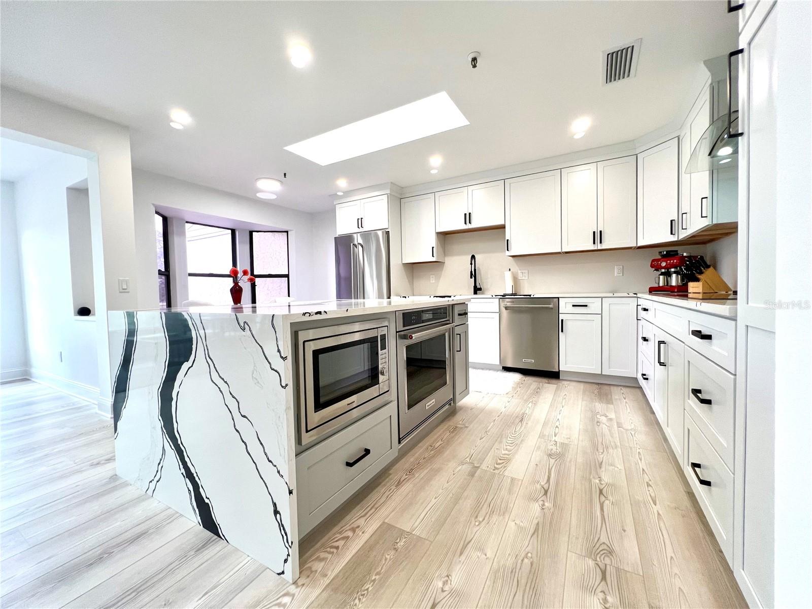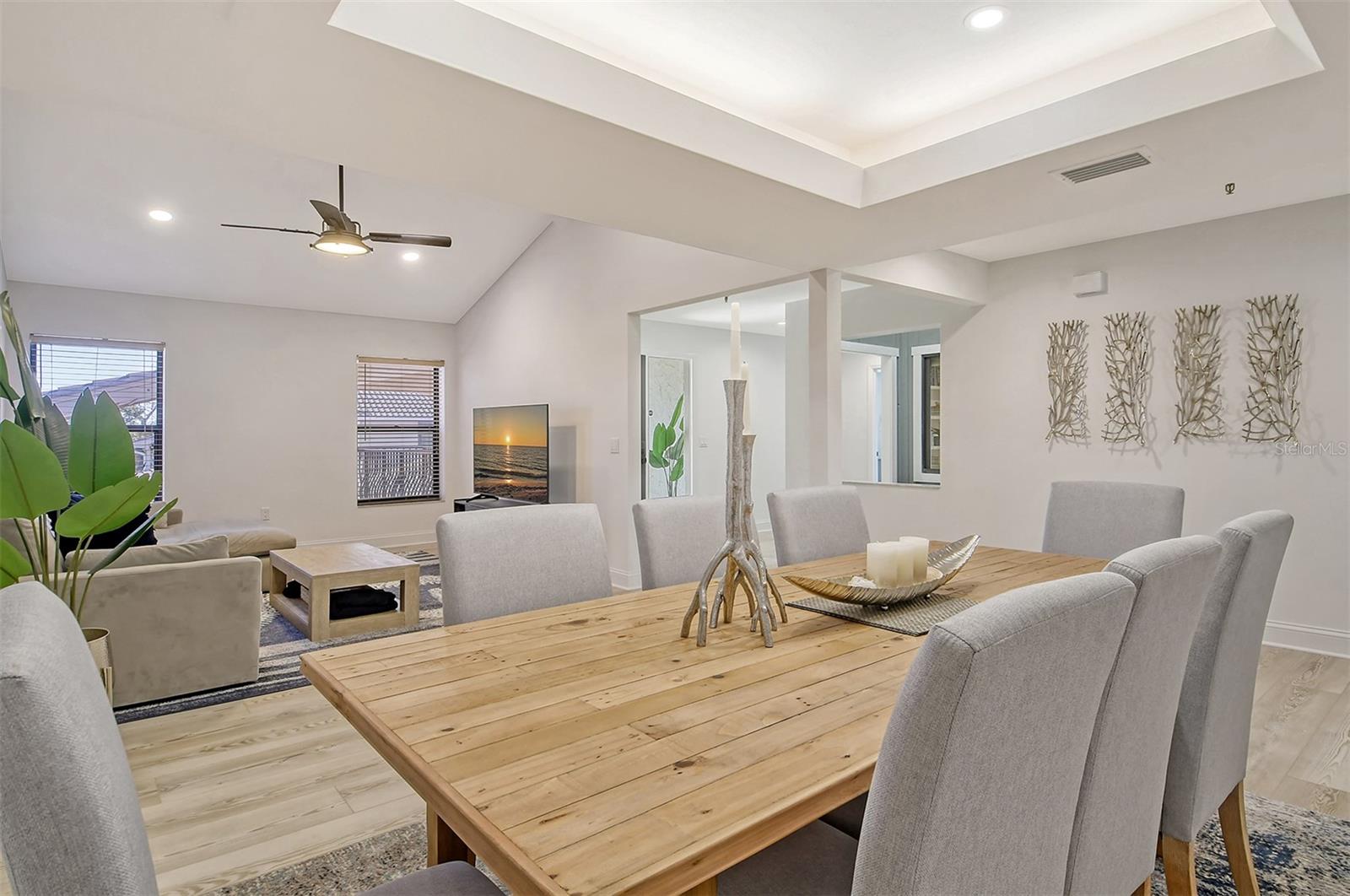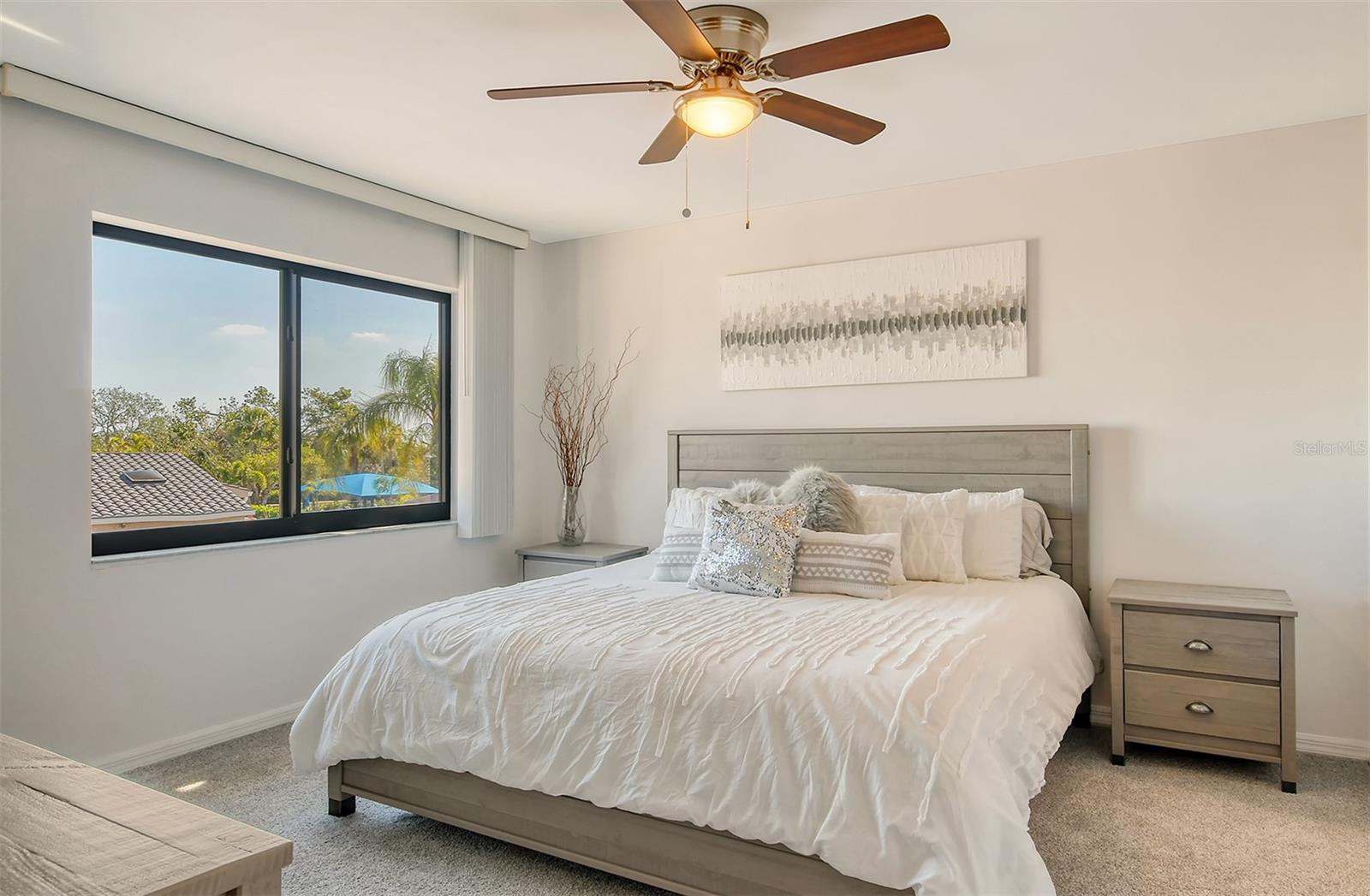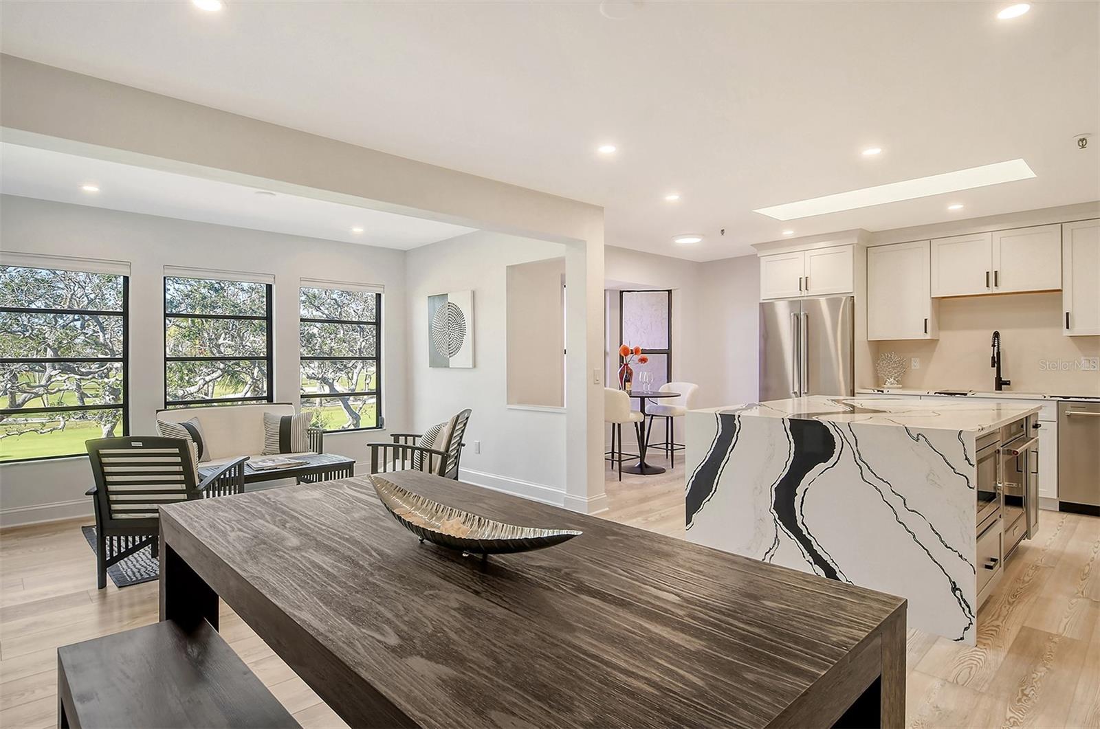 Located in the highly sought-after Harbour Oaks community on Longboat Key, this beautifully renovated second-floor condominium offers an unparalleled living experience. Enjoy breathtaking, unrestricted views of the lush golf course and serene pond right from your home. As part of the Bay Isles Homeowners Association, residents benefit from a secure, gated community with 24-hour security and easy access to the exclusive private beach club. This immaculate, turnkey furnished residence features 2,000+/- square feet of well-designed living space, including a spacious primary suite, two guest bedrooms, and two luxurious full baths. High-end finishes, including vinyl flooring and recessed lighting, flow seamlessly throughout the light-filled living areas, while plush carpeting provides a cozy feel in the private bedrooms. The designer eat-in kitchen is a chef’s dream, boasting KitchenAid stainless steel appliances, quartz countertops, a 36-inch induction stovetop, a 4-in-1 multi-oven, a wine fridge, and an oversized island with a stunning waterfall edge and built-in garbage disposal. The formal dining room opens to a generous living room, perfect for both relaxing and entertaining. A screened-in porch accessible from both the primary suite and the kitchen allows you to enjoy the peaceful surroundings. For added convenience, the laundry room is equipped with a new washer and dryer, along with custom built-in cabinetry. Large windows throughout the home flood the space with natural light, creating a bright and uplifting atmosphere. Recent upgrades to the community include new roofs and siding (completed in 2024), with the seller covering the assessment. A two-car garage completes this exceptional home. Perfectly situated near the Moorings Marina, the luxurious new St. Regis Resort with world-class dining and beachside bars, and just moments from the Publix shopping center, this home offers the ultimate Florida lifestyle with easy access to all the best amenities.