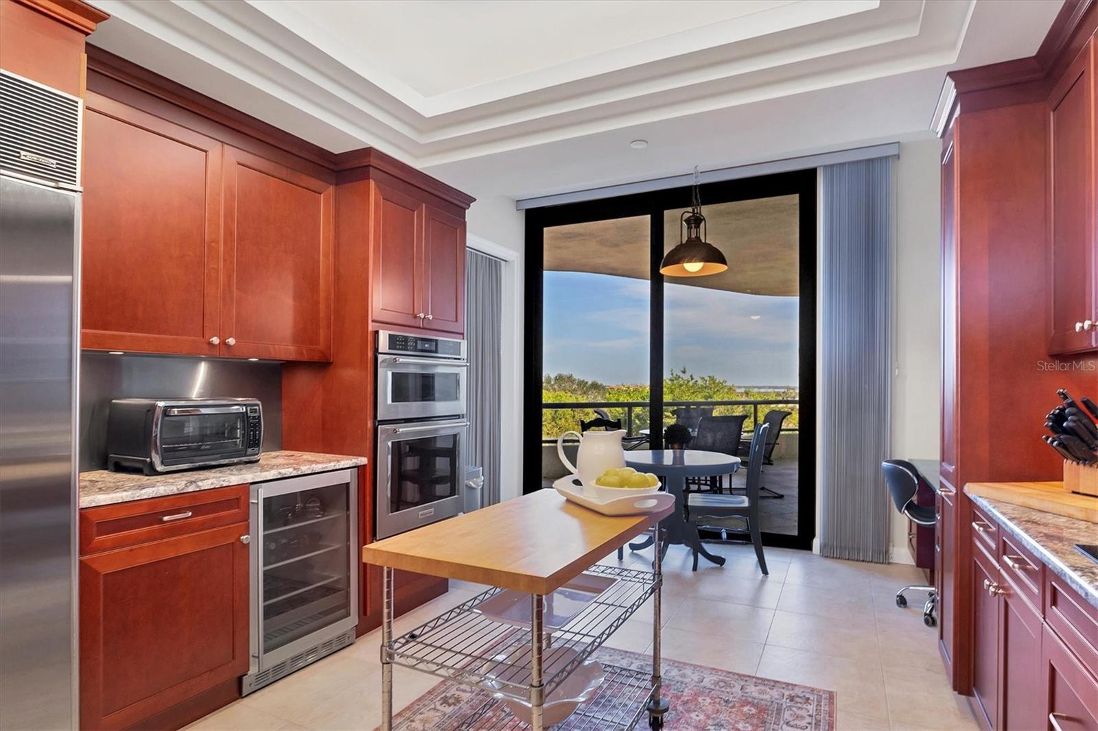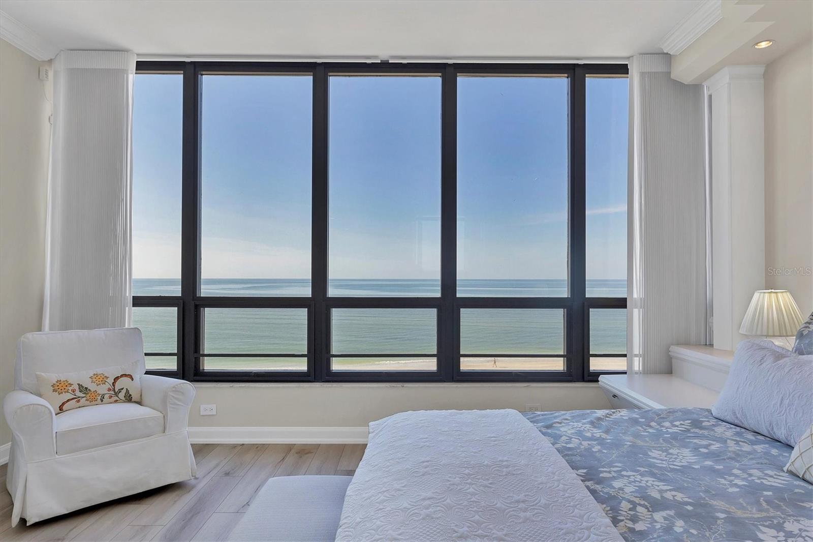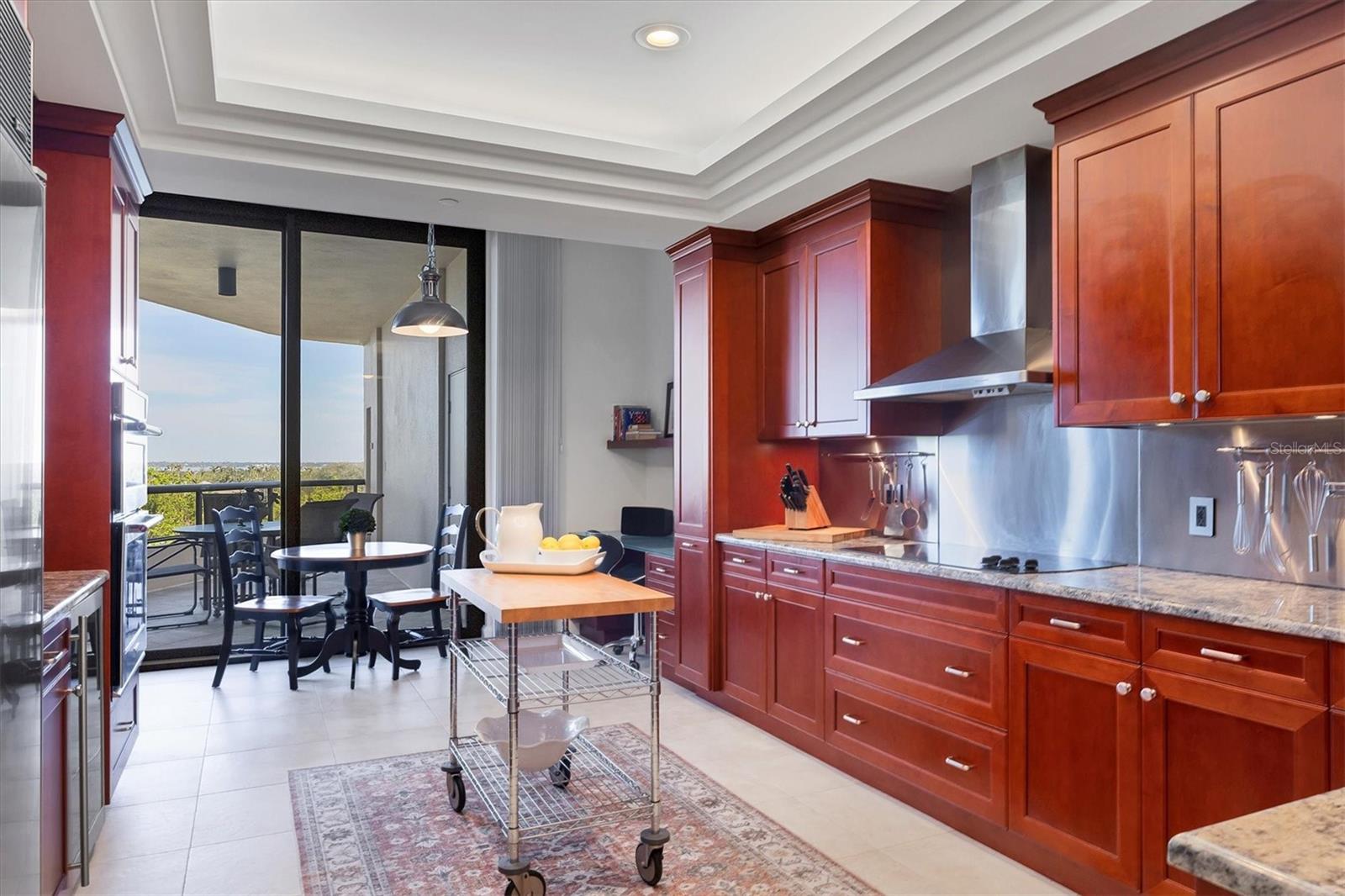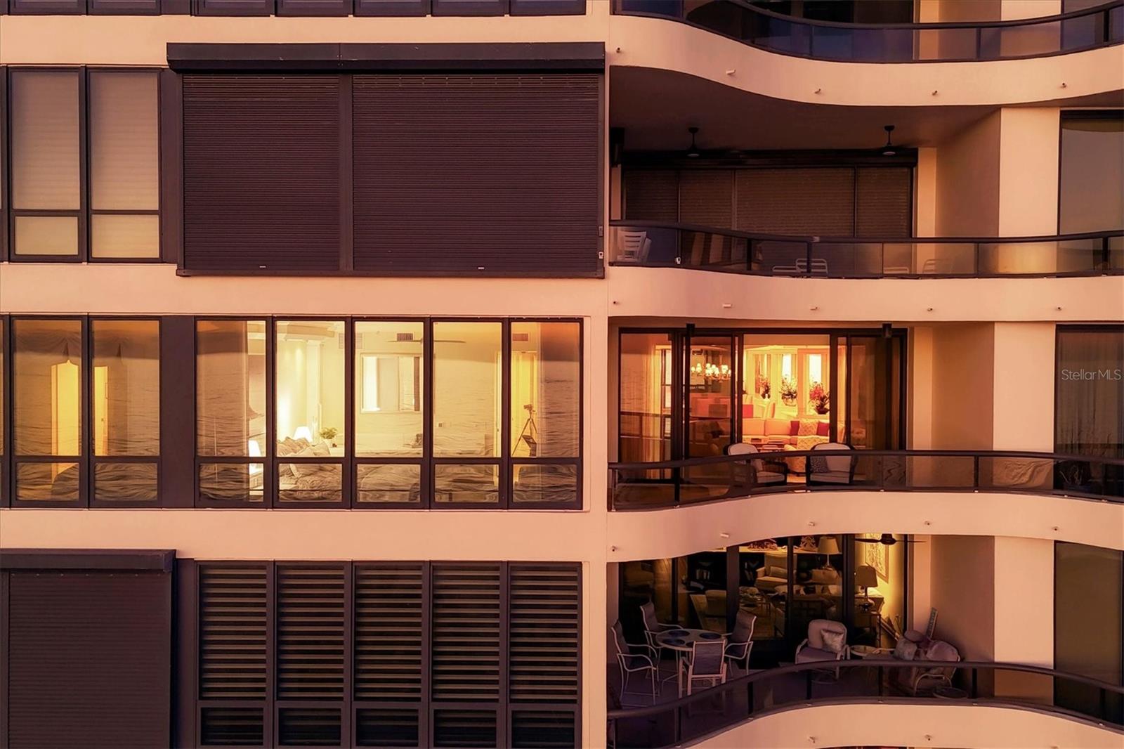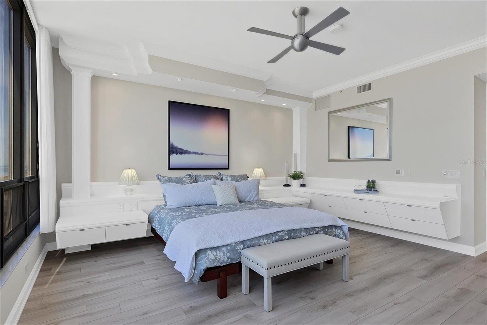 Behind the double-gated security of the Longboat Key Club, this fourth-floor residence in the iconic L’Ambiance condominium offers an unmatched blend of luxury, privacy and breathtaking Gulf of Mexico views. Spanning two bedrooms, 2.5 baths and a versatile den, this turnkey-furnished residence opens with a private elevator entrance leading to an elegant foyer and grand double doors. The spacious living room features a built-in media and entertainment center, art niches with lighting, and a wall of impact glass sliders that open to a gulf-facing terrace, ideal for taking in dramatic sunsets. The chef’s kitchen is functional and stylish, featuring granite countertops, a stainless-steel backsplash, abundant cabinetry with pull-out shelves and soft-close drawers, a custom pantry and high-end appliances, including a Sub-Zero refrigerator and KitchenAid suite. A casual dining nook and bay-facing window add to the charm. The private den includes a built-in media center, sliders with remote-controlled blinds, and access to a terrace with Sarasota Bay and skyline views. Porcelain floors grace the main living areas, while remote-controlled blinds throughout complement the abundance of natural light and stunning vistas. The primary suite boasts luxury vinyl plank flooring, a custom-organized walk-in closet with a safe, dual spacious wall closets, and access to a spa-like en suite with dual vanities, stone countertops and a shared glass shower. A generously appointed guest suite offers an en-suite bath with a tub and shower, plantation-shuttered windows, balcony access and a wall closet. Additional conveniences include a laundry room with storage, a sink, and new large-capacity GE washer and dryer. This immaculate residence is move-in ready, having been freshly painted and upgraded with Wi-Fi access points throughout the condominium, four TVs with Sonos sound systems, Wi-Fi enabled thermostats, a new water heater and updated HVAC systems. L’Ambiance spans 20 lush, tropical acres and offers world-class amenities, including a gulf side pool and spa, two lighted Har-Tru tennis courts, a fitness center, a sauna and steam room, and two card rooms. Two assigned parking spaces, a storage locker and a wine locker complete this extraordinary offering, just minutes from St. Armands Circle and Longboat Key Club amenities.