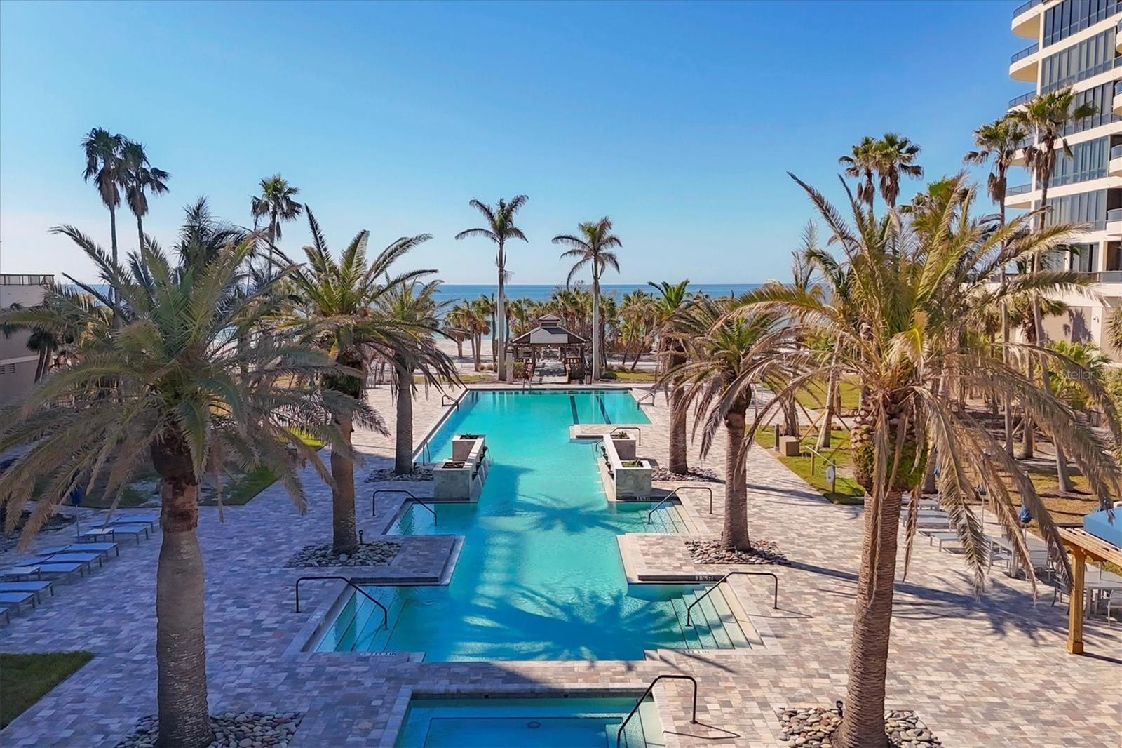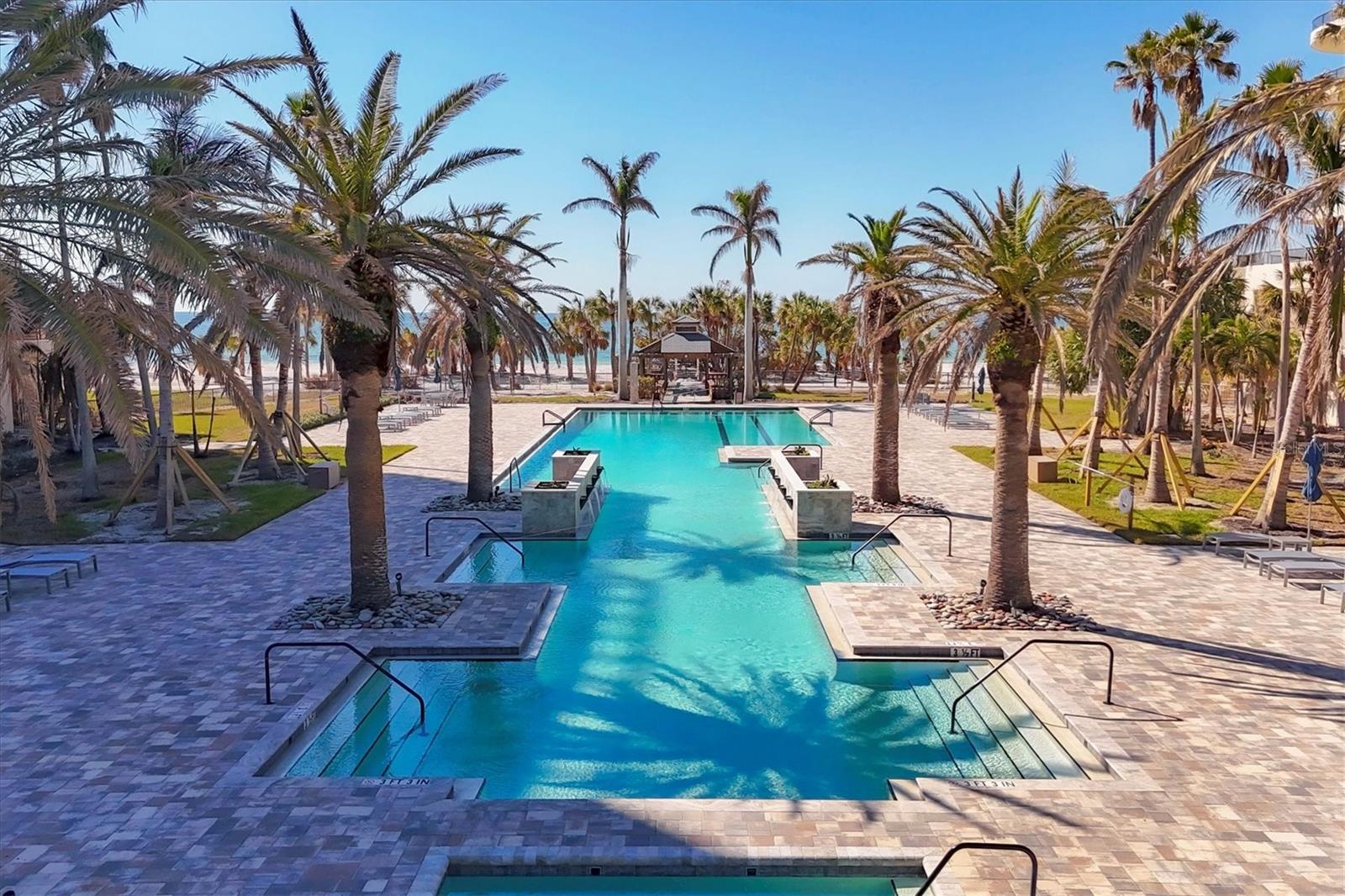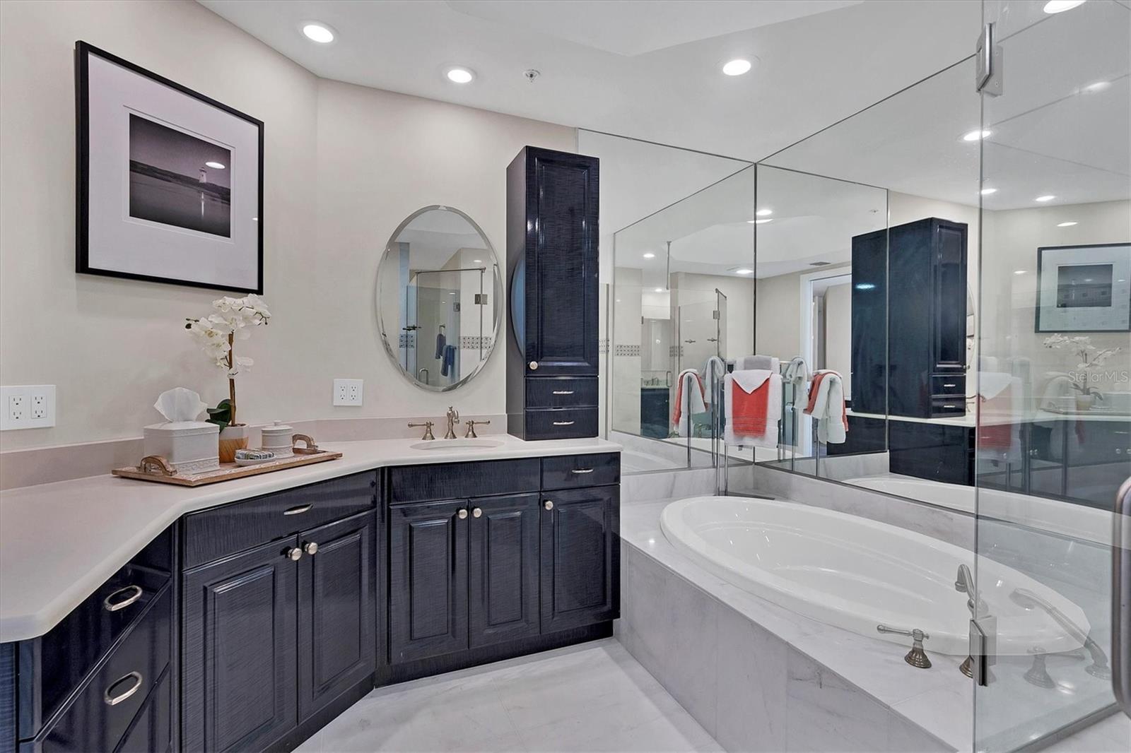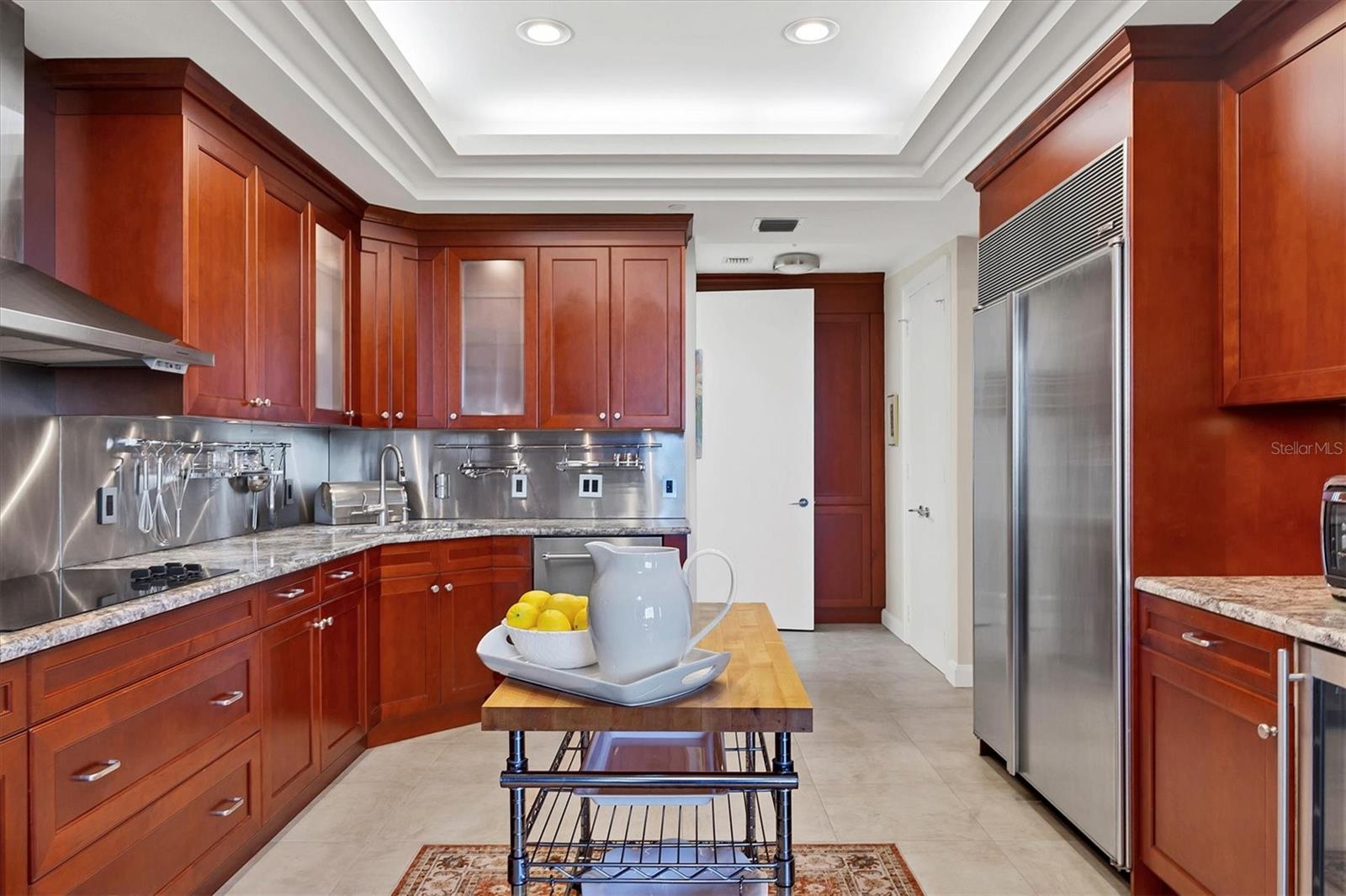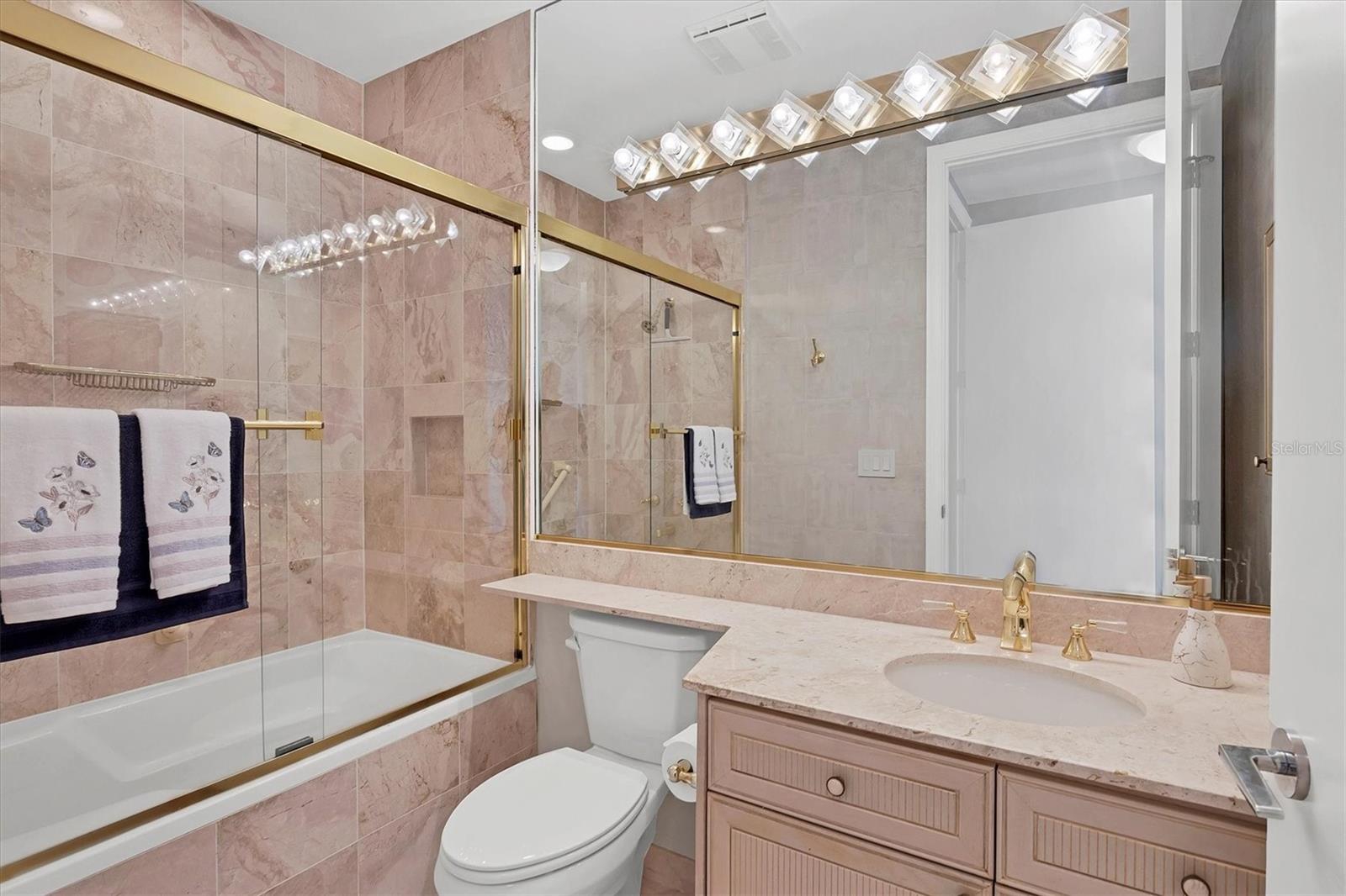 Behind the double-gated security of the Longboat Key Club, this fourth-floor residence in the iconic L’Ambiance condominium offers an unmatched blend of luxury, privacy and breathtaking Gulf of Mexico views. Spanning two bedrooms, 2.5 baths and a versatile den, this turnkey-furnished residence opens with a private elevator entrance leading to an elegant foyer and grand double doors. The spacious living room features a built-in media and entertainment center, art niches with lighting, and a wall of impact glass sliders that open to a gulf-facing terrace, ideal for taking in dramatic sunsets. The chef’s kitchen is functional and stylish, featuring granite countertops, a stainless-steel backsplash, abundant cabinetry with pull-out shelves and soft-close drawers, a custom pantry and high-end appliances, including a Sub-Zero refrigerator and KitchenAid suite. A casual dining nook and bay-facing window add to the charm. The private den includes a built-in media center, sliders with remote-controlled blinds, and access to a terrace with Sarasota Bay and skyline views. Porcelain floors grace the main living areas, while remote-controlled blinds throughout complement the abundance of natural light and stunning vistas. The primary suite boasts luxury vinyl plank flooring, a custom-organized walk-in closet with a safe, dual spacious wall closets, and access to a spa-like en suite with dual vanities, stone countertops and a shared glass shower. A generously appointed guest suite offers an en-suite bath with a tub and shower, plantation-shuttered windows, balcony access and a wall closet. Additional conveniences include a laundry room with storage, a sink, and new large-capacity GE washer and dryer. This immaculate residence is move-in ready, having been freshly painted and upgraded with Wi-Fi access points throughout the condominium, four TVs with Sonos sound systems, Wi-Fi enabled thermostats, a new water heater and updated HVAC systems. L’Ambiance spans 20 lush, tropical acres and offers world-class amenities, including a gulf side pool and spa, two lighted Har-Tru tennis courts, a fitness center, a sauna and steam room, and two card rooms. Two assigned parking spaces, a storage locker and a wine locker complete this extraordinary offering, just minutes from St. Armands Circle and Longboat Key Club amenities.