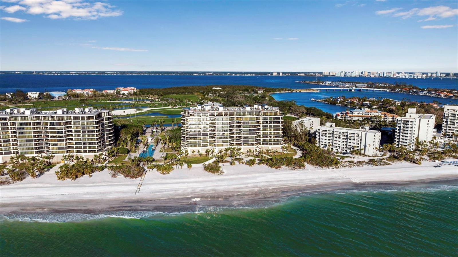 Welcome to L’Ambiance — a Crown of Coastal Elegance and the epitome of refined luxury living! Discover the true essence of a sophisticated coastal lifestyle at L’Ambiance, where every detail has been meticulously curated to offer unparalleled elegance, comfort, and breathtaking beauty. Nestled just moments from the prestigious Longboat Key Club, residents enjoy access to 45 holes of championship golf, world-class tennis, exquisite dining, a rejuvenating spa, and the second-largest marina on Florida’s west coast. This extraordinary residence is a masterpiece of architectural brilliance and contemporary design, thoughtfully and recently updated to perfection. Step inside and be captivated by sweeping panoramic vistas that stretch from the shimmering waters of the Gulf of Mexico to Sarasota Bay and the vibrant downtown skyline. These awe-inspiring views set the perfect backdrop for a lifestyle of effortless sophistication and tranquility. Your journey begins with a private elevator that opens directly into a stunning updated home, including windows and sliding glass doors to the latest hurricane code. Enjoy a 3,380 sq. ft. sanctuary, where light floods through expansive floor-to-ceiling glass sliders, illuminating an open-concept living and dining area that seamlessly combines style with functionality. Designed for entertaining and everyday living alike, the sleek interiors feature a chef-inspired kitchen with a captivating waterfall-edge island—truly the heart of the home and a testament to culinary artistry.The residence boasts three generously sized bedrooms en-suite, thoughtfully positioned in a split layout to ensure maximum privacy and serenity. The primary suite is a private retreat flooded with natural light and features sliding glass doors that open onto a spacious terrace. Here, you can enjoy your morning coffee while soaking in stunning vistas of the city skyline, the Gulf of Mexico, and Sarasota Bay. The en-suite primary bathroom is a spa-like sanctuary, offering an indulgent escape with luxurious finishes and fixtures. Step outside onto expansive terraces, where the gentle Gulf-to-Bay breezes and spectacular Sarasota sunsets create a magical outdoor living experience. Each room seamlessly connects to these outdoor spaces, providing the perfect setting for entertaining guests or unwinding in serene beauty. A versatile bonus room wing offers additional space for children or a private retreat. L’Ambiance offers unrivaled amenities designed to elevate every aspect of luxury living. Residents enjoy a 24-hour manned gated community, concierge service, security, an on-site manager, a resort-style heated Olympic-size pool and spa, a state-of-the-art fitness center, outdoor BBQ areas, three social rooms, high-speed internet, and three overflow guest suites available on a first-come, first-served basis. Two upper-level under-building parking spaces and storage. This pet-friendly community is dedicated to making every detail perfect, delivering a lifestyle that is as effortless as it is extraordinary. Experience the pinnacle of coastal elegance at L’Ambiance — where luxury, comfort, and breathtaking beauty converge.