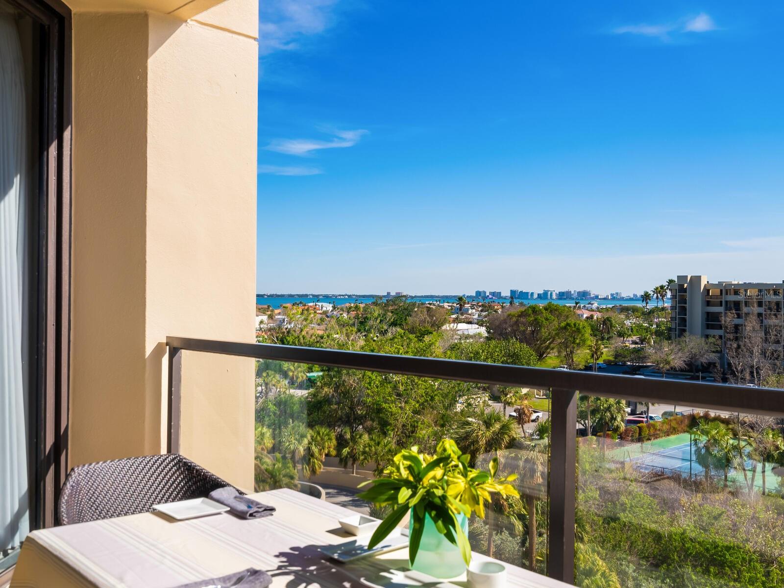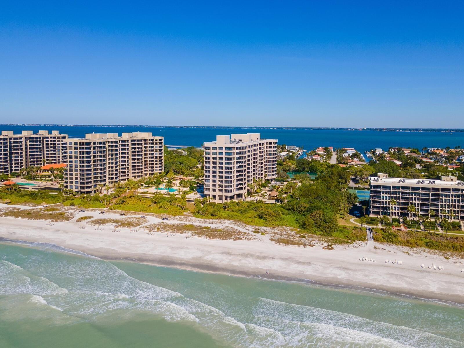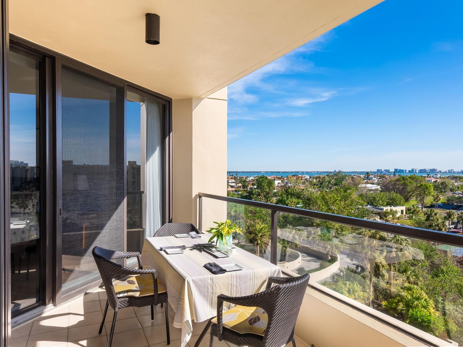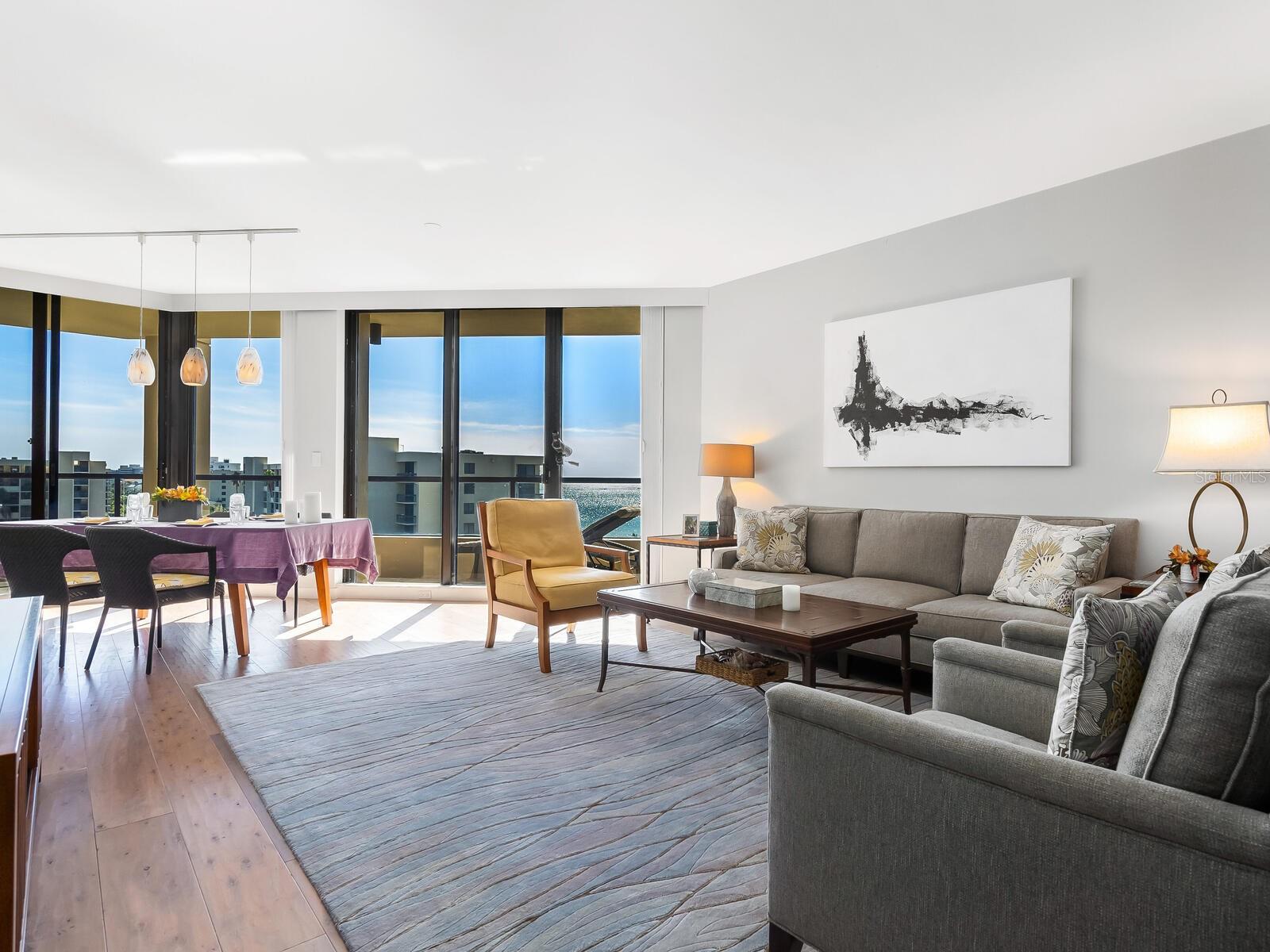 Refined Coastal Elegance with Breathtaking Views Experience effortless luxury in this comfortable residence at the Promenade on Longboat Key, offering panoramic vistas of the Gulf of Mexico, Sarasota Bay, and the city skyline. Thoughtfully designed for both comfort and style, this home is partially furnished, allowing for an easy transition into one of the area’s most coveted beachfront addresses. Beautiful wood flooring set over a cork underlayer provides both warmth and quiet refinement throughout. The completely renovated kitchen features custom wood cabinetry, quartz countertops, high-end appliances, and modern lighting, seamlessly flowing into the open-concept living and dining areas—ideal for today’s contemporary lifestyle. Residents of the Promenade enjoy an unparalleled living experience, complete with on-site management, a full-service concierge available seven days a week, a secure lobby, and under-building parking for both owners and guests. A recent, extensive refurbishment of the lobby, hallways, social rooms, and outdoor decking has further elevated this already distinguished community. With world-class amenities, resort-style services, and a coveted southern exposure, this exceptional home offers an unparalleled coastal retreat.