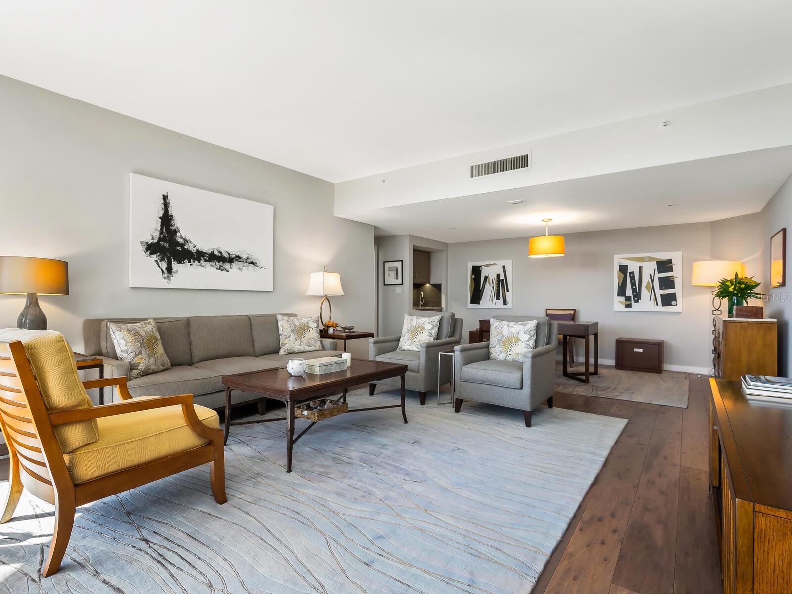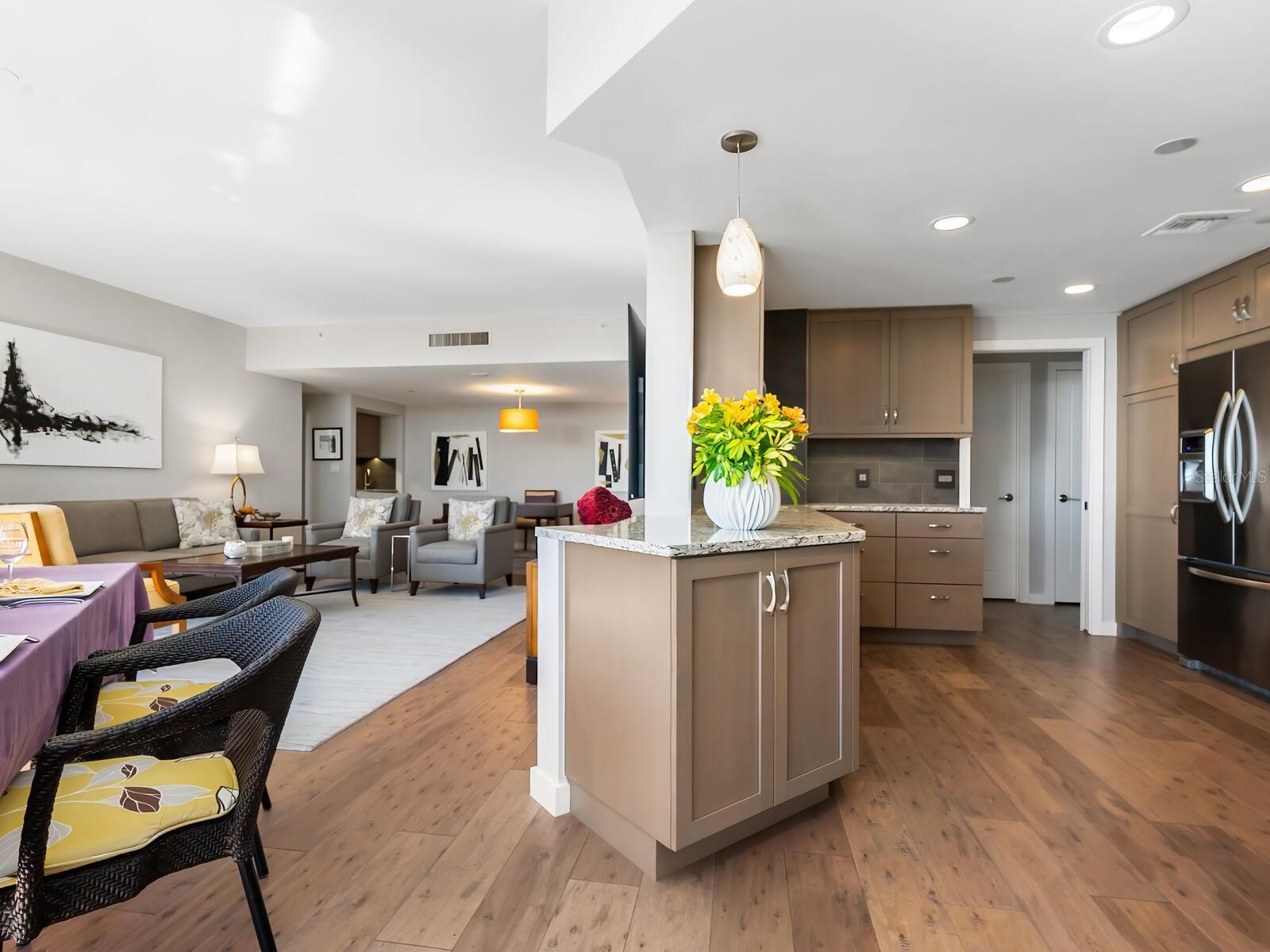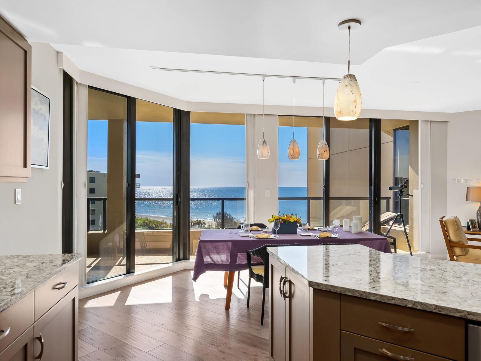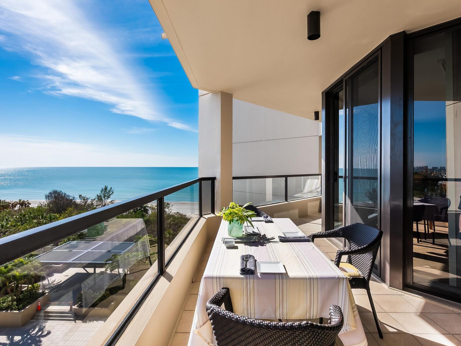 Refined Coastal Elegance with Breathtaking Views Experience effortless luxury in this comfortable residence at the Promenade on Longboat Key, offering panoramic vistas of the Gulf of Mexico, Sarasota Bay, and the city skyline. Thoughtfully designed for both comfort and style, this home is partially furnished, allowing for an easy transition into one of the area’s most coveted beachfront addresses. Beautiful wood flooring set over a cork underlayer provides both warmth and quiet refinement throughout. The completely renovated kitchen features custom wood cabinetry, quartz countertops, high-end appliances, and modern lighting, seamlessly flowing into the open-concept living and dining areas—ideal for today’s contemporary lifestyle. Residents of the Promenade enjoy an unparalleled living experience, complete with on-site management, a full-service concierge available seven days a week, a secure lobby, and under-building parking for both owners and guests. A recent, extensive refurbishment of the lobby, hallways, social rooms, and outdoor decking has further elevated this already distinguished community. With world-class amenities, resort-style services, and a coveted southern exposure, this exceptional home offers an unparalleled coastal retreat.