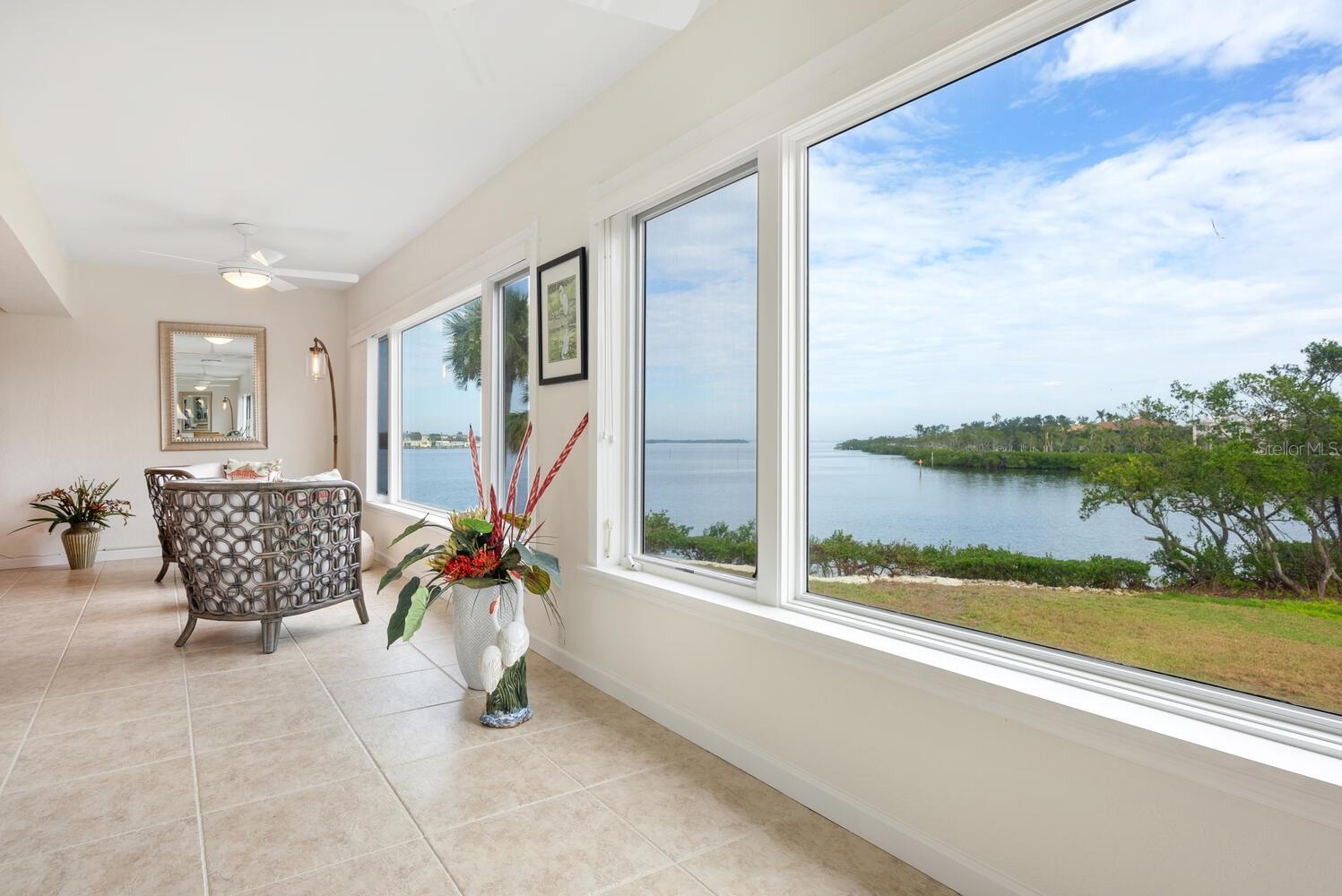 Beach, Bay & Boating! This beautifully renovated condo offers breathtaking views of the serene waters of Cranes Bayou and the Intercoastal. Thoughtfully designed for both comfort and style, the kitchen features a peninsula dining table, allowing guests to join in the culinary experience. High-end finishes, including solid maple cabinetry with dovetail drawers, quartz countertops and backsplash, recessed lighting, and built-in wine storage, showcase exceptional craftsmanship. The spa-like bathrooms boast floor-to-ceiling tile, frameless glass shower enclosures, shower niches, elegant vanities with stone countertops, and backlit mirrors. Generously sized rooms provide ample closet space, ensuring both luxury and practicality. From the Florida Room, take in stunning views of dolphins gliding through the bayou, an eagle perched in its nest, or the sun rising over the horizon. Ideal for water enthusiasts, the community offers boat docks, kayak storage, a launch for jet skis, paddleboards, and kayaks, as well as deeded beach access just across the street. Additional updates include a brand-new hot water heater (12/24), a newer A/C system (2018), and updated plumbing. An incredible value under a million!