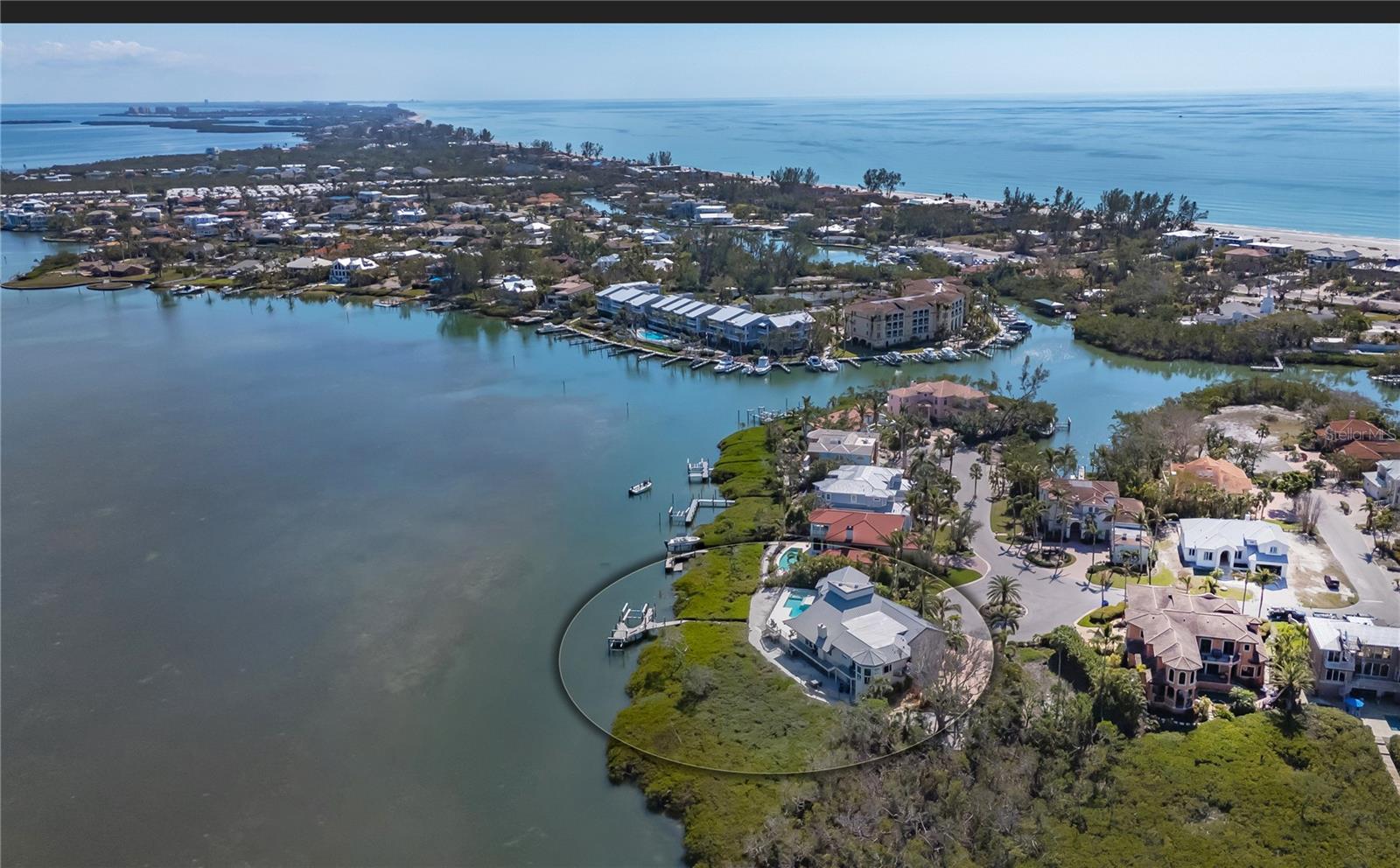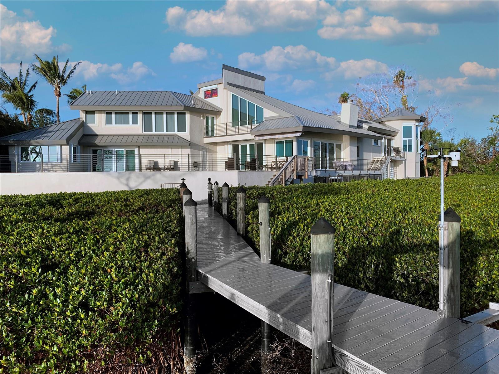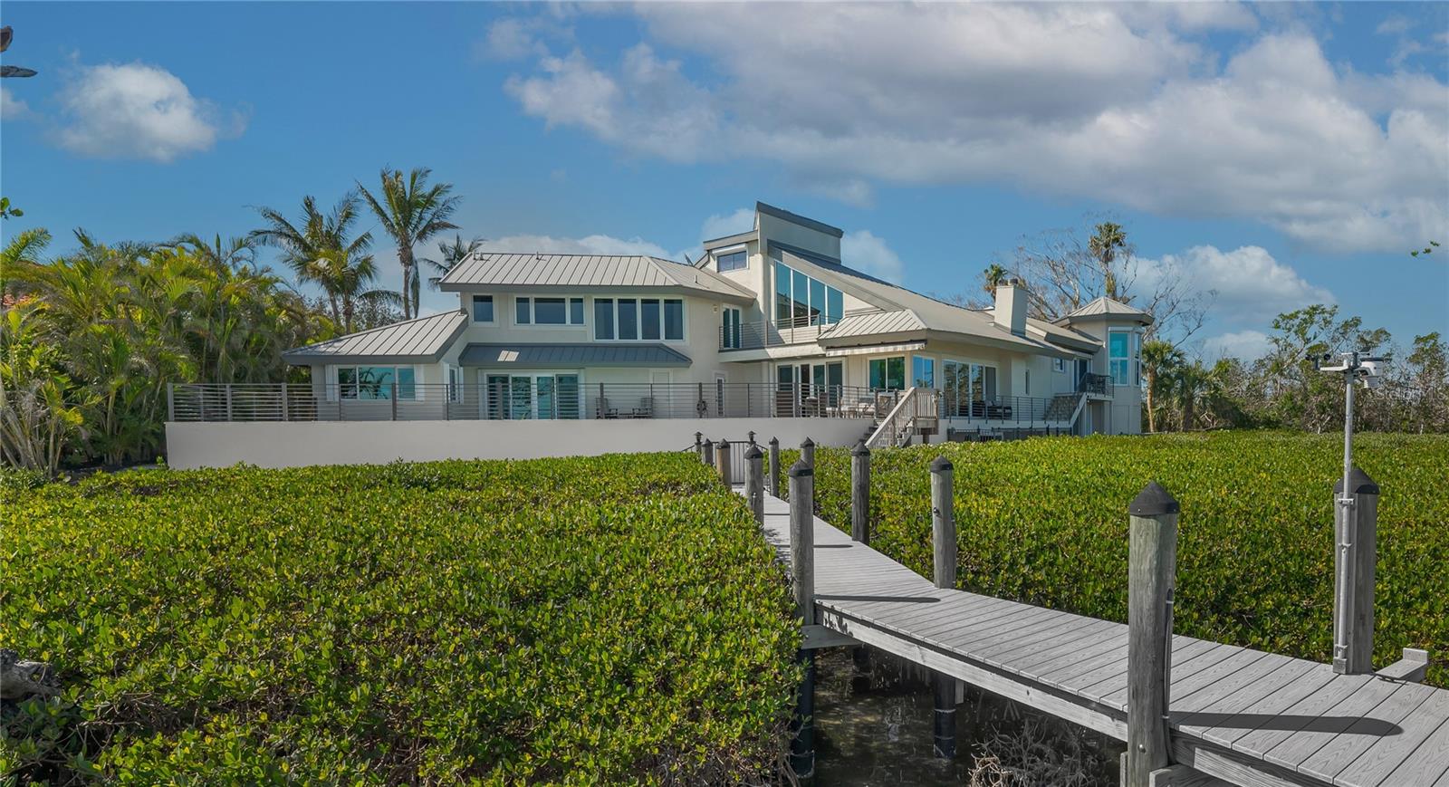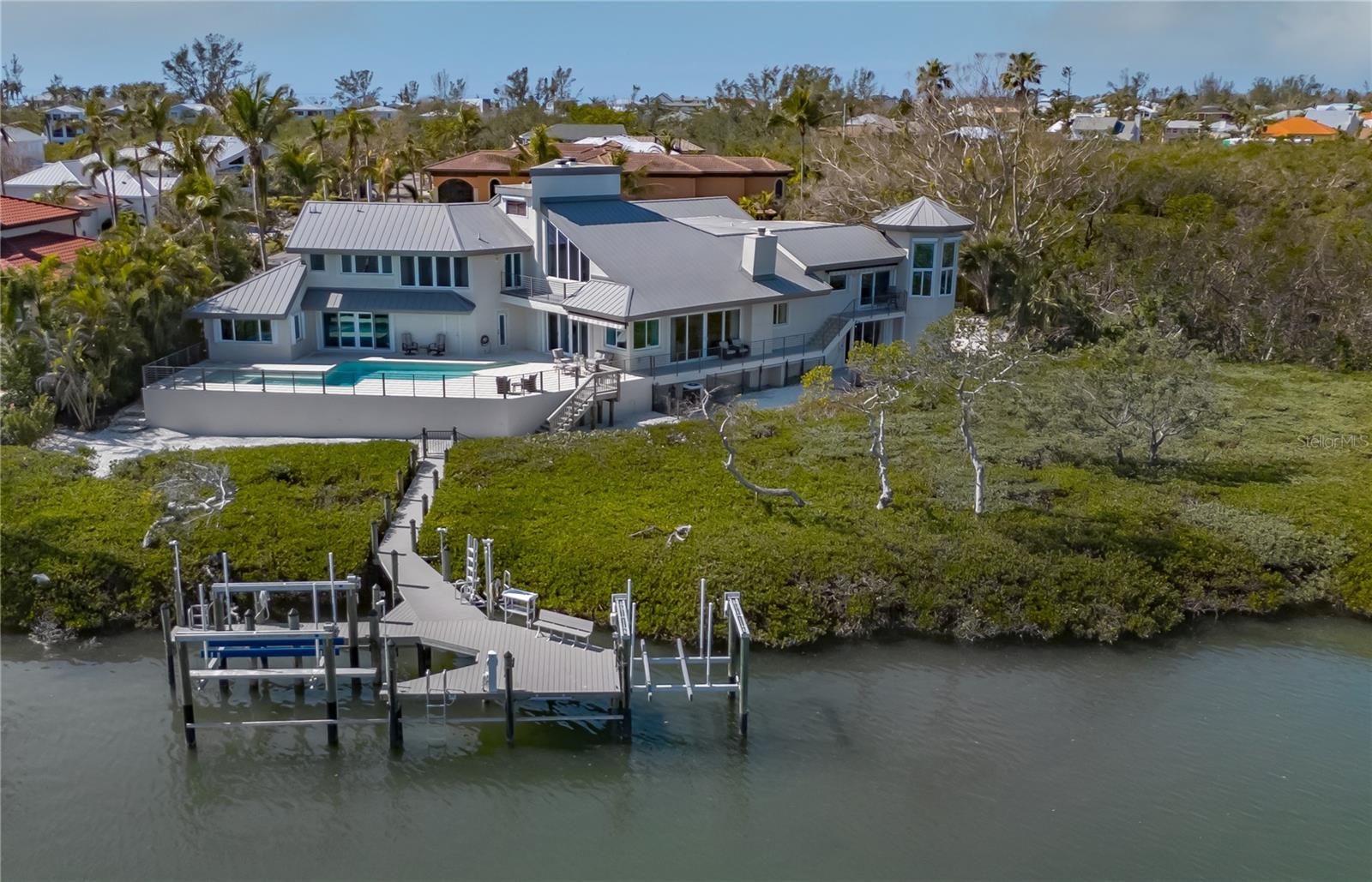 SOPHISTICATED WATERFRONT LIVING ON SARASOTA BAY-- POSTMODERN GEM Experience sophisticated waterfront living in this postmodern 5,424 square foot architectural gem situated on an .834 acre lot. Perfectly positioned on this generous and private parcel, the estate boasts 275 feet of Sarasota Bay waterfront. The split-level home is surrounded by mature tropical landscaping with Azek composite decks on each level, a shaded garden-level seating area, and a hot tub composite deck. The soaring ceilings and expansive impact windows provide abundant natural light, bringing the outside in, and providing unobstructed views of the Bay throughout the house. The interior provides an inviting open floor plan, along with generous private spaces. Entering the home through the large foyer, you are greeted with 180 degree Bay views, which continue as you move into the living and dining rooms. On the next level, you will find a spacious chef’s kitchen with guest seating, breakfast area, and deck, all with full views of the Bay. A family room and private guest wing is located on this level, with 2 bedrooms each with ensuite baths. The home has two master suites, each with private decks and full Bay views. Overall, this home provides the perfect environment for entertaining or for finding serenity and solitude with nature and abundant wildlife. The ground level includes a 3-car garage, a separate storage room with garage doors allowing access for a 4th car and golf cart, and a separate 900 square foot workshop and exercise space which could also be used as a game/hobby area. Outside, enjoy the island waterfront lifestyle with an elevated 50-foot long refinished swimming pool and tile deck overlooking the newly designed and constructed (2018) Azek composite boat dock (Duncan Seawall). The deep water dock has two 4-piling boat lifts, a kayak lift, fish cleaning station, as well as a composite bench for viewing the many seasons of Sarasota Bay. Finally, and significantly, the property is located just blocks (5 minute walk) from one of Longboat Key’s 12 designated beach access points for early morning or sunset walks on the white sands of the Gulf. The boat dock is just a short ride by boat to the ICW and to Longboat Pass for quick access to the Gulf. In addition, the community has two private tennis courts for use by HOA members and their guests. This community of 18 custom homes is tucked away down a mangrove-lined winding road that delivers you to one of the most secluded and serene communities on Longboat Key. The current owners have invested over $1 million in upgrades since 2017, too numerous to include, but available upon request.