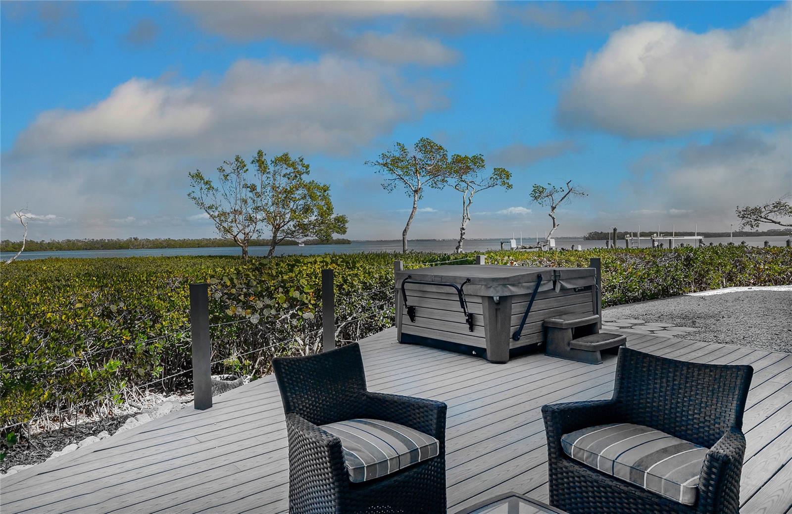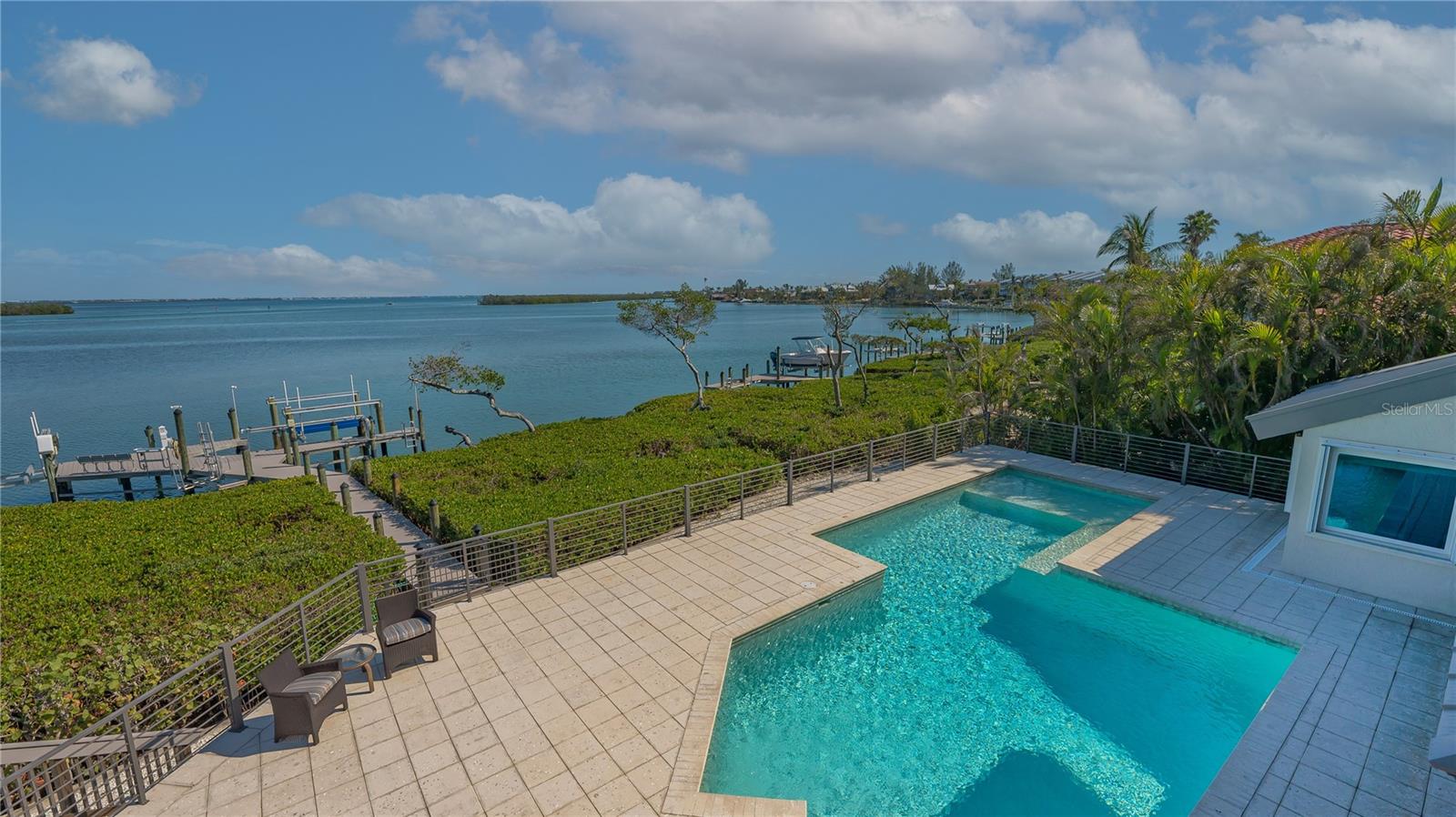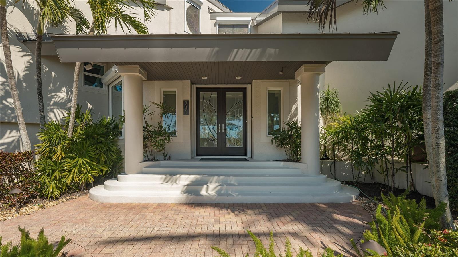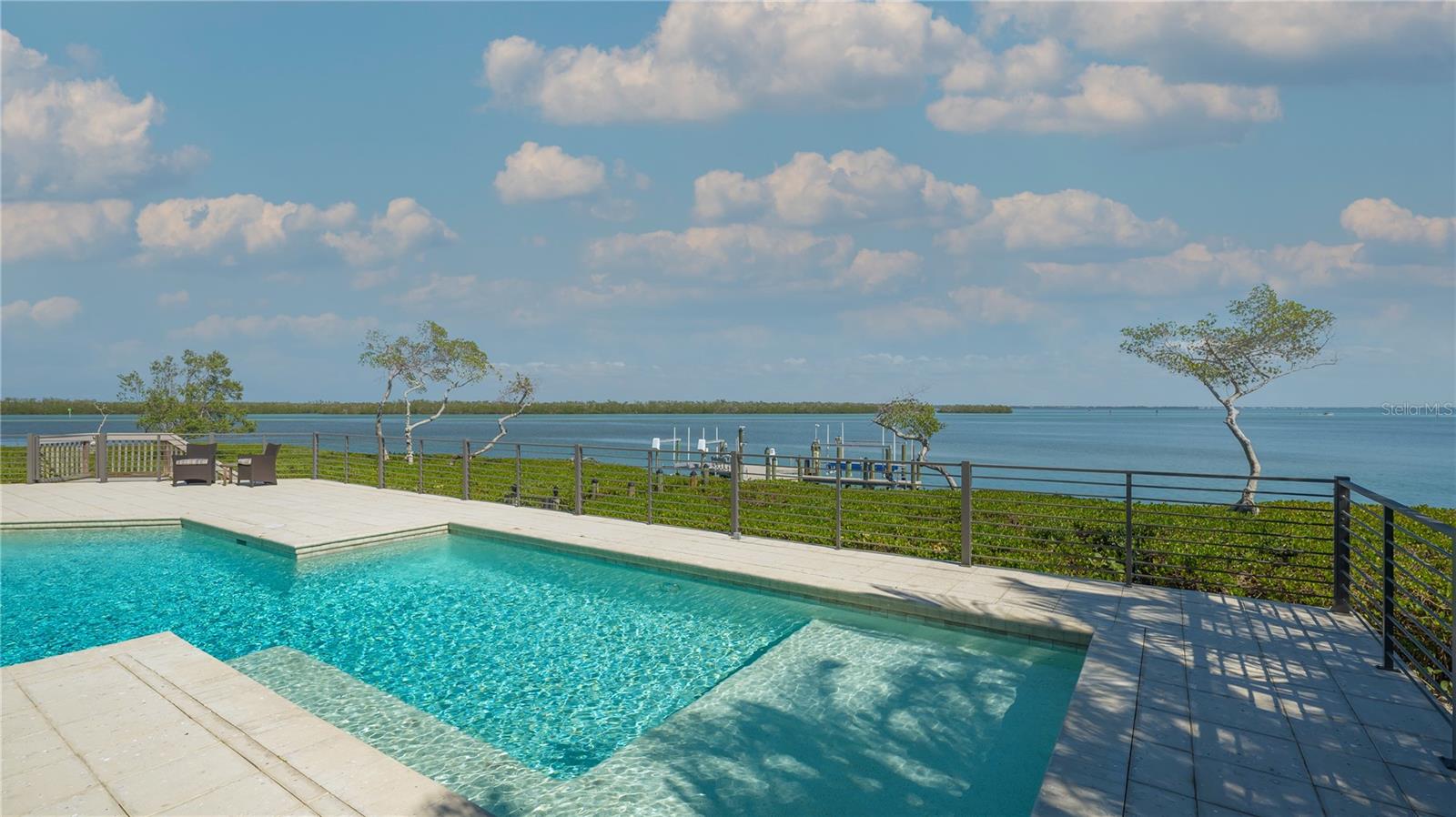 SOPHISTICATED WATERFRONT LIVING ON SARASOTA BAY-- POSTMODERN GEM Experience sophisticated waterfront living in this postmodern 5,424 square foot architectural gem situated on an .834 acre lot. Perfectly positioned on this generous and private parcel, the estate boasts 275 feet of Sarasota Bay waterfront. The split-level home is surrounded by mature tropical landscaping with Azek composite decks on each level, a shaded garden-level seating area, and a hot tub composite deck. The soaring ceilings and expansive impact windows provide abundant natural light, bringing the outside in, and providing unobstructed views of the Bay throughout the house. The interior provides an inviting open floor plan, along with generous private spaces. Entering the home through the large foyer, you are greeted with 180 degree Bay views, which continue as you move into the living and dining rooms. On the next level, you will find a spacious chef’s kitchen with guest seating, breakfast area, and deck, all with full views of the Bay. A family room and private guest wing is located on this level, with 2 bedrooms each with ensuite baths. The home has two master suites, each with private decks and full Bay views. Overall, this home provides the perfect environment for entertaining or for finding serenity and solitude with nature and abundant wildlife. The ground level includes a 3-car garage, a separate storage room with garage doors allowing access for a 4th car and golf cart, and a separate 900 square foot workshop and exercise space which could also be used as a game/hobby area. Outside, enjoy the island waterfront lifestyle with an elevated 50-foot long refinished swimming pool and tile deck overlooking the newly designed and constructed (2018) Azek composite boat dock (Duncan Seawall). The deep water dock has two 4-piling boat lifts, a kayak lift, fish cleaning station, as well as a composite bench for viewing the many seasons of Sarasota Bay. Finally, and significantly, the property is located just blocks (5 minute walk) from one of Longboat Key’s 12 designated beach access points for early morning or sunset walks on the white sands of the Gulf. The boat dock is just a short ride by boat to the ICW and to Longboat Pass for quick access to the Gulf. In addition, the community has two private tennis courts for use by HOA members and their guests. This community of 18 custom homes is tucked away down a mangrove-lined winding road that delivers you to one of the most secluded and serene communities on Longboat Key. The current owners have invested over $1 million in upgrades since 2017, too numerous to include, but available upon request.