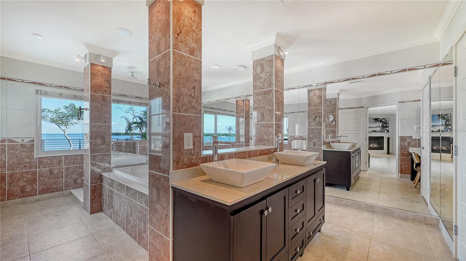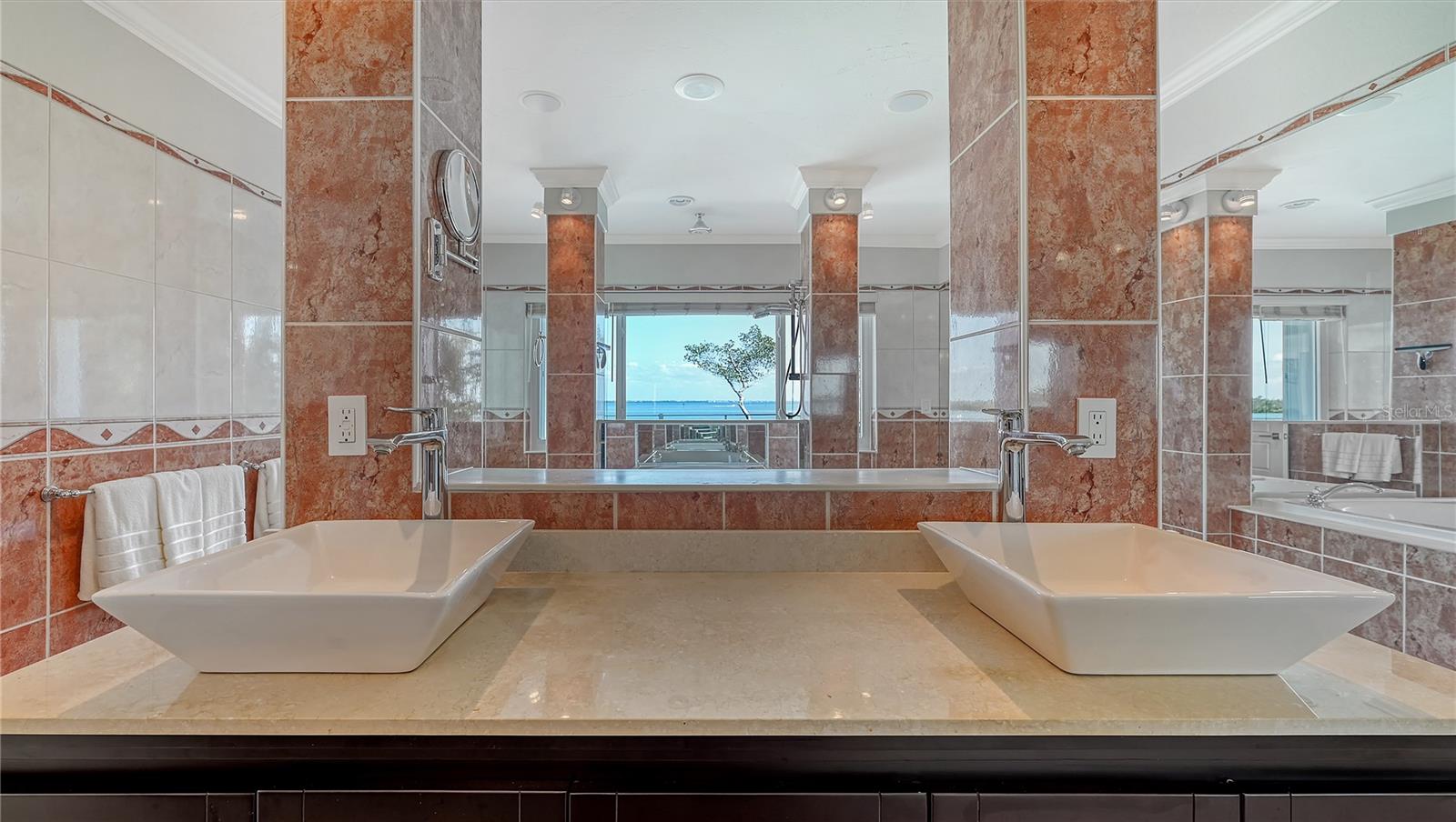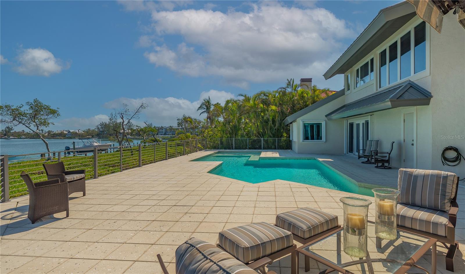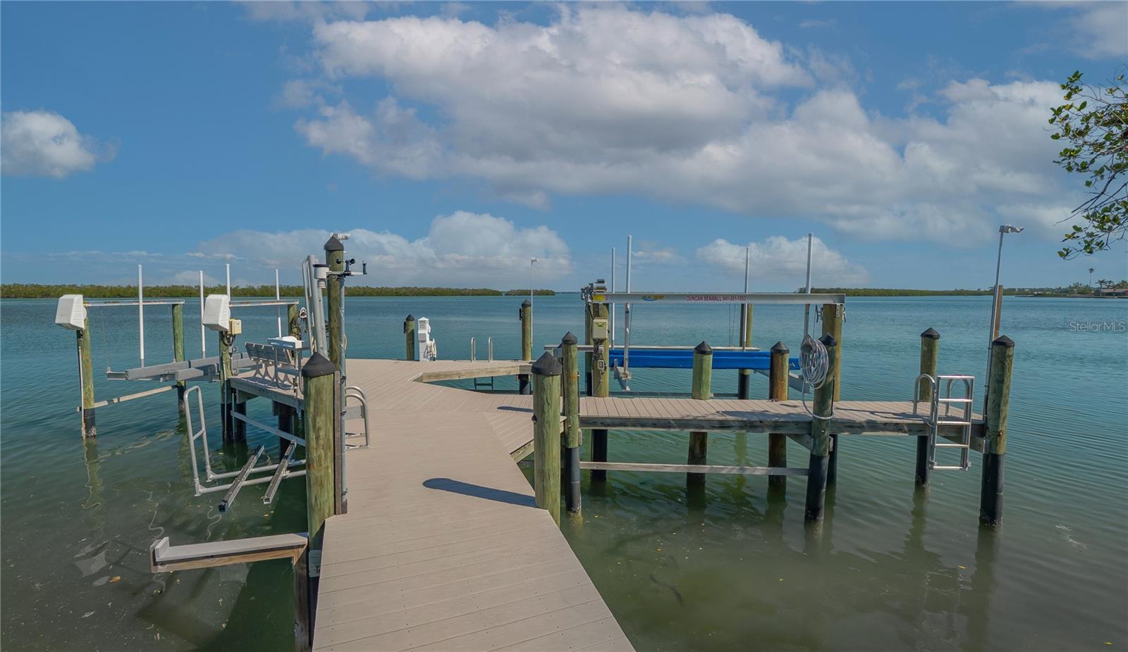 SOPHISTICATED WATERFRONT LIVING ON SARASOTA BAY-- POSTMODERN GEM Experience sophisticated waterfront living in this postmodern 5,424 square foot architectural gem situated on an .834 acre lot. Perfectly positioned on this generous and private parcel, the estate boasts 275 feet of Sarasota Bay waterfront. The split-level home is surrounded by mature tropical landscaping with Azek composite decks on each level, a shaded garden-level seating area, and a hot tub composite deck. The soaring ceilings and expansive impact windows provide abundant natural light, bringing the outside in, and providing unobstructed views of the Bay throughout the house. The interior provides an inviting open floor plan, along with generous private spaces. Entering the home through the large foyer, you are greeted with 180 degree Bay views, which continue as you move into the living and dining rooms. On the next level, you will find a spacious chef’s kitchen with guest seating, breakfast area, and deck, all with full views of the Bay. A family room and private guest wing is located on this level, with 2 bedrooms each with ensuite baths. The home has two master suites, each with private decks and full Bay views. Overall, this home provides the perfect environment for entertaining or for finding serenity and solitude with nature and abundant wildlife. The ground level includes a 3-car garage, a separate storage room with garage doors allowing access for a 4th car and golf cart, and a separate 900 square foot workshop and exercise space which could also be used as a game/hobby area. Outside, enjoy the island waterfront lifestyle with an elevated 50-foot long refinished swimming pool and tile deck overlooking the newly designed and constructed (2018) Azek composite boat dock (Duncan Seawall). The deep water dock has two 4-piling boat lifts, a kayak lift, fish cleaning station, as well as a composite bench for viewing the many seasons of Sarasota Bay. Finally, and significantly, the property is located just blocks (5 minute walk) from one of Longboat Key’s 12 designated beach access points for early morning or sunset walks on the white sands of the Gulf. The boat dock is just a short ride by boat to the ICW and to Longboat Pass for quick access to the Gulf. In addition, the community has two private tennis courts for use by HOA members and their guests. This community of 18 custom homes is tucked away down a mangrove-lined winding road that delivers you to one of the most secluded and serene communities on Longboat Key. The current owners have invested over $1 million in upgrades since 2017, too numerous to include, but available upon request.