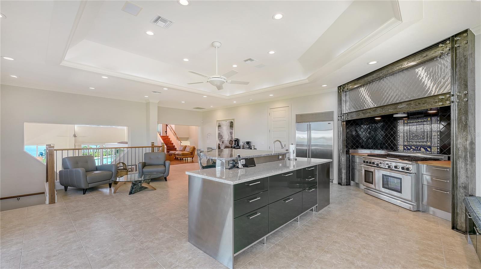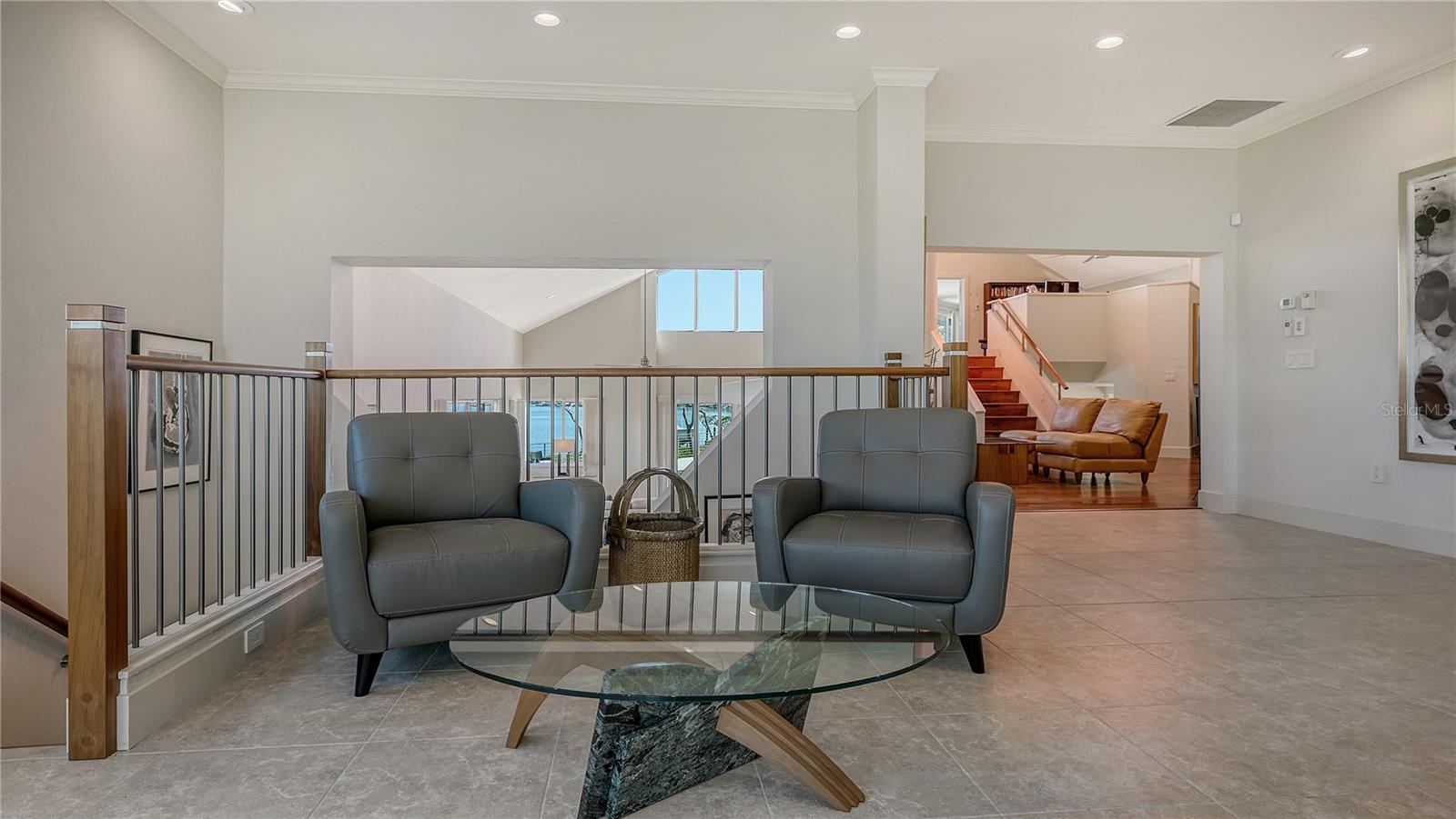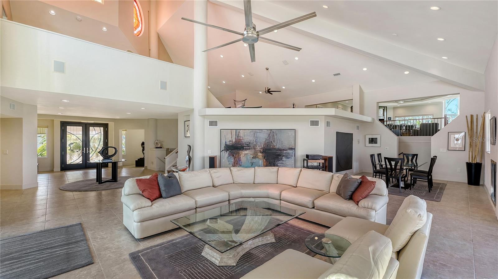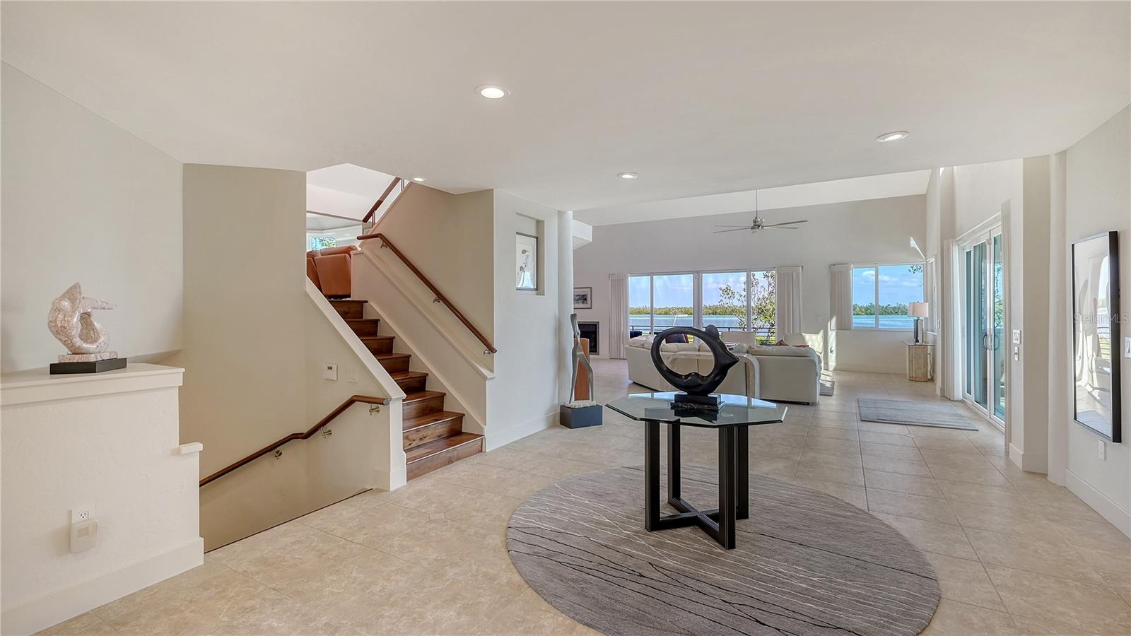 SOPHISTICATED WATERFRONT LIVING ON SARASOTA BAY-- POSTMODERN GEM Experience sophisticated waterfront living in this postmodern 5,424 square foot architectural gem situated on an .834 acre lot. Perfectly positioned on this generous and private parcel, the estate boasts 275 feet of Sarasota Bay waterfront. The split-level home is surrounded by mature tropical landscaping with Azek composite decks on each level, a shaded garden-level seating area, and a hot tub composite deck. The soaring ceilings and expansive impact windows provide abundant natural light, bringing the outside in, and providing unobstructed views of the Bay throughout the house. The interior provides an inviting open floor plan, along with generous private spaces. Entering the home through the large foyer, you are greeted with 180 degree Bay views, which continue as you move into the living and dining rooms. On the next level, you will find a spacious chef’s kitchen with guest seating, breakfast area, and deck, all with full views of the Bay. A family room and private guest wing is located on this level, with 2 bedrooms each with ensuite baths. The home has two master suites, each with private decks and full Bay views. Overall, this home provides the perfect environment for entertaining or for finding serenity and solitude with nature and abundant wildlife. The ground level includes a 3-car garage, a separate storage room with garage doors allowing access for a 4th car and golf cart, and a separate 900 square foot workshop and exercise space which could also be used as a game/hobby area. Outside, enjoy the island waterfront lifestyle with an elevated 50-foot long refinished swimming pool and tile deck overlooking the newly designed and constructed (2018) Azek composite boat dock (Duncan Seawall). The deep water dock has two 4-piling boat lifts, a kayak lift, fish cleaning station, as well as a composite bench for viewing the many seasons of Sarasota Bay. Finally, and significantly, the property is located just blocks (5 minute walk) from one of Longboat Key’s 12 designated beach access points for early morning or sunset walks on the white sands of the Gulf. The boat dock is just a short ride by boat to the ICW and to Longboat Pass for quick access to the Gulf. In addition, the community has two private tennis courts for use by HOA members and their guests. This community of 18 custom homes is tucked away down a mangrove-lined winding road that delivers you to one of the most secluded and serene communities on Longboat Key. The current owners have invested over $1 million in upgrades since 2017, too numerous to include, but available upon request.