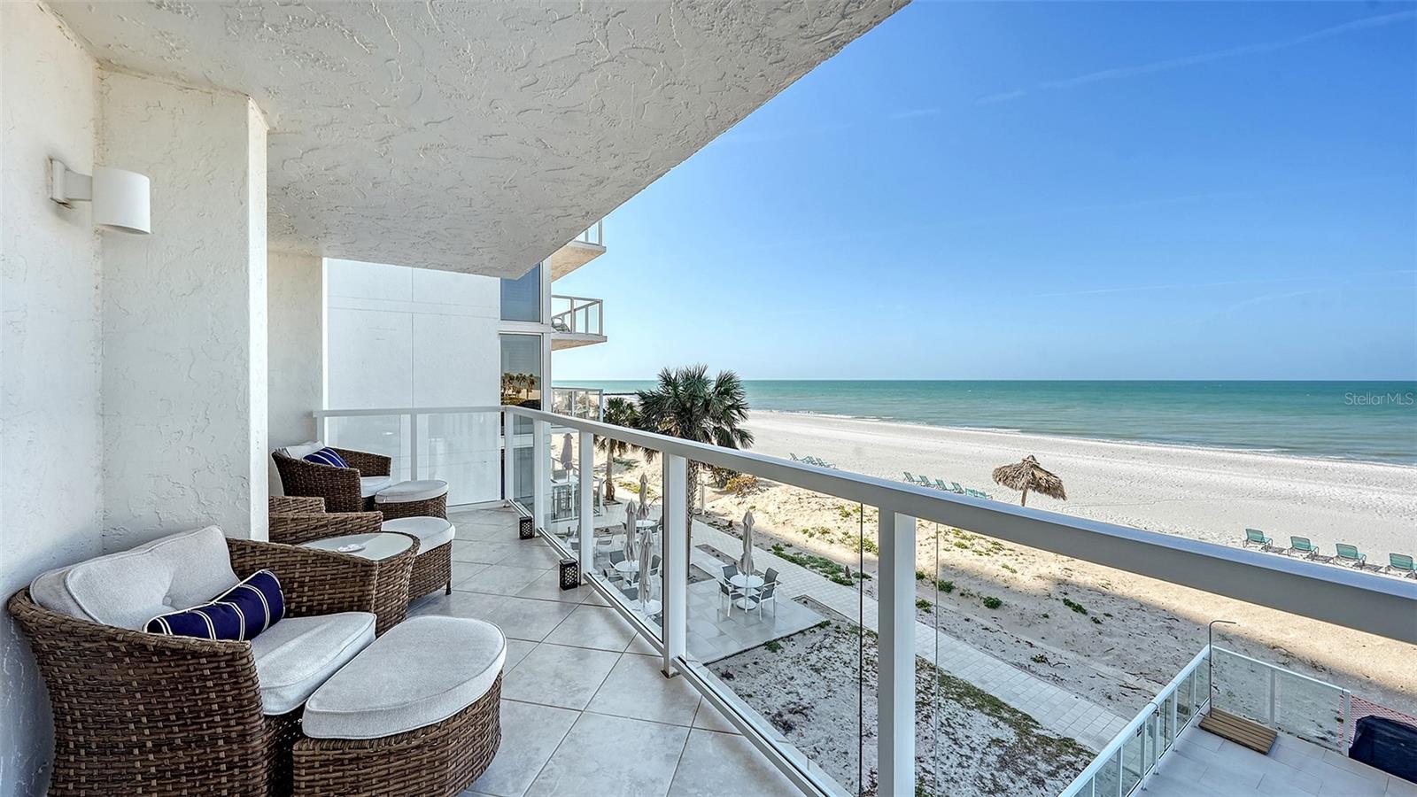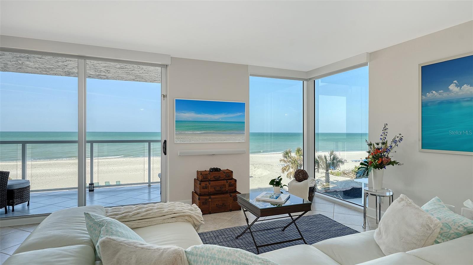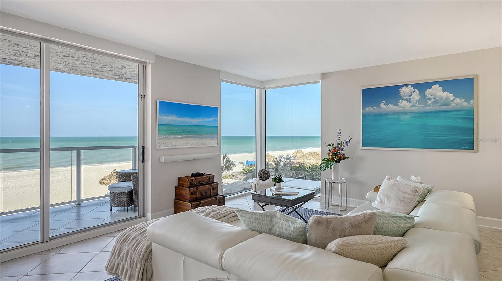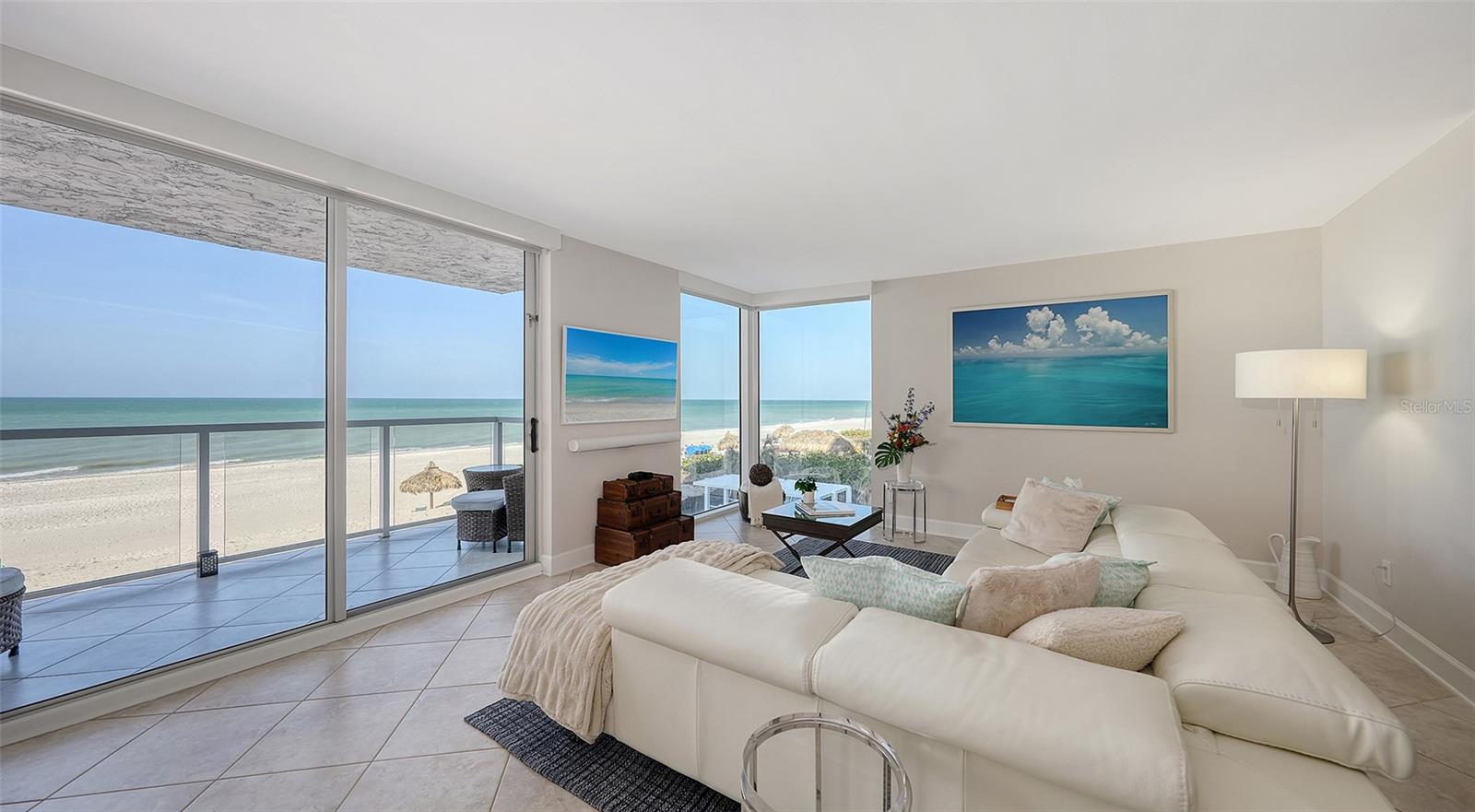 SEA GATE, a boutique 89-unit building, stands apart with its exceptional proximity to the Gulf, offering an intimate connection to the water that larger complexes simply can't match. With over 350 feet of pristine shoreline and private beach, this is the perfect setting to watch dolphins, manatees, and vibrant fish glide through the water by day, then take in mesmerizing Gulf sunsets from your private west-facing balcony each evening. Offering some of the most breathtaking, unobstructed water views on Longboat Key, this rare 3rd-floor unit takes full advantage of its Gulf-front location, with panoramic vistas from every room and an exclusive corner window that enhances natural light and coastal scenery. With only two units sold in early 2024, this home presents a rare opportunity to embrace the ultimate beachfront lifestyle. Designed to blend sophistication with coastal charm, the open-concept home showcases high-end finishes throughout, including gorgeous countertops, custom cabinetry, and designer lighting—each element thoughtfully curated to enhance elegance, luxury, and comfort. The kitchen was completely reimagined and the owners designed the space with thoughtful touches such as the convenient granite island to enjoy a coffee or wine and extending the granite counter and cabinets for tons of storage. The primary bedroom is a serene retreat, featuring upgraded soft ivory carpet replaced in fall 2024, a floor-to-ceiling view of the Gulf, and not one ...but two, closets. En-suite bath is sparkling with quartz countertops and walk in shower. The secondary bedroom is equally impressive, with a spacious layout, double closets, quartz countertops and new carpeting replaced fall 2024 ...and yet another stunning Gulf view, perfect for family or guests as they have their own private bathroom. Meticulously maintained, SEA GATE has undergone significant recent updates, including a full exterior restucco and repaint in 2022, a new roof in 2023, impact windows installed in 2021, and AC cooling tower upgrades in 2025, ensuring both beauty and structural integrity for years to come. Summer 2025 a new sunning deck will be added adjacent to the pool Resort-style amenities abound, with a sparkling pool, hot tub, fitness center, clay tennis court, a serene library room, bike storage, and dedicated kayak and paddleboard storage for endless waterfront adventures. Shaded tiki huts provide the perfect retreat, while outdoor showers offer a refreshing rinse after a day at the beach. A private social room with a chef’s kitchen is also available for hosting gatherings and celebrations. Summer 2025 a new sunning deck will be added adjacent to the pool. Perfectly positioned in South Longboat Key, SEA GATE places you just minutes from the best of both worlds—the beauty of Anna Maria Island’s pristine beaches just to the north and the vibrant energy of downtown Sarasota with all of the restaurants, entertainment and culture you could ask for. Just three miles away, St. Armands Circle offers a sophisticated yet inviting mix of fine dining, boutique shopping, and laid-back coastal charm. The convenience of CVS and Publix just steps away literally across the street makes everyday living effortless. Don't forget the super convenient Longboat Key Bayfront Park for pickleball, tennis, shuffleboard, playground and kayak launch. For boaters, the Longboat Key Moorings is across the street or there are several Marina's to choose from.