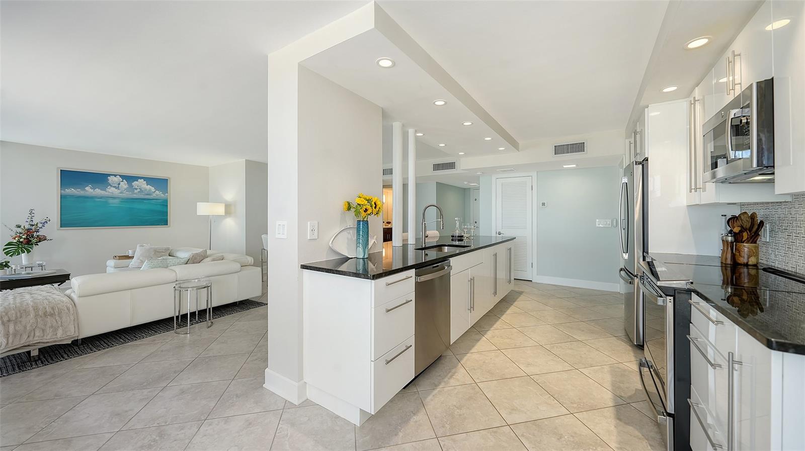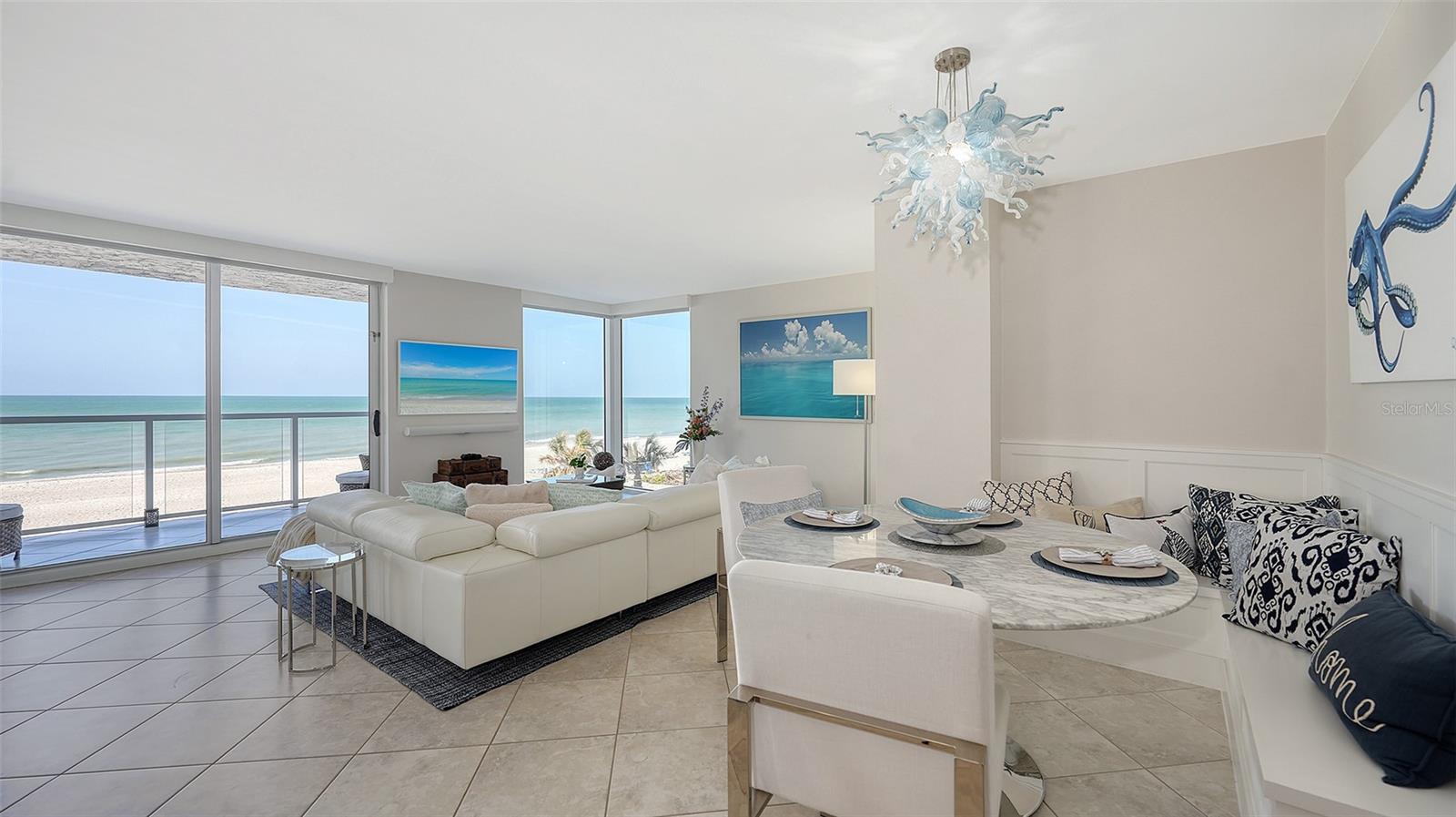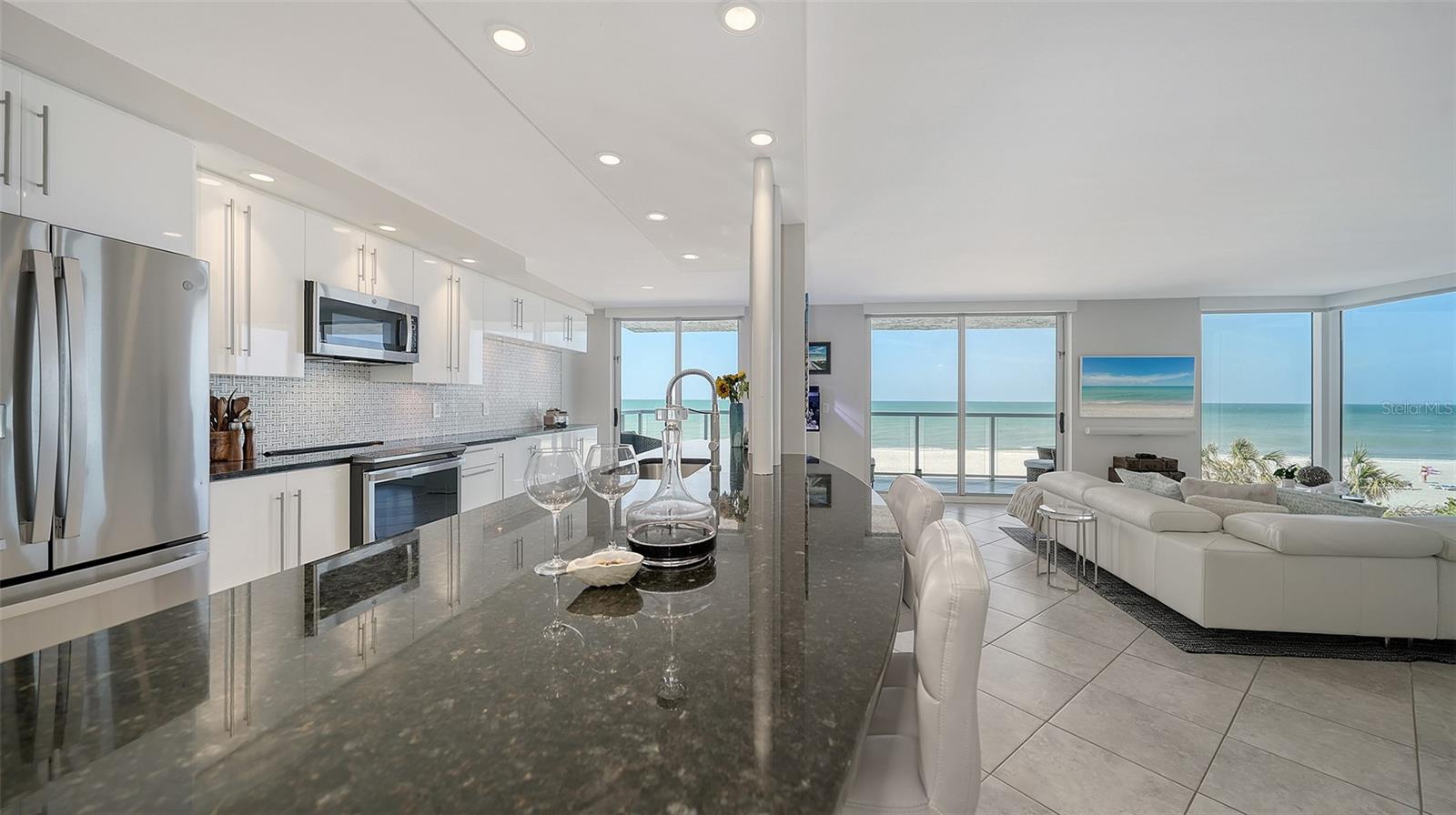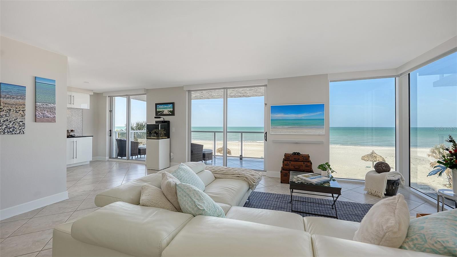 SEA GATE, a boutique 89-unit building, stands apart with its exceptional proximity to the Gulf, offering an intimate connection to the water that larger complexes simply can't match. With over 350 feet of pristine shoreline and private beach, this is the perfect setting to watch dolphins, manatees, and vibrant fish glide through the water by day, then take in mesmerizing Gulf sunsets from your private west-facing balcony each evening. Offering some of the most breathtaking, unobstructed water views on Longboat Key, this rare 3rd-floor unit takes full advantage of its Gulf-front location, with panoramic vistas from every room and an exclusive corner window that enhances natural light and coastal scenery. With only two units sold in early 2024, this home presents a rare opportunity to embrace the ultimate beachfront lifestyle. Designed to blend sophistication with coastal charm, the open-concept home showcases high-end finishes throughout, including gorgeous countertops, custom cabinetry, and designer lighting—each element thoughtfully curated to enhance elegance, luxury, and comfort. The kitchen was completely reimagined and the owners designed the space with thoughtful touches such as the convenient granite island to enjoy a coffee or wine and extending the granite counter and cabinets for tons of storage. The primary bedroom is a serene retreat, featuring upgraded soft ivory carpet replaced in fall 2024, a floor-to-ceiling view of the Gulf, and not one ...but two, closets. En-suite bath is sparkling with quartz countertops and walk in shower. The secondary bedroom is equally impressive, with a spacious layout, double closets, quartz countertops and new carpeting replaced fall 2024 ...and yet another stunning Gulf view, perfect for family or guests as they have their own private bathroom. Meticulously maintained, SEA GATE has undergone significant recent updates, including a full exterior restucco and repaint in 2022, a new roof in 2023, impact windows installed in 2021, and AC cooling tower upgrades in 2025, ensuring both beauty and structural integrity for years to come. Summer 2025 a new sunning deck will be added adjacent to the pool Resort-style amenities abound, with a sparkling pool, hot tub, fitness center, clay tennis court, a serene library room, bike storage, and dedicated kayak and paddleboard storage for endless waterfront adventures. Shaded tiki huts provide the perfect retreat, while outdoor showers offer a refreshing rinse after a day at the beach. A private social room with a chef’s kitchen is also available for hosting gatherings and celebrations. Summer 2025 a new sunning deck will be added adjacent to the pool. Perfectly positioned in South Longboat Key, SEA GATE places you just minutes from the best of both worlds—the beauty of Anna Maria Island’s pristine beaches just to the north and the vibrant energy of downtown Sarasota with all of the restaurants, entertainment and culture you could ask for. Just three miles away, St. Armands Circle offers a sophisticated yet inviting mix of fine dining, boutique shopping, and laid-back coastal charm. The convenience of CVS and Publix just steps away literally across the street makes everyday living effortless. Don't forget the super convenient Longboat Key Bayfront Park for pickleball, tennis, shuffleboard, playground and kayak launch. For boaters, the Longboat Key Moorings is across the street or there are several Marina's to choose from.