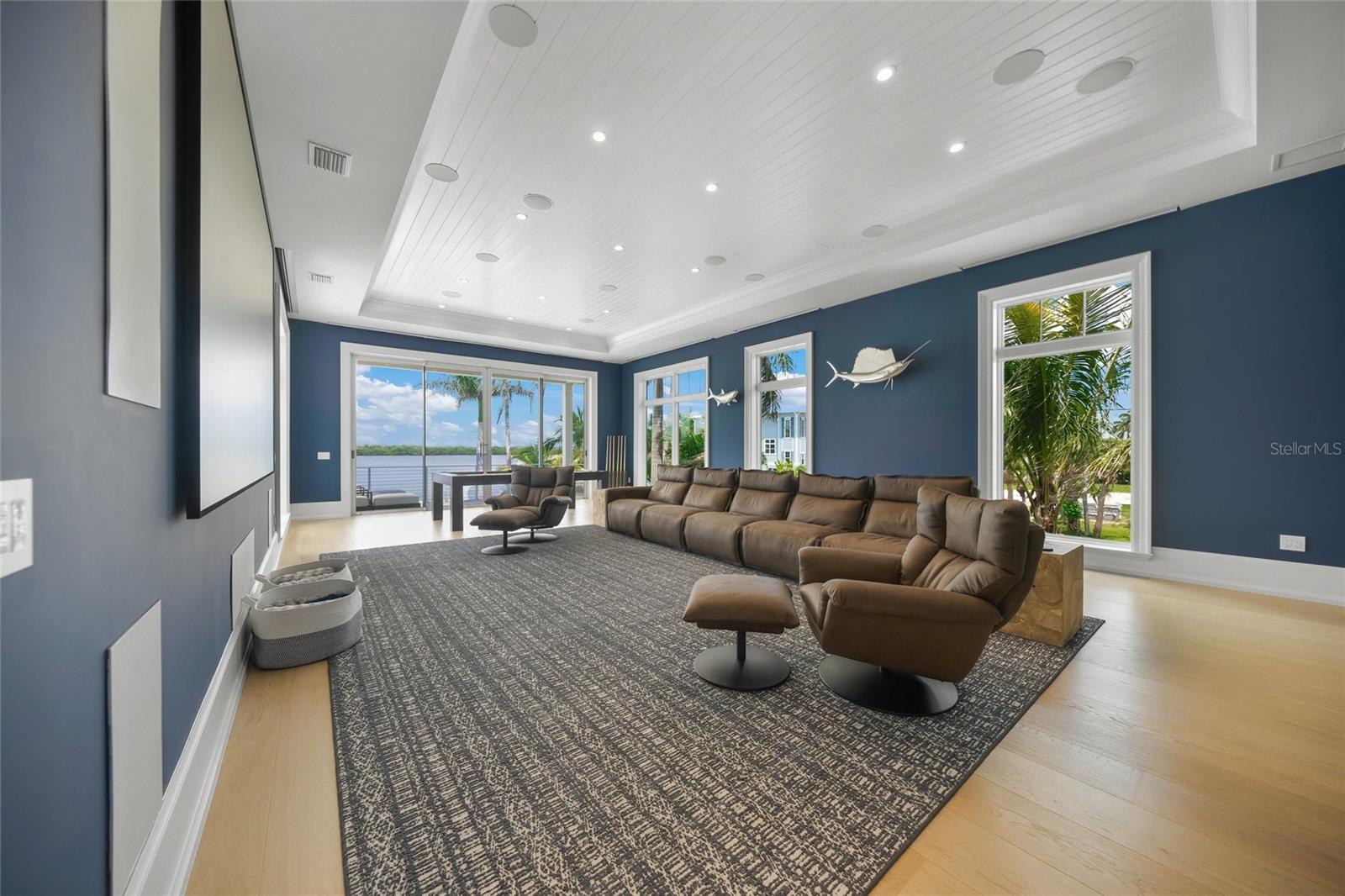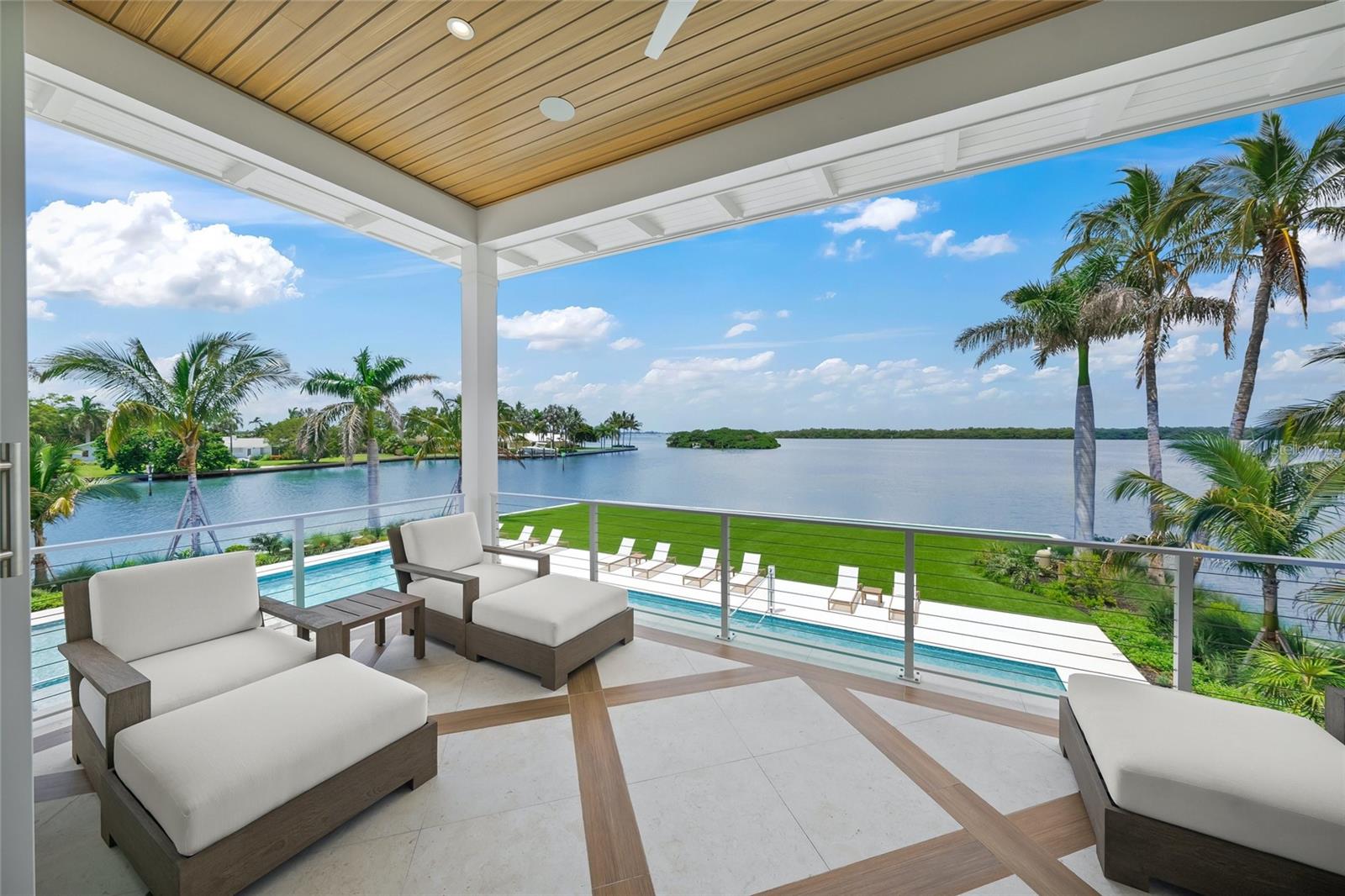 Welcome to your private, gated estate on Longboat Key, where coastal luxury meets effortless sophistication. Boasting over 730 feet of water frontage, this stunning property offers panoramic views of Whitney Bayou and Harris Canal and provides the ultimate waterfront lifestyle. With 9,243 square feet of air-conditioned living space and a total of 21,562 square feet on over an acre of pristine land, this estate is a masterpiece of design and craftsmanship. Designed in the timeless British West Indies style, this home showcases vaulted ceilings, extensive trim detailing, white oak floors throughout, and two fireplaces, creating an ambiance of elegance and warmth. The expansive covered patios and porches invite you to embrace the serenity of waterfront living, while the heated pool and an impressive 13' x 13' hot tub serve as the ultimate retreats. A custom outdoor fire pit, two outdoor kitchens, and indoor and outdoor pool tables elevate the entertainment experience. For boating enthusiasts, this estate is unrivaled, featuring four low-profile boat lifts—the largest accommodating vessels up to 30,000 pounds, the second suitable for a vessel up to 20,000 pounds, and the third and fourth lifts each with a 5,000-pound capacity, ideal for jet skis, kayaks, and paddle boards. Located just 10 minutes from the Gulf of Mexico by boat and 5 minutes to Shore and Mar Vista restaurants, this is the perfect haven for life on the water. Inside, the Wolf Sub-Zero appliances provide top-tier performance in a gourmet kitchen built for culinary excellence. A Control4 smart home system offers seamless automation throughout, while HVAC-equipped garages ensure comfort year-round. The multiple garages can accommodate up to 9 cars, and the massive driveway can host 20+ vehicles. The residence boasts six spacious bedrooms, each with an en-suite bathroom, plus an additional full bath and two half baths. Designed for both productivity and leisure, the home features his and hers offices, a media/theater room, a fully equipped gym, sauna, golf simulator, tackle garage, and a workshop. A private guest suite with a separate entrance includes a kitchenette, dining room, living room, bedroom, and bathroom, offering a luxurious retreat for visitors. With two state-of-the-art elevators, expansive landscaping, and a maintenance-free turf yard, this estate blends modern convenience with natural beauty. Ideally located near pristine beaches, world-class shopping, and gourmet dining, this estate is the epitome of waterfront elegance and exclusivity. Experience the pinnacle of coastal living—this is truly paradise found.