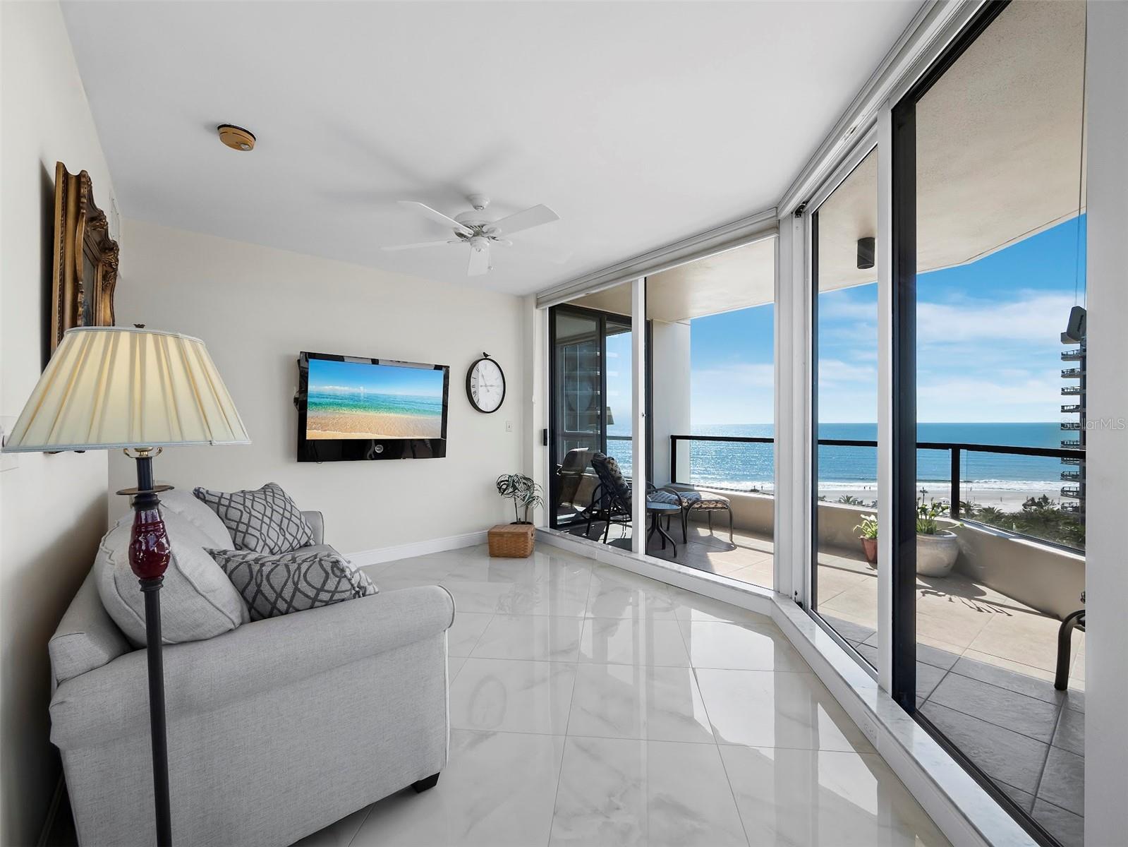 Sophisticated Coastal Living in the Promenade Welcome to an extraordinary opportunity to indulge in the very best of Gulf-front living. Perched on the 6th floor of the renowned Promenade, this meticulously renovated residence spans over 2,100 square feet and captures sweeping, unobstructed views from the Gulf of Mexico to Sarasota Bay and downtown. Originally conceived as a three-bedroom floor plan, the layout has been masterfully reimagined into two generous en-suite bedrooms plus a flexible den—ideal as a third bedroom, media room, or home office. Walls of floor-to-ceiling glass and expansive sliders open to two private terraces, inviting in natural light and framing the lush, resort-style grounds and sparkling seascape beyond. Refined interior updates include designer flooring, a beautifully refreshed primary bath, and a thoughtfully updated kitchen with modern appliances and a casual breakfast nook. The open-concept living and dining area seamlessly blend for elegant entertaining or peaceful day-to-day living. Set within nearly seven acres of manicured Gulf-front property, The Promenade offers one of Longboat Key’s most exclusive amenity collections: a magnificent heated resort pool and spa, private beach access with chaise lounges and umbrellas, four Har-Tru tennis courts, a state-of-the-art fitness center, grilling area, concierge-style services, 24-hour manned security, and secure under-building parking. Just moments from the fine dining, boutique shopping, and vibrant culture of St. Armands Circle and downtown Sarasota, this residence is the perfect expression of luxurious coastal lifestyle. Discover the harmony of elegance, comfort, and panoramic beauty at The Promenade.