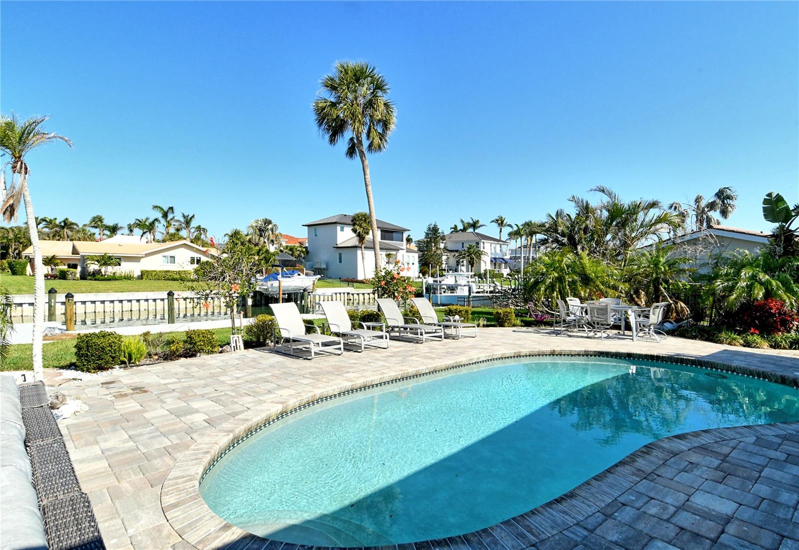 An exceptional chance to acquire a prime waterfront residence on the Southern tip of Longboat Key, ideally situated along a wide waterway leading to Sarasota Bay (with no bridges). Located in one of the most desirable areas, this home is just a short walk or bike ride to your deeded beach access, the prestigious Longboat Key Club, and the new St. Regis hotel. Enjoy beautiful beaches, world-class dining, St. Armands Circle, and more. With over 100 feet of canal frontage, this property features deep, sheltered waters perfect for boating, with direct access to the Intracoastal Waterway, Sarasota Bay, and the Gulf of Mexico. The home offers an excellent foundation, a beautiful pool, a new roof, and a new seawall with a jet ski lift for your dream waterfront retreat. The location also offers convenient access to downtown Sarasota, known for its vibrant arts and cultural scene, and Sarasota International Airport, making it the perfect balance of coastal living and accessibility. Although the current home has sustained damage from the hurricane, it presents remarkable potential. The minimal water and drywall were removed within 24 hours of intrusion. The 12,392-square-foot lot offers numerous possibilities. Embrace the Longboat Key lifestyle with deeded beach access, easy boating, and proximity to the island's top amenities. Memberships at the Longboat Key Club provide access to world-class golf, a premier tennis center, and a private beach club. With a rare combination of location, water access, and potential, this home presents an unparalleled opportunity to create your ideal waterfront retreat. A short stroll to the deeded beach offers the chance to relax, enjoy the sun, and witness breathtaking sunsets. Don't miss this opportunity to create your ideal waterfront lifestyle in one of Longboat Key's most desirable communities.