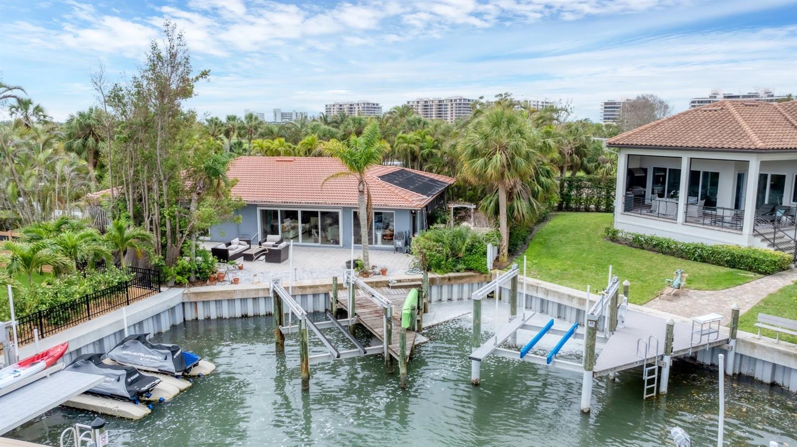 WONDERFUL FLORIDA STYLE COUNTRY CLUB SHORES canal FRONT home and lot ready for new owner. All WINDOWS AND DOORS are hurricane resistant including the garage doors and the roof is triple reinforced says long time owner. Natural gas is available; cooking grilling, heating the pool and spa any other needs. There is a working irrigation well on the property. Let the sunlight in every morning wake up to stunning water views down the sloop canal with a slightly shorter canal getting you to the open Bay quickly. Your private boat dock and lift (10K) will give you immediate boat access. There is an outdoor shower when you pop off your boat onto your dock the shower has hot and cold running water. You will enjoy your outdoor kitchen with a gas grill for those evening meals with fresh catch. This wonderful opportunity to own this Florida style Country Shores home on South Longboat Key. This simply stylish artists home is one story and an open floor plan kick your shoes off and truly embrace island living at its finest. Situated in one of the most sought-after areas a short distance to the small town of Longboat Key, the brand-new St. Regis hotel, pristine sandy beaches, world-class dining, St. Armand's Circle, and more. The location also offers easy access to downtown Sarasota with its vibrant arts and culture and Sarasota International Airport, making it the perfect blend of serenity and convenience. This 14000+ square-foot lot offers endless possibilities complete with a private pool and tropical landscaping. The Longboat Key lifestyle, with a deeded beach path access, easy boating access, and close proximity to the island's finest amenities. Memberships are available at the Longboat Key Club, where you can enjoy 45 holes of world-class golf, a premier tennis center, and a private beach club. The Town of Longboat Key has recently completed the first phase of its Town Center, which features a beautiful outdoor amphitheater and a Town Green hosting local events, art fairs, live music, food trucks, and more. Deeded beach access is included in the voluntarily HOA fee of $100 wonderful for sunbathing, beach combing and the to die for SUNSETS.