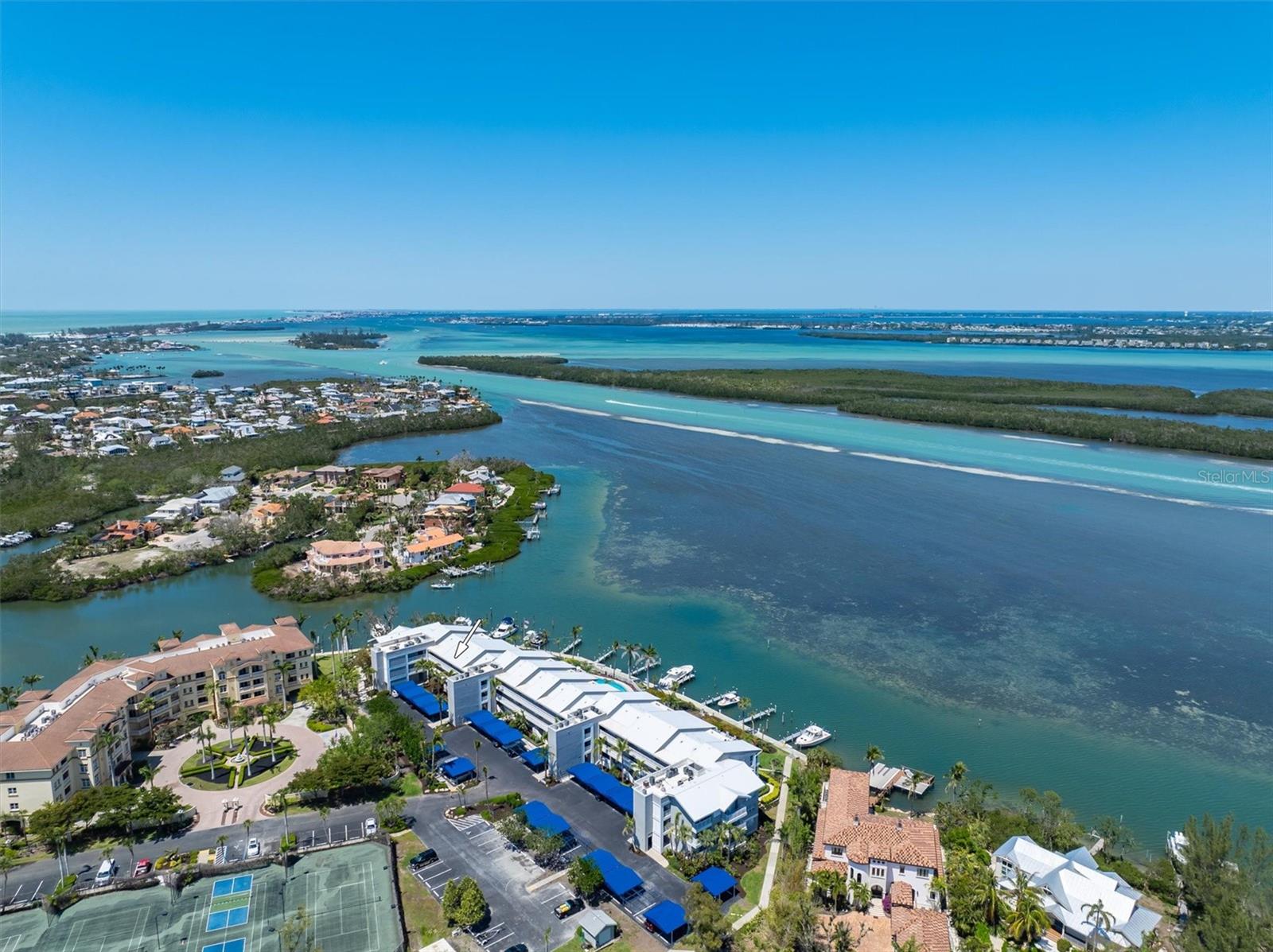 Welcome to Water Song, your slice of paradise at Harbour Villa Club in prestigious Longboat Key! Water Song is a beautifully maintained top-floor condo with breathtaking water views from nearly every room. Wake up to shimmering water views from your master bedroom and enjoy your morning coffee on the enclosed lanai (216 Sq Ft lanai). Located on the top floor, this two bedroom/ two bath beauty has cathedral ceilings making this quiet residence feel bright, airy, and peacefully tucked away. The 40’ DEEDED BOAT SLIP is just outside your condo so bring your boat or rent the slip for income. Enjoy exclusive access to an array of resort-style amenities: covered private parking space, heated pool and spa, tennis & pickleball courts, kayak storage and launch, and a waterside outside grilling area. Every inch of this home has been lovingly cared for, offering a seamless blend of comfort, elegance, coastal living, and access to culture and the arts. Stroll the sandy white beaches of Longboat Key, watch the sunset, relax by the pool, enjoy a day on the boat, or head out for a paddle. Water Song’s unique proximity to Sarasota, St Armands Circle and Anna Maria Island provides access to world class restaurants, theaters, shopping and the arts. Located in one of the few communities on Longboat Key that allows WEEKLY rentals, this property is a rare investment opportunity or the perfect full-time escape. Don’t miss this exceptional opportunity — where every day feels like vacation! Call now for your private showing!