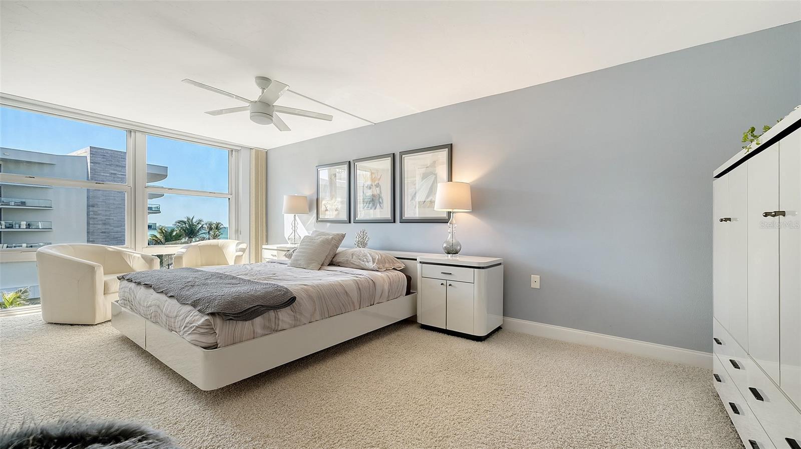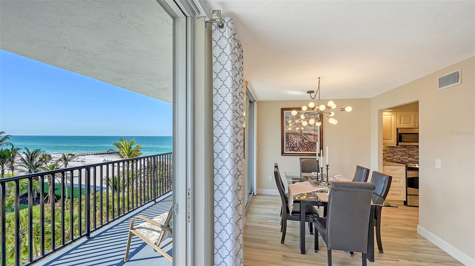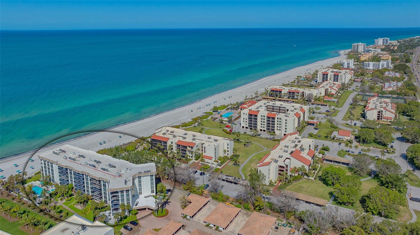 Welcome to the Aquarius Club, a boutique coveted beachfront community on the serene southern end of Longboat Key, where just 58 residences enjoy an intimate, resort-style setting along the Gulf of Mexico. This 5th-floor, turnkey furnished direct Gulf-front condominium offers over 1,550+ SF of refined coastal living, with a desirable split floor plan featuring two bedrooms and two bathrooms. Flooded with natural light, the interiors exude casual sophistication with contemporary porcelain wood-look tile flooring, an updated kitchen, and beautifully renovated bathrooms. Floor-to-ceiling hurricane-impact windows in both bedrooms frame breathtaking views of the Gulf, while the spacious living and dining areas feature impact-rated sliders that open onto an extended balcony—perfect for morning coffee as the waves roll ashore or unwinding at sunset with a glass of wine in hand. The seamless indoor-outdoor flow invites the fresh sea breezes and soothing sounds of the surf into your everyday living experience. Aquarius Club offers a host of amenities, including tennis court, two pickleball courts, on-site management, a Gulf-front heated pool, and recently updated lobbies, hallways, a fitness center, community room, and conference space—all thoughtfully reimagined with coastal elegance. Adding to the allure, the world-class St. Regis Longboat Key Resort is located directly next door, and residents enjoy a complimentary social membership, providing access to exclusive dining, pool, state-of-the-art gym, and exceptional beachfront luxury. This is a rare opportunity to own a beachfront sanctuary that perfectly balances privacy, elegance, and the relaxed rhythms of island life.