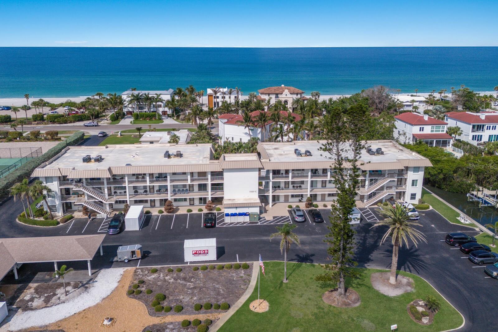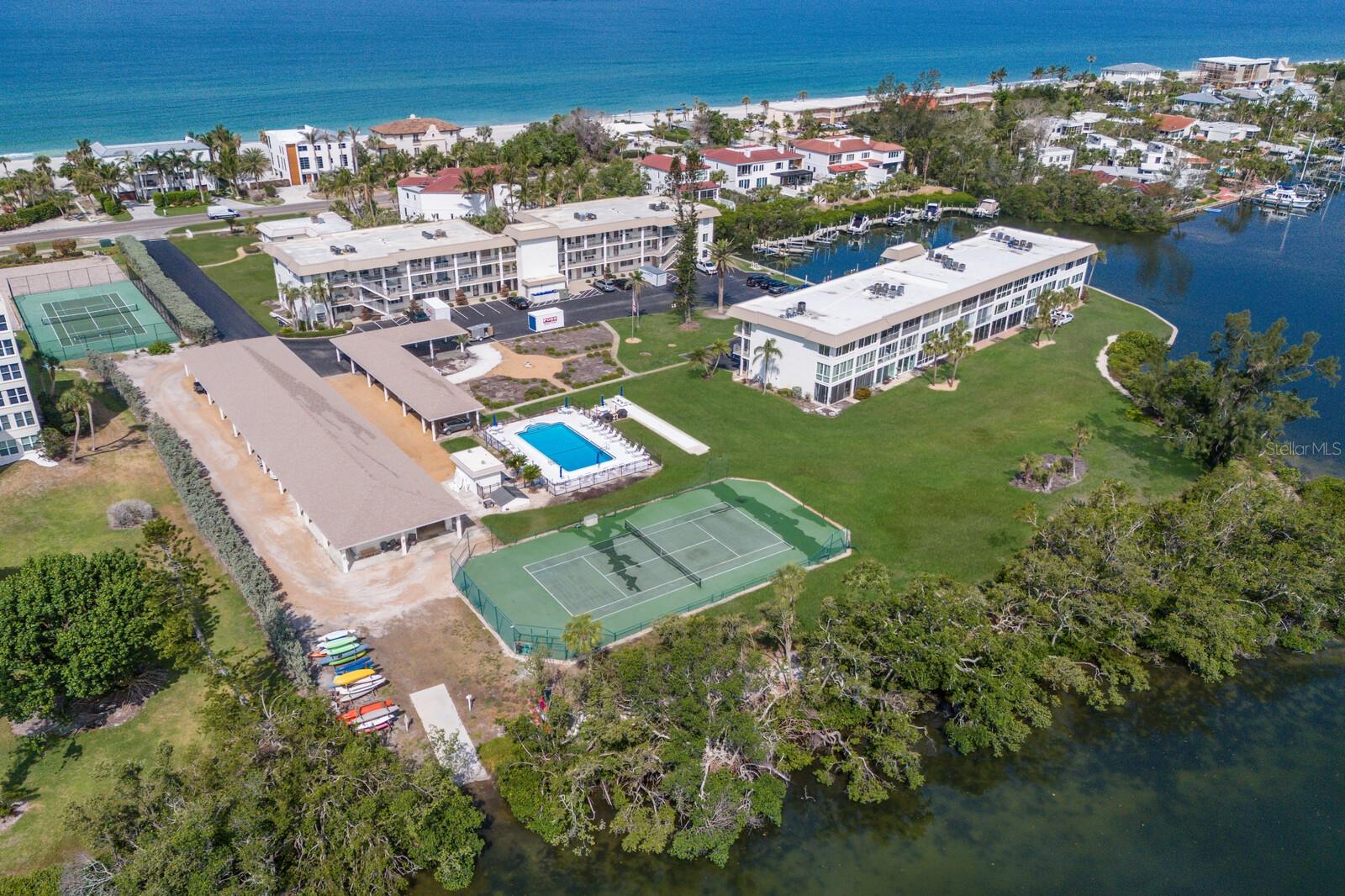 DEEDED BEACH ACCESS - Discover this 3rd floor (with elevator access) 2 bed, 2 bath condominium located in Longboat Arms a well-maintained community on Longboat Key, Florida. Move-in ready with bay views on the veranda. Enjoy entertaining in the unit with open floor plan that has 9' ceilings and a generous sized great room and dining area. The primary bedroom is also oversized with a walk-in closet and en-suite bath provides a peaceful retreat. This condominium has an in-unit washer and dryer, as well as added storage throughout. The AC was replaced in 2023, and flooring replaced in 2021. Residents will enjoy access to the private boat ramp, which is excellent for kayaks, paddle boards, jet skis, and various watercraft. Boat docks are available first come, first served for an annual fee, providing convenient access to the water for boating enthusiasts. Longboat Arms is a community that has great amenities, including an upgraded heated swimming pool, clubhouse, tennis court, community grill area and deeded beach access. The assigned oversized carports that can even accommodate boat storage and ample guest parking.