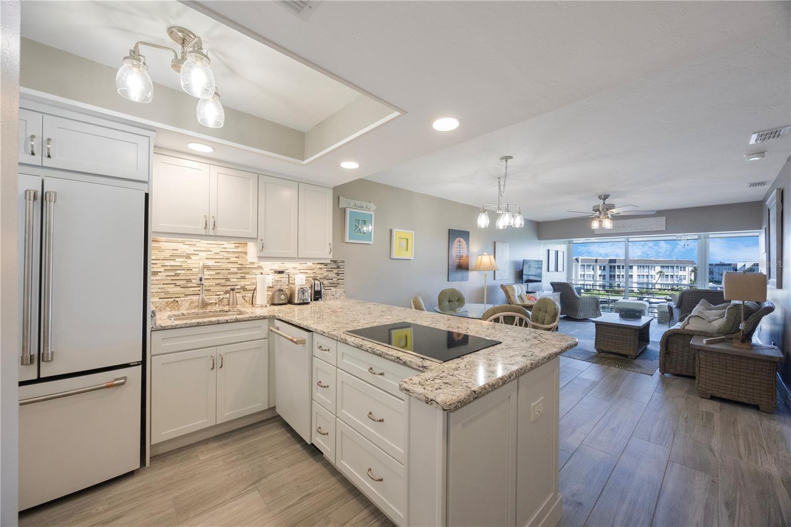 Luxury Coastal Living at Longboat Harbour: Experience stunning canal views and modern elegance in this impeccably renovated 3rd-floor condo, ideally situated in the desirable all-age community of Longboat Harbour. Offered turnkey furnished, this beautifully curated residence is ready for your immediate enjoyment, whether you're seeking a winter retreat or full-time coastal living. Step inside to discover a completely reimagined, open-concept layout that blends sleek design with seaside charm. Every detail has been thoughtfully considered—from custom cabinetry and clever storage solutions to high-end fixtures and quartz countertops in both the kitchen and bath. The chef-inspired kitchen is outfitted with premium GE Stainless Steel Café appliances, and the entire space is anchored by ceramic wood-look tile flooring that adds both warmth and durability. Enjoy restful nights in either of the two king-size bedrooms, and indulge in the peace of mind that comes with updated electric and plumbing, PGT impact windows, 2018 AC, new ductwork, and added insulation for optimal comfort and quiet. You'll love entertaining in the great room or relaxing on your private balcony as dolphins, manatees, and coastal birds pass by—every moment feels like a postcard. Resort-Style Amenities Include: 4 heated swimming pools, Tennis & pickleball courts, Fitness center, billiards, and sauna, Clubhouse with kitchen, game and card rooms, Putting green, library, shuffleboard, and kayak storage, 56-slip marina with water and electric (waitlist for slips), Picnic area with gas grill and bike storage. From the serene water views to the exceptional interior design, this condo feels like stepping into a brand-new model home. Welcome to a life of luxury, comfort, and coastal bliss on Longboat Key.
