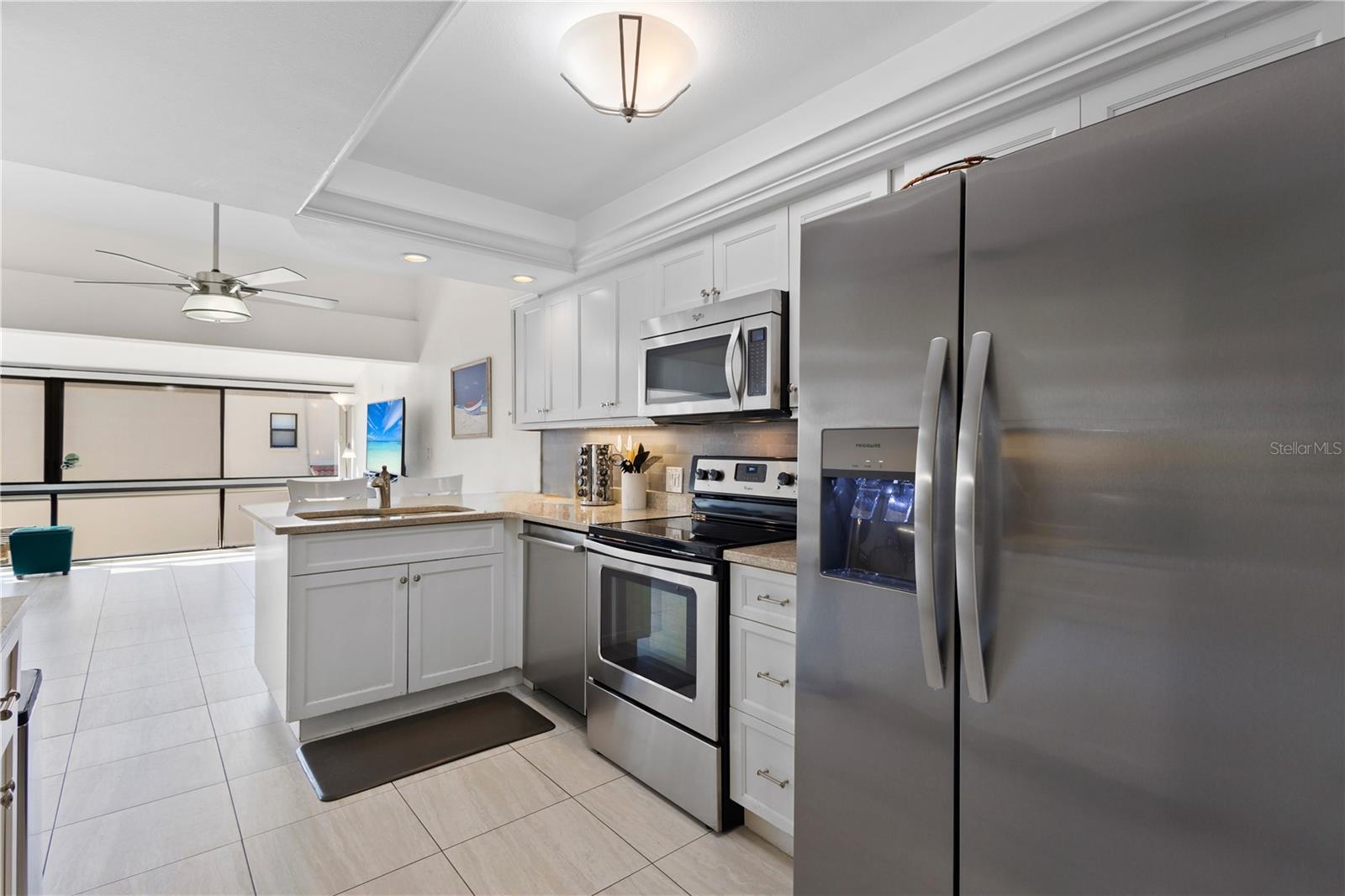 Investment Opportunity with low HOA fees! Beautifully updated and decorated two-bedroom, two-bath unit with vaulted ceilings can sleep up to 6 at Casa Del Mar on Longboat Key. Casa Del Mar is a popular beach resort with short-term rentals located directly on the Gulf. Use the condo for your own vacation and enjoy all Longboat Key has to offer while collecting income the rest of the year. This turnkey furnished condo is tiled throughout and offers views of the tropically landscaped courtyard and partial Gulf views from the extended living area. The primary ensuite bedroom is furnished with a king size bed and built-in cabinetry. The guest bedroom is furnished with 2 twin beds, built-in cabinetry with a full bath in the hallway. The kitchen has stone counters, solid wood cabinets and stainless appliances. Community amenities include a huge 30’ x 60’ gulf front heated pool, grill area, tennis, pickleball and basketball. Complimentary beach lounges are provided for guests and umbrella rentals are available. Casa Del Mar’s on-site management handles year-round bookings along with all the details so you can enjoy your investment stress-free. Annual gross income for #14F: 2023 $45,131 and 2024 $59,833. Great location convenient to St Armand’s Circle with shops, fine and casual dining, and entertainment and a short drive over the bridge to the southwest cultural hub of downtown Sarasota.