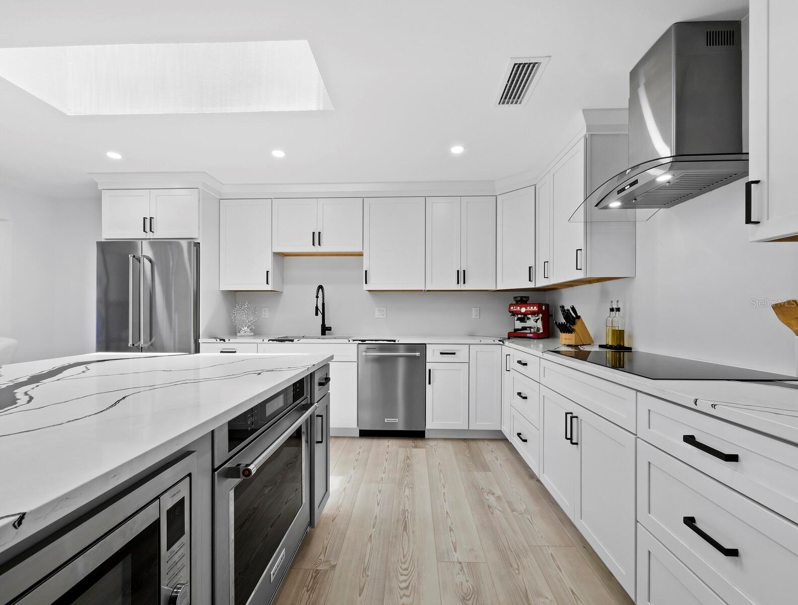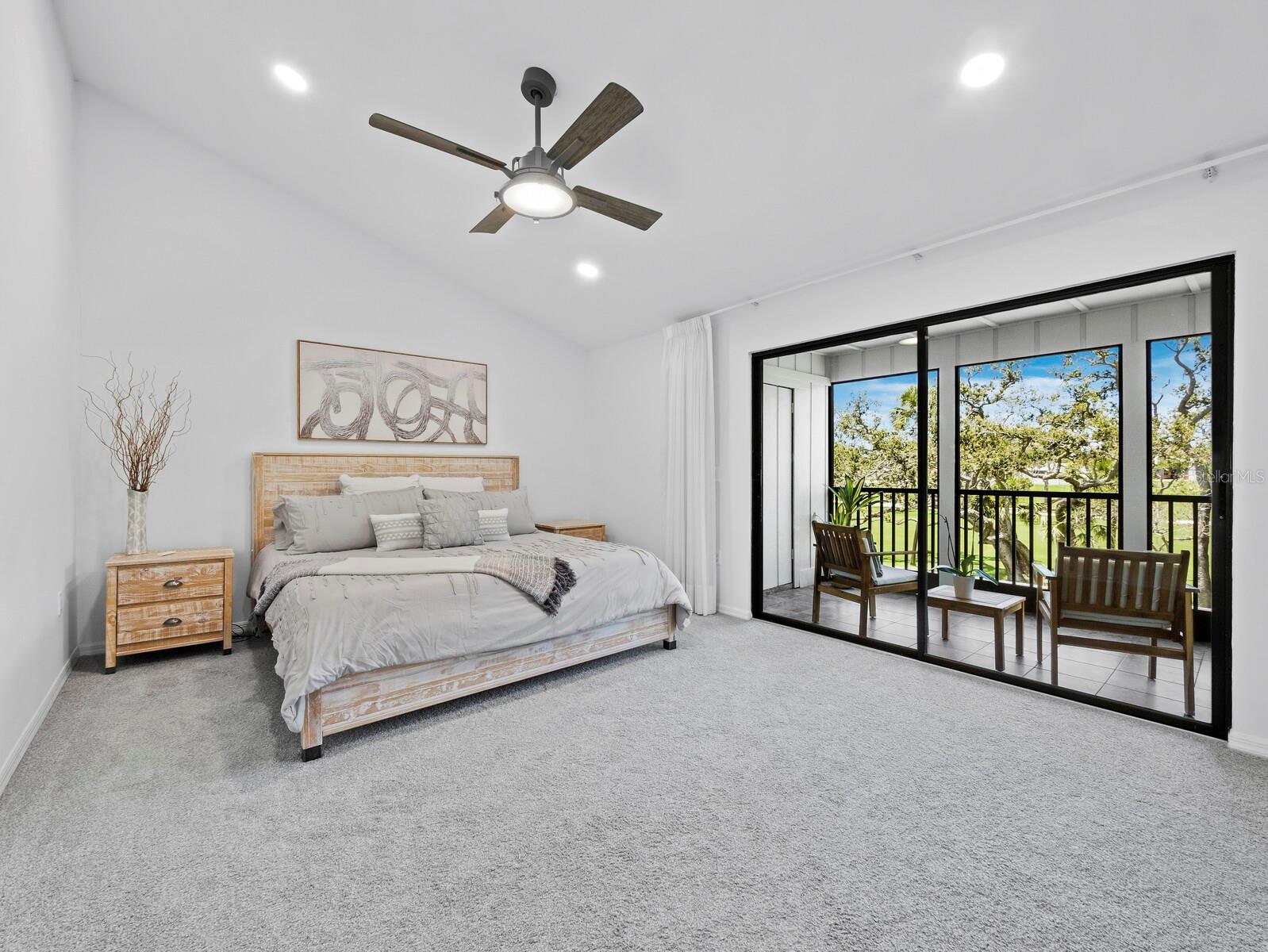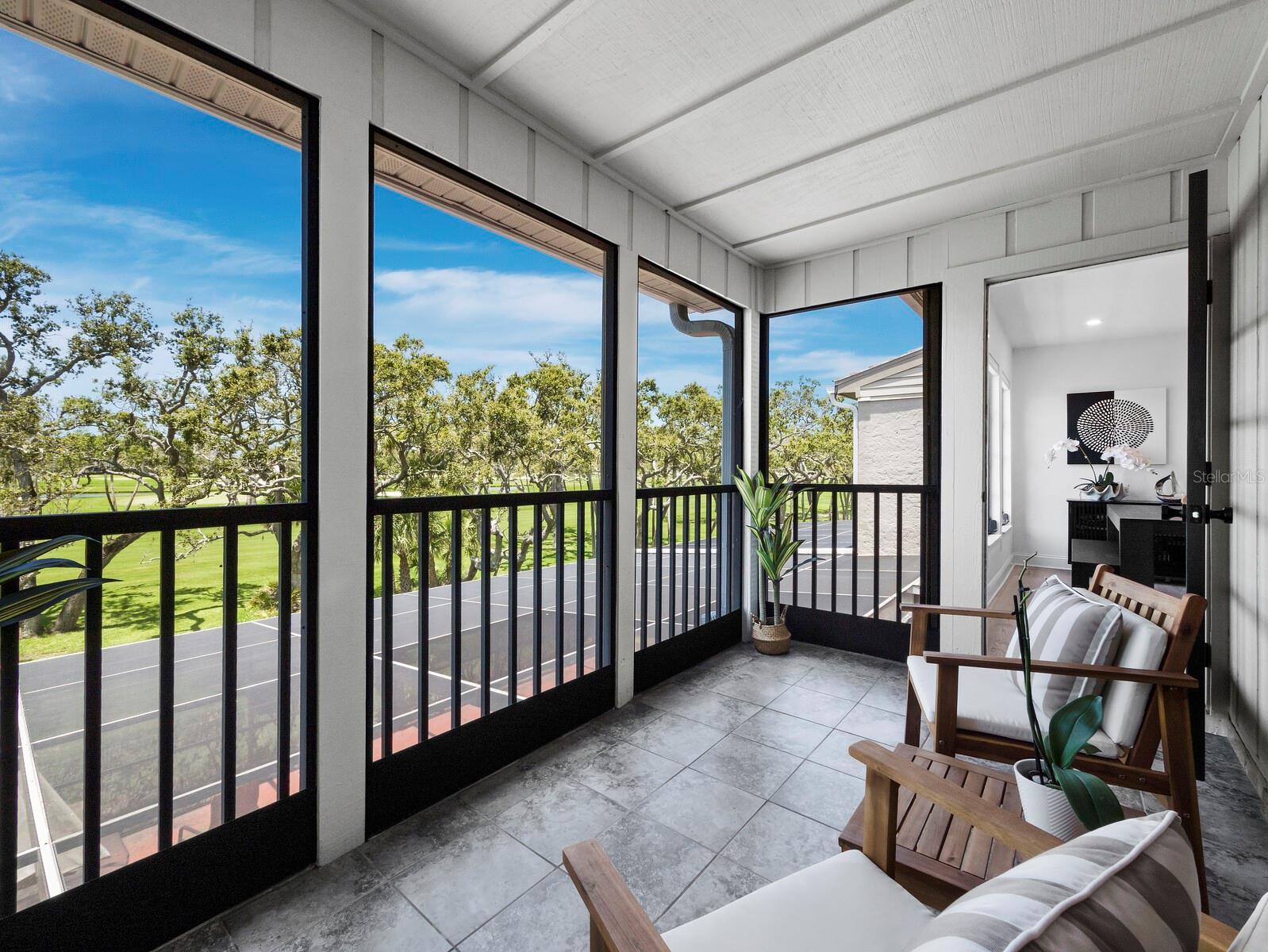Located in the quiet, gated community of Bay Isles on Longboat Key, this beautifully renovated, TURNKEY FURNISHED – 2nd-floor residence in Harbour Oaks offers over 2,000 square feet of comfortable, thoughtfully designed living space. The entryway has built-in shelves and cubbies that make it easy to keep jackets, shoes, and bags organized. Inside, the main living areas feature high tray ceilings, recessed lighting, and warm wood floors, creating a clean and open atmosphere. Large windows let in plenty of natural light, giving the space a bright and airy feel. The kitchen has been fully renovated with modern finishes, including quartz countertops, a 36-inch induction cooktop, KitchenAid stainless steel appliances, a wine fridge, and a large island with a waterfall edge. A skylight above adds to the open feel, bringing natural light to both breakfast nook and separate dining area. The living room leads out to a screened terrace with spectacular views of the golf course and pond - an ideal spot to relax or catch up with friends. The primary suite includes direct access to the terrace, soft carpet, vaulted ceilings, a custom walk-in closet, and an en-suite bath with dual sinks, a walk-in glass shower, and another skylight for natural light. Two additional bedrooms provide flexible space for guests, work, or hobbies. Living in Bay Isles includes access to private deeded beach access through the Bay Isles Beach Club. Optional membership to the Longboat Key Club provides access to 45 holes of championship golf (plus driving ranges with free balls and pro shops), 20 Har Tru tennis courts with resident pros and clinics, six private member-only restaurants and lounges, and a full-service marina (Moorings) with boating access to Sarasota Bay.