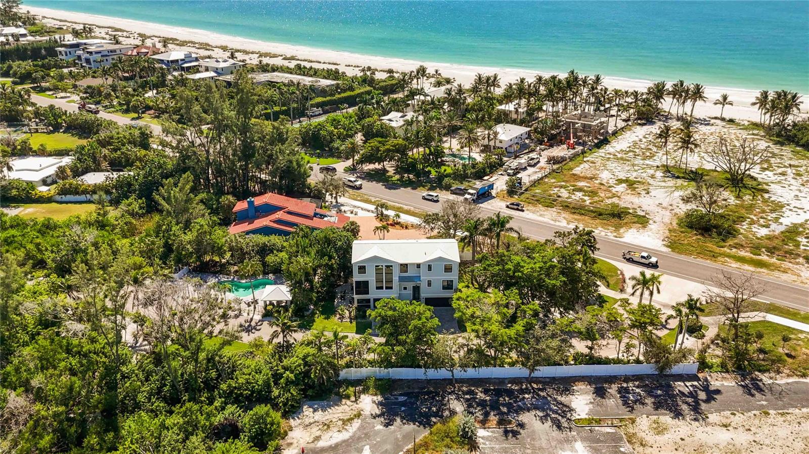 Welcome to Laguna Yacht Village on beautiful Longboat Key- a gated waterfront community located across the street from the beach, with private bay access. This fully furnished turnkey home is perfectly positioned to embrace the island lifestyle, with fantastic gulf views from almost every room. The home includes a deeded deep-water dock (Slip #6- boat lift included), located in a protected lagoon just minutes from the Intracoastal Waterway and Gulf of Mexico with no fixed bridges, making it a boater’s dream. This modern Key West inspired three story single residence with an oversized 3-car garage features four bedrooms, three full baths, and over 2,886 square feet of beautifully designed living space. Perfectly positioned to embrace the island lifestyle, this home includes a deeded deep-water dock (Slip #6) located in a protected lagoon just minutes from the Intracoastal Waterway and Gulf of Mexico — with no fixed bridges, making it a boater’s dream. Step inside and experience a harmonious blend of coastal elegance and comfort. Expansive living areas feature soaring ceilings, an abundance of natural light, and sophisticated finishes throughout. The culinary-inspired kitchen, designed in timeless style, boasts custom cabinetry, quartz countertops, and an oversized central island — the ideal space for hosting and entertaining. The primary suite, complete with a study, serves as a serene retreat with dual vanities, a hydro-massage soaking tub, and a walk-in glass-enclosed shower for the ultimate spa-like experience. Multiple balconies, including an elevated screened patio off the main level, provide refreshing sea breezes and captivating water views of the Gulf. A ground-floor patio further extends the outdoor living experience. The oversized garage provides ample storage for beach gear and boating essentials. The gated community features a resort-style pool offering a true lock-and-leave lifestyle. Residents will appreciate convenient proximity to Longboat Key’s pristine beach, award-winning island restaurants, boutique shopping, and parks — all while being a short drive from the cultural heart of downtown Sarasota and St. Armands Circle.