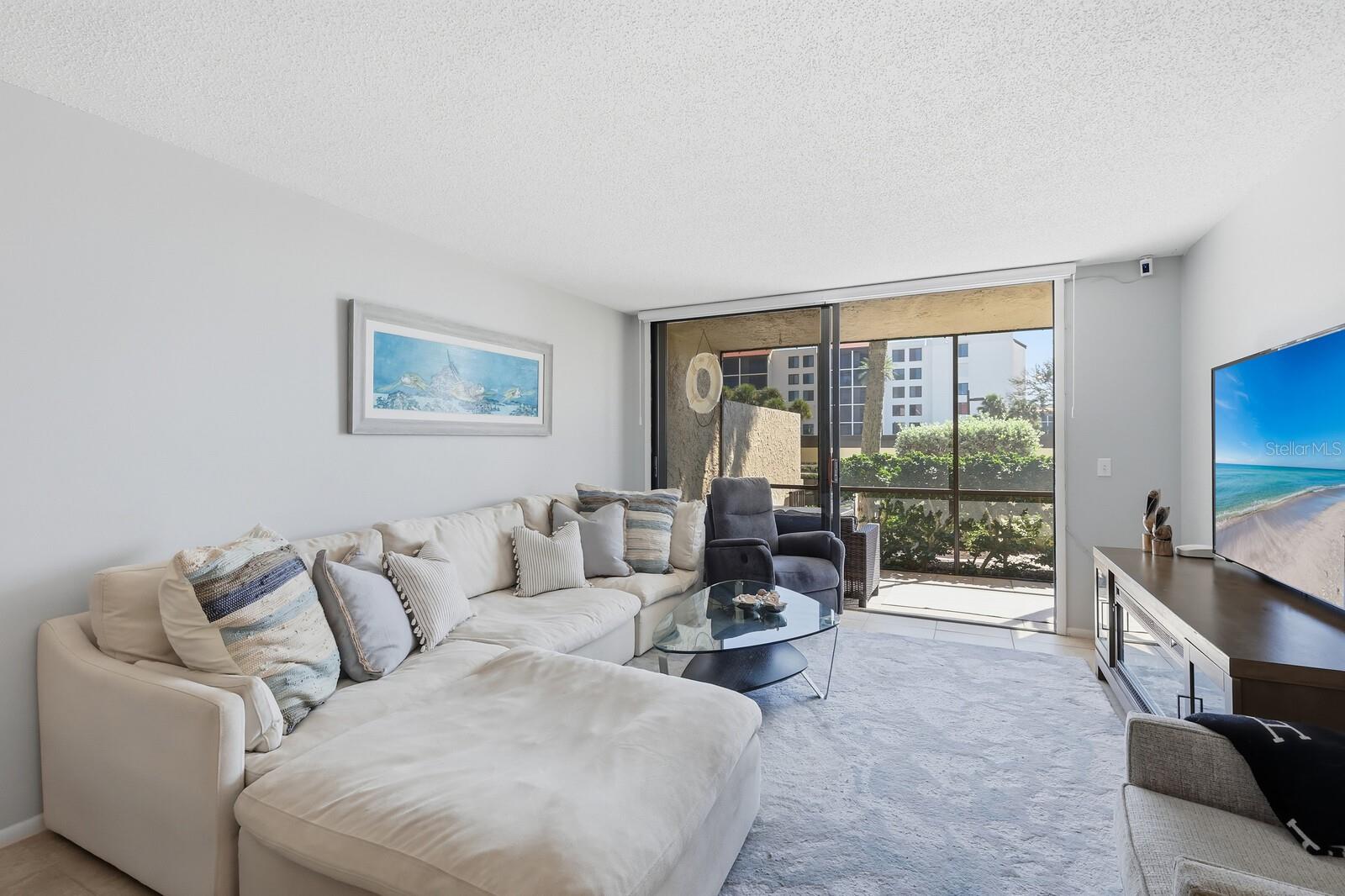 Embrace an extraordinary coastal lifestyle where fun water adventures fill your days and peaceful evening walks along the shore mark every sunset. Step outside your back door and onto the sand—the beach is quite literally your backyard! This Seaplace residence offers a rare opportunity to live just steps from the beach, right on the sparkling waters of the Gulf of Mexico. Located on the ground floor, this 2-bedroom, 2-bath condominium offers the rare convenience of private patio access, so you can come and go without passing through the main entrance of the building. Enjoy the best of Sarasota every day in a simple yet thoughtful layout designed for connection. The open-concept floor plan seamlessly links the kitchen, dining, and living areas to a screened lanai with southern exposure, filling the space with natural light and views of lush tropical landscaping. Both bedrooms are generously sized, with the primary suite featuring an en-suite bath. During recent hurricane events, the property remained completely safe and dry—providing valuable peace of mind for its owners. You’re only a few steps from Seaplace’s pristine sandy beaches and one of two heated swimming pools. Community amenities include a clubhouse with a Gulf-front patio, several grilling areas, library, fitness room, sauna, kiddie pool, playground, and three Har-Tru tennis courts. The quarterly association fee of $4,200 covers exterior maintenance, building insurance, water, sewer, cable, and access to all community amenities. Rentals are permitted with a two-month minimum, offering flexibility for seasonal ownership or investment potential. The association has announced a $500 reduction per quarter for the upcoming season so now's an even better time to move in! Ideally located just minutes from St. Armands Circle and downtown Sarasota, you’ll enjoy world-class dining, boutique shopping, theatre, ballet, opera, and art galleries... all within easy reach. This Seaplace home isn’t just beautiful. It’s a rare opportunity for those seeking comfort, security, and lasting value by the Gulf.