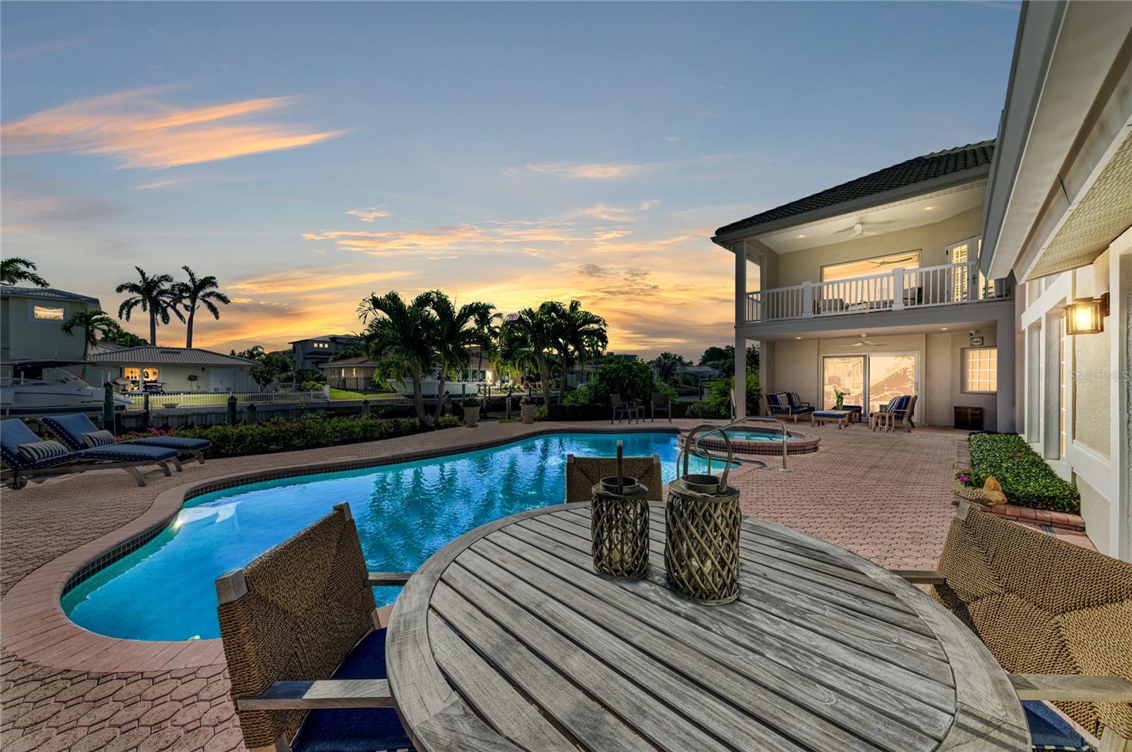 Step into modern luxury at this canal-front masterpiece on the south end of Longboat Key. Nestled in the premier Country Club Shores neighborhood, this 2024-effective-year renovation seamlessly blends classic Florida charm with cutting-edge innovation. Built with top-tier materials and state-of-the-art systems, this home offers coastal waterfront living in an unrivaled location. The southeastern exposure provides an abundance of natural light and water views. Everything has been addressed with this custom renovation, and the fully restored interior showcases thoughtful upgrades throughout, including Lutron programmable lighting, a German-designed kitchen lighting system, new plumbing and electrical, impact windows and doors, a must-see chef’s kitchen, instant hot water delivery and a whole-home water filtration system. Coral stone floors on the main level and hardwood flooring above complement the refined design, curated by the owner, a professional interior designer. This residence offers three bedrooms and three-and-a-half baths, including a full-floor principal suite featuring a sitting room, private balcony with Sarasota Bay views, and generous closet space. A sizeable living room designed for entertaining separates the en-suite guest wing from the main living areas. The kitchen includes custom cabinetry, high-end appliances and a breakfast room overlooking a private front courtyard. Additional main-floor spaces include a library or game room, powder room, laundry room, exercise room and a framed, wired area for a future elevator. Outdoors, lush tropical gardens envelop the entire property, creating a tranquil and Zen-inspired sanctuary leading to a covered lanai overlooking a resort-style pool and spa, with expansive patios ideal for entertaining. The canal-side setting includes a private dock with a boat lift and mooring capabilities for a larger vessel with no bridges to the bay and access to the Gulf in minutes. Enjoy sunrises over Sarasota Bay and amazing sunsets and water activities from your designated beach access just a short stroll away. The Country Club Shores neighborhood is known for coastal living, with low HOA fees and the location provides easy access to golfing, shopping, dining at St. Armands Circle and downtown Sarasota.