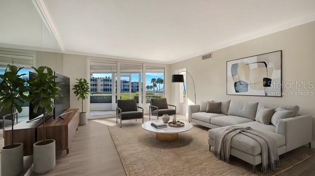 Year after year, The Westchester has been considered to be the most sought after location on Gulf of Mexico Drive. This two bedroom, two bath 1,393 sq. ft. condominium holds many family memories, which could now be yours. Experience the beautiful views of the Emerald waters from both lanais. Unit has recently been completely painted with newly installed flooring. Unit is move-in ready to be enjoyed! Both bathrooms contain generous walk-in closets, with a washer/dryer installed in the guest closet. Come witness Resort Style amenities of two heated pools, beach cabanas, car wash station, a tennis and pickleball court, shuffleboard court, kayak rack, outdoor storage and a welcoming grilling convenience behind Club 72. This split plan, first floor, master en-suite unit awaits your TLC. Kitchen includes side-by-side beverage refrigerators. Seller has replaced new impact resistant hurricane windows and sliders. A replacement hurricane rated front door will also be installed. The Westchester is conveniently located in close proximity to St. Armand's Circle, downtown Sarasota and many dining experiences. Renovated Clubhouse with Fitness equipment is currently under construction, while the pool deck area will include a hot tub. These renovations, together with landscaping have an anticipated completion of May, 2026. R & R IS THE PACE, LBK IS THE PLACE!!!!