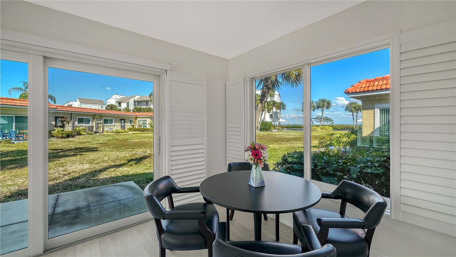 YOUR SUNRISE SANCTUARY! YOUR SUNSET ESCAPE! An End Unit Villa—Steps From Both Shores! There’s a moment just before sunrise—when soft light touches the bay and the world feels brand new. From this beautifully updated 1504 sq foot, 3-bedroom, 2-bath end-unit villa, you wake to that glow each morning. And while the bay lies just a short stroll from your door—where dolphins and manatees grace the shoreline—the sense of tranquility begins the moment you step inside your villa. Welcome to your story at Windward Bay, Loved for 33 Years, Transformed for the Next Chapter! Brand-new luxury vinyl plank flooring stretches throughout the living spaces. Custom White wooden plantation shutters open like pages of a book, revealing light-filled rooms, a bright inviting great room and a refreshed kitchen where new soft-closing cabinetry meets the timeless richness of granite countertops. Being a corner end unit means privacy, extra windows, and the kind of natural light you feel more than you see. The great room spills out to your private outdoor patio—perfect for morning coffee, late lunches, or evening breezes. And as evening arrives, simply walk across the street. The Gulf paints the sky in gold and coral, offering unforgettable sunsets that become a treasured part of your daily rhythm. This home offers peace of mind along with beauty. It’s a place where you can truly exhale. This is effortless, maintenance-free living, where parking sits mere steps from your door and bringing in groceries is a breeze. No elevators. No stairs. No inconvenience. Just the freedom of ground-level coastal life. Here, maintenance-free living means all the big things are already done: the entire exterior was upgraded in 2020 with hurricane-impact windows, hurricane-impact sliding doors, and a new roof. "Pet Friendly" Windward Bay is one of Longboat Key's most beloved waterfront communities—known for its mature landscaping, resort-style amenities, and genuine sense of warmth. People don't just move here; they stay here. In fact, the current owner of this villa has lived here for 33 years, a testament to the comfort, community, and connection the neighborhood provides. Windward Bay isn't just a place to live. It's a place to belong. Spanning 26 lush acres, the community offers three beach access points, a 1/2-mile nature trail, two heated pools, fitness center, sauna, clubhouse, tennis and pickleball courts, kayak launches, boat docks (waitlist), covered parking, and storage. Wildlife is abundant throughout the property, adding magic to everyday life. Financially strong, Windward Bay has completed its Milestone Inspection and Capital Reserve Study. Monthly fees were reduced in 2025 and increased only $13 for 2026. With Downtown Sarasota, St. Armands Circle, Bridge Street, renowned restaurants, championship golf, boutique shopping, and cultural attractions just minutes away, you're perfectly positioned between quiet island tranquility and vibrant coastal life. A Home That Feels Like a Vacation—Every Single Day! A place ready for its next chapter—your chapter. Your Windward Bay story starts here—reserve your private viewing today.