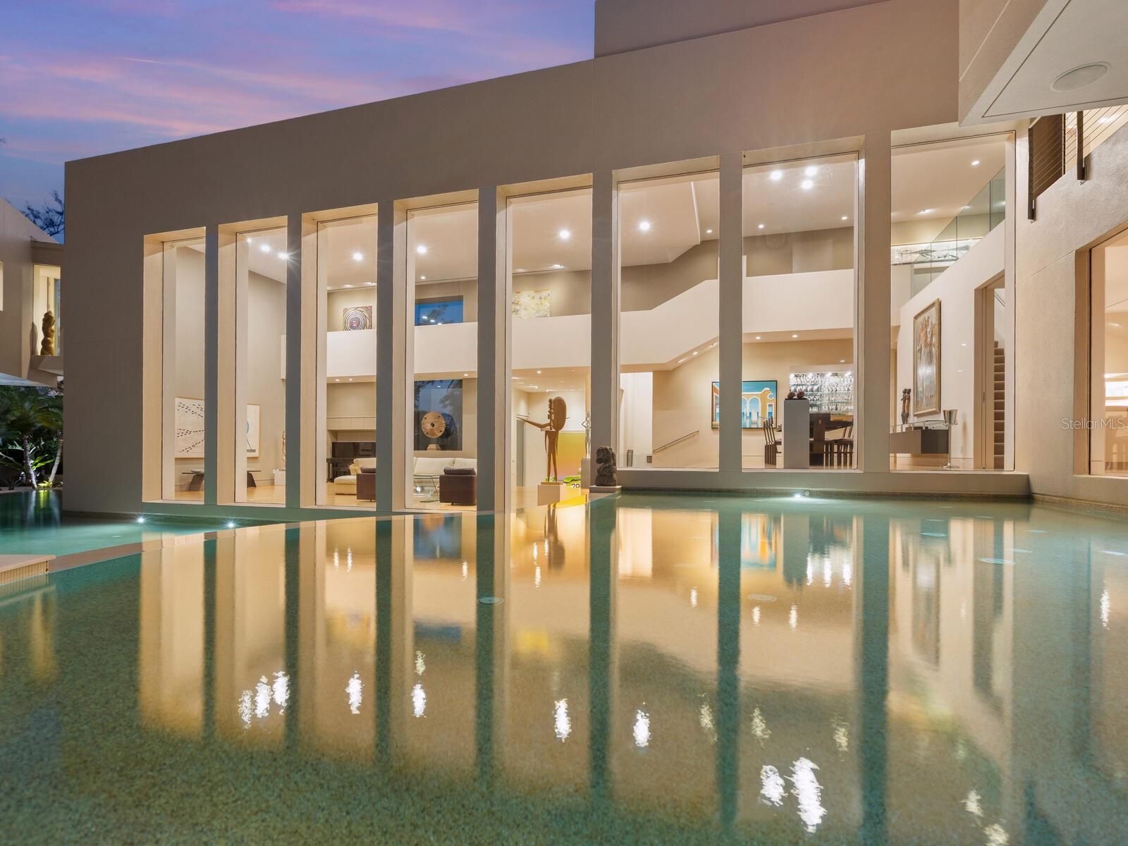 Named the House of Columns by world-renowned, award-winning architect Carl Abbott, this palatial Bayfront estate stands as a singular expression of architectural distinction and craftsmanship. Encompassing close to five acres on the north end of Longboat Key spanning Sarasota Bay, the combined offering of 6610 and 6630 Gulf of Mexico Drive represents one of the most significant residential holdings available in the area, a legacy estate where endless views of sea and sky create an unforgettable backdrop for living. The property unfolds like a private peninsula, offering exceptional width, depth and privacy. On the eastern shoreline, calm bay waters reflect the morning light with open water, protected shoreline and bridgeless access to the Gulf of Mexico. The primary residence is gracefully positioned on the bayfront, designed to capture eastern exposure and long, tranquil water views across Sarasota Bay. Clean architectural lines, soaring interior volumes, and walls of glass create a continuous dialogue between interior and exterior. Ceilings soar up to 21 feet, allowing light to move freely throughout the home while maintaining warmth and livability. The elevator provides access across levels, while Lutron lighting and automated shades on every window and door allow the home to respond intuitively to the changing light of day. The residence has been impeccably maintained by its original owner, reflecting a level of care and stewardship rarely found. Infrastructure has been thoughtfully addressed, including a whole-home generator that ensures continuity and peace of mind. The owner’s garage sits under a cantilever with access to the interior elevator and an additional air-conditioned four-car garage with large workspace offers a total space for 6 cars and exceptional flexibility for collectors, hobbies or future customization. A lagoon-style pool sits within the landscape, offering a resort-like atmosphere while preserving privacy and water views. A private dock with two boat lifts provides immediate access to Sarasota Bay and the Intracoastal Waterway, creating a seamless boating lifestyle that complements the estate’s waterfrontage. The inclusion of 6630 Gulf of Mexico Drive allows owners to construct a guest house or secondary structure, offering flexibility for multigenerational living, guests, or staff accommodations, offering extraordinary future optionality and ensures the next owner retains control over one of Longboat Key’s irreplaceable resources, land. What ultimately distinguishes this offering is its irreplaceability. Estates of this size, with this combination of architectural pedigree, boating infrastructure, development flexibility and maintained condition are no longer being created. Despite its scale and seclusion, you are moments from the refined lifestyle Longboat Key is known for, private clubs, championship golf, fine dining, IMG Academy and the cultural offerings of Anna Maria Island, St. Armands Circle and downtown Sarasota just beyond the bridge. This is not merely a waterfront home, it is a generational legacy, unmatched in design, scale, privacy and location.