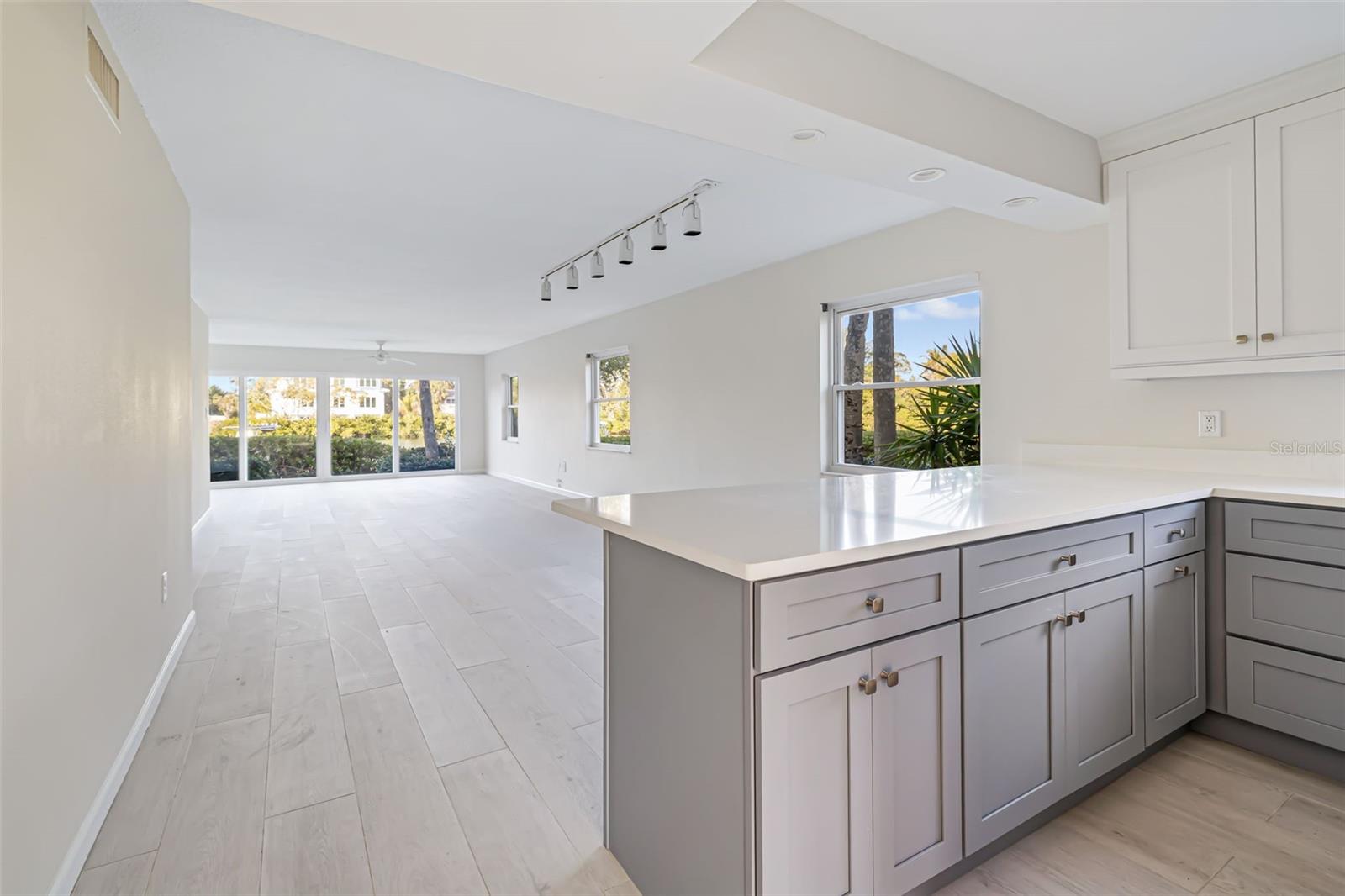 Nestled in the sought-after Whitney Beach community on Longboat Key’s peaceful north end, this beautifully renovated 2-bedroom, 2-bath, end unit residence offers 1,449 square feet of coastal contemporary living with tranquil water views over protected Bishop’s Bayou. Enjoy the serenity of a coastal inlet sheltered from the constant boat traffic of the Intracoastal Waterway, where dolphins and manatees glide past your rear Florida room—truly a front-row seat to nature. The versatile floor plan includes spacious bedrooms with en suite baths (showers only), a bright 9x14 flex space with abundant windows where the washer and dryer connection is located, plus an additional 8x3 storage area. The kitchen features quartz countertops, stainless steel GE appliances, and a water view that enhances everyday living. Tasteful coastal selections, a light palette, and additional end unit windows create an airy, open feel throughout, complemented by storm-resistant windows for added peace of mind. Whitney Beach offers resort-style amenities including two pools, tennis court, BBQ stations, kayak storage and launch, lush walking paths, and deeded private beach access directly across the street to the turquoise Gulf waters. Boat slips are available when offered, with annual dock fees of $600 for slips up to 33’ and $480 for slips up to 24’. Sublets are available. Two pets are welcome with no weight restrictions. Rentals are permitted with a one-month minimum An exceptional opportunity to enjoy bay-to-beach living in one of Longboat Key’s most charming waterfront communities.