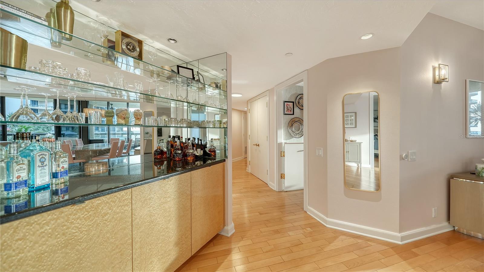 Framed by sweeping Gulf sunset views and the manicured grounds of the Water Club, this expansive third-floor residence in the South Building offers more than 3,000 square feet of refined coastal living. Designed with both privacy and comfort in mind, the residence pairs a thoughtfully updated interior with immediate access to one of Longboat Key’s most sought-after resort-style communities. The true three-bedroom layout was enhanced in 2022 with the enclosure of the den and addition of a closet, creating a more functional and private floor plan. Hardwood flooring flows throughout the main living areas, while all three bathrooms were recently updated in 2024, adding a fresh, modern feel. The open living and dining areas are designed to capture Gulf and sunset views, complemented by built-ins and a wet bar that enhance both everyday living and entertaining. Floor-to-ceiling glass doors open from the great room, kitchen, and primary suite to two Gulf-facing terraces, creating a seamless connection to the outdoors. The eat-in kitchen is both functional and inviting, featuring custom cabinetry, Miele stainless steel appliances, a center island, and a dining nook surrounded by glass to maximize water views. The primary suite offers a private retreat with its own sitting area, an oversized walk-in closet, and dual en-suite bathrooms designed for comfort and convenience. Two guest bedrooms are thoughtfully arranged in a split plan, including one en-suite, ensuring privacy for family and visitors. Additional features include covered parking, a private storage unit, and a beverage locker (assigned). The Water Club is known for its full service, resort-style living, offering a Junior Olympic-size pool, children’s pool, three spas, four Har-Tru tennis courts, and a Mediterranean-inspired clubhouse with fitness center, steam and sauna, library, social spaces, and everyday on-site concierge services. A 24-hour staffed gate provides both privacy and security, while direct access to the Gulf’s sandy beaches completes the experience. Located on the south end of Longboat Key, this residence is just minutes from the Longboat Key Club, St. Armands Circle, and downtown Sarasota’s cultural venues, including The Ringling Museum, Van Wezel Performing Arts Hall, Selby Gardens, and waterfront parks—offering a lifestyle that blends coastal beauty with everyday convenience.