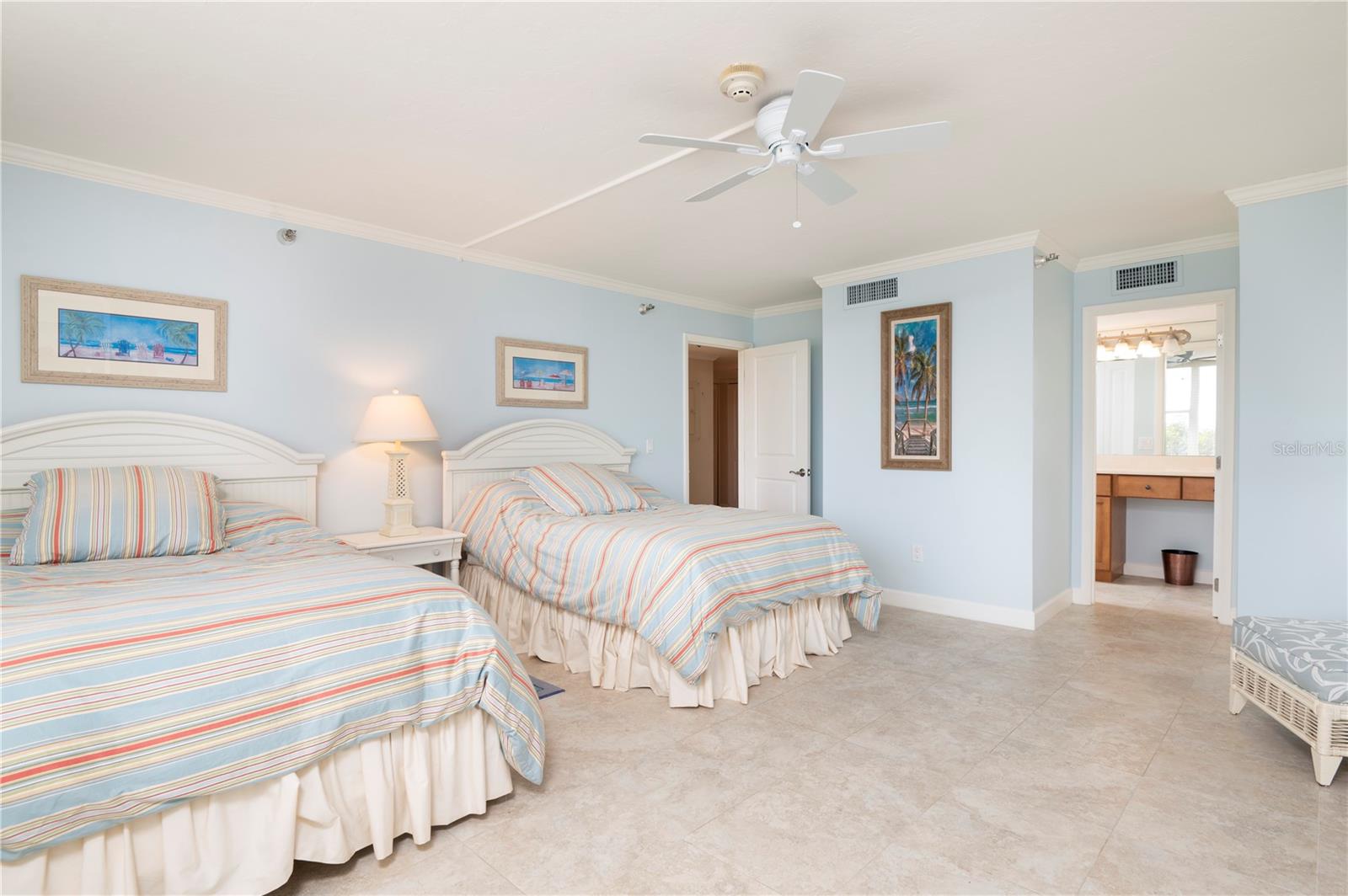 Under contract-accepting backup offers. This exclusive corner unit at Veinte presents a rare opportunity to immerse yourself in the beauty of Gulf-front living. Nestled on the third floor, this spacious 3-bedroom, 3-bathroom TURN-KEY condo boasts unparalleled panoramic views of the Gulf of Mexico's pristine coastline. Step outside and feel the soft sand beneath your feet, as direct beach access awaits just steps away. Spanning 2,100+ sqft this meticulously renovated residence exudes luxury and comfort at every turn. Sunlight floods the living space, highlighting the high-end tile flooring and elegant crown molding throughout. The chef's kitchen is a culinary masterpiece, featuring Cambria quartz countertops, top-of-the-line stainless steel appliances including an induction cooktop and wall ovens, and a stylish wet bar-all framed by stunning views of the Gulf. Retreat to the inviting primary suite, complete with an office nook/sitting area, spacious walk-in closet, and a lavish bathroom adorned with Cambria quartz. Step onto the private screnned lanai to savor morning coffee against the backdrop of gentle Gulf breezes. Guests will enjoy a large room with private bath. This unit has never been rented and was sparingly used by owners and features a 2023 water heater and 2019 AC unit for added comfort. Reserved covered parking spot with an electrical outlet for electric vehicles and a storage area provide convenience and peace of mind. For those seeking a peaceful retreat, Veinte-a mid-rise, 20-unit building-offers an exclusive living experience with private amenities including a heated swimming pool, tennis court, and deeded beach access. NEW ROOF and NO CURRENT ASSESSMENTS. Conveniently located opposite Publix and the Longboat public tennis courts, Veinte provides easy access to all the necessities. With St. Armands Circle nearby, fine dining, shopping and entertainment options abound, ensuring every day ends with a spectacular Florida sunset