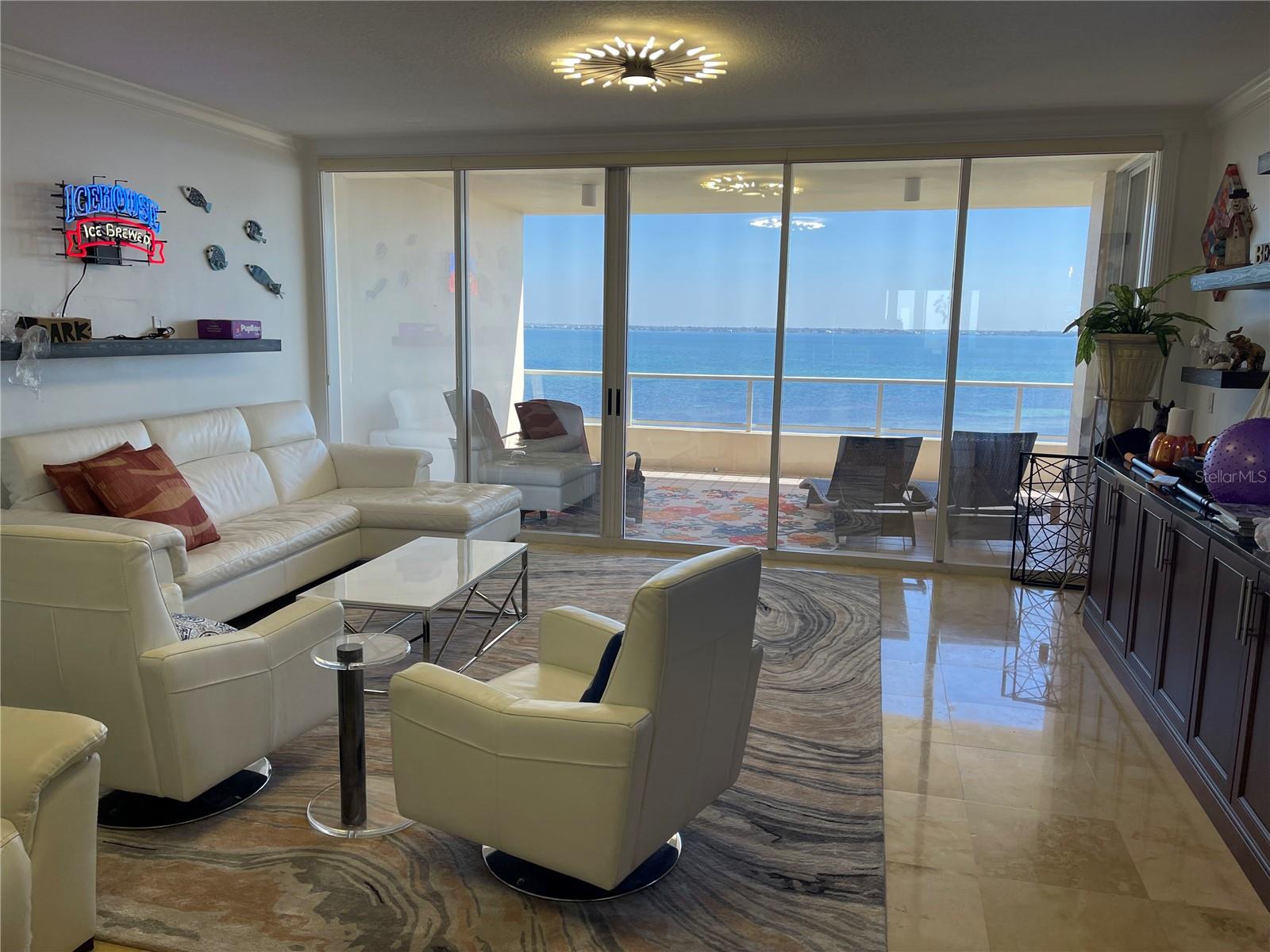As you step off your private seventh floor elevator and into the foyer, you are welcomed into your Grand Bay home by a chic double door entry into the living room. Immediately you are swept away by the dramatic unobstructed views of the city and expansive Sarasota Bay. The expansive floor to ceiling"Walls of Windows" with terraces on both the east and west sides of the building. Perfect sunrises and sunsets are the order the day ! The open floor plan from living room, to dining room, to den (can be easily converted into a 3rd bedroom) and the convenience of the kitchen all flow smoothly for entertaining and easy living. The den, kitchen, and guest bedroom all face west with access to the terrace and spectacular sunsets. The kitchen offers all of the latest modern conveniences with an oversized SubZero refrigerator/freezer, mini Perlick bottle refrigerator, Bosch dishwasher, Wolf oven, microwave and induction cooktop. The master bedroom boasts panoramic views of the city and connects to the east terrace with plenty of space for sunbathing and nature watching. The marble master bath invites you to soak in the garden tub to relax the day away. The en-suite guest bedroom is currently being used as an office and offers its own grand views of the Longboat Key’s Harbourside golf course and the Gulf of Mexico beyond. Grand Bay is situated behind the Longboat Key Club gates and offers additional gated security at the building entrance for your peace of mind. Amenities for your enjoyment include two Har-Tru tennis courts, a state-of-the-art fitness center on the second floor of the clubhouse, two large heated pools and private beach access to the Bay Isles Beach Club directly on the Gulf of Mexico. This is resort style living, at its finest with the convenience of being located on Longboat key. Just minutes from St. Armand's world renowned shopping, restaurants and the cultural capital of Florida that is downtown Sarasota. Memories that will last a lifetime....All offers submitted via FAR-BAR contract form. Please use showing time button for all showings