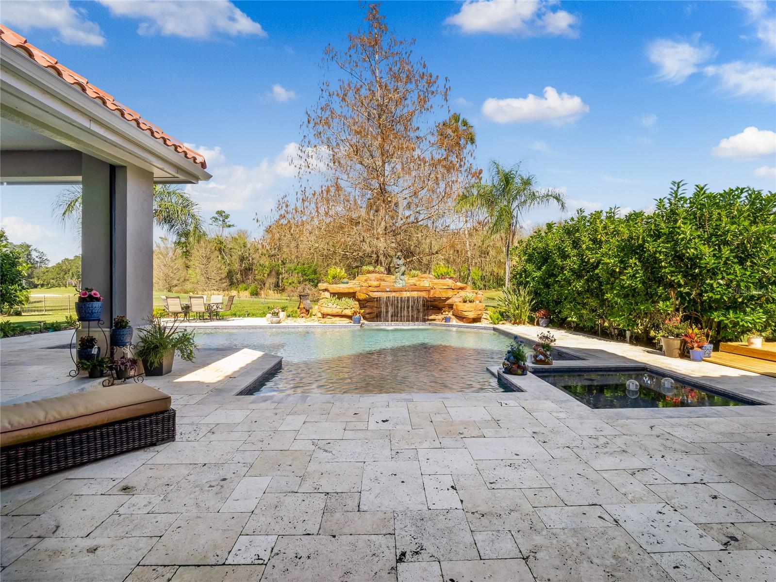 Welcome to this Stunning ALAQUA DREAM residence where luxury meets functionality! Located in the illustrious golf community of Alaqua. Boasting over 1 acre of privacy in the guard gated ALAQUA community, one of the most reputed country club neighborhoods, is everything you’re looking for. This stunning 5-bedroom, 5.5 bath estate is certain to impress with exquisite details throughout including a small garden pond with a waterfall and live fish near the main entrance that adds a touch of tranquility. This meticulously maintained home boasts numerous upgrades and features designed to enhance your living experience. Step through the luxe Iron Arched Double Entry Doors into the grand foyer adorned with exquisite grand glass windows, setting the tone for the elegance within. With soaring 23-foot ceilings and a magnificent 22 Light Iron Vintage Chandelier, the expansive entryway welcomes you with a sense of grandeur and beautiful views to the pool and golf course! The open floor plan seamlessly connects the living spaces, ideal for entertaining or enjoying family gatherings. Large Arched Bay Windows flood the interior with natural light, while crown molding with indirect lighting and tray ceilings add a touch of sophistication. Indulge in the culinary delights of the custom-built gourmet kitchen, complete with Kitchen Aid appliances, a Quartz Island with a wine fridge, and a charming barn sink. The adjacent dinette features a dazzling $15K Crystal Chandelier, perfect for intimate dining experiences. Relax in the comfort of the family room with built-in shelves and one of the two wood-burning fireplaces, or retreat to the master suite featuring French doors, motorized shades, and a dual master bathroom for the ultimate privacy experience. Pamper yourself in the Master Bathroom by relaxing in the standalone bathtub or enjoying the Water Temperature Color-Changing LED rain Shower Head, a true oasis of relaxation. Venture outdoors to discover your own private paradise, featuring an illustrious stone-finished custom waterfall pool and a beautifully manicured backyard covered with top-of-the-line ivory color travertine throughout. Stay connected with the Smart Aqua Link System controlling the pool/spa water heater through your phone app, while enjoying the surround sound system throughout the home. This residence is not only luxurious but also practical, with recent upgrades including a NEW TILE ROOF 2023, A NEW AC unit, NEW SMART POOL HEATING SYSTEM, NEW ANTI COVID ANTI BACTERIAL UV LIGHT SYSTEM FOR ALL 3 AC’S, NEW Electrical system, NEW REPLACED Wood Deck, and NEWLY UPGRADED POOL FULL BATHROOM. With top- rated schools nearby, this home offers the perfect blend of comfort, convenience, and sophistication. Don't miss the opportunity to make this exquisite property that boasts over an acreage of privacy your own! Schedule your private showing today.
